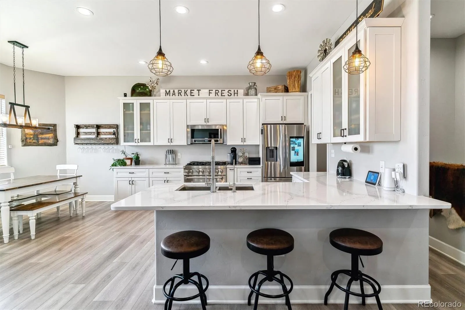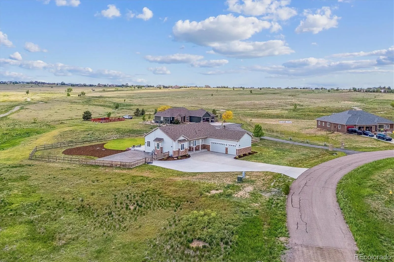 Ready for some country living? This is the one you have been waiting for! This beautiful 3766 sqft ranch style home situated on a 1.25 flat acre lot was built in 2022 and boasts spectacular finishes and upgrades throughout. The 4 car finished heated garage with 220 electrical is perfect for the car enthesis or workshop seeker. Not enough space? The huge lot is perfect for building your dream detached barn/garage. The main floor of this stunning ranch features high ceilings and an open great room with a stoned fireplace as the centerpiece, an open modern eat-in kitchen with a 36 inch gas stove, ample cabinet and counterspace to enhance all your entertaining. Off the kitchen is the extended large primary bedroom highlighted with a gorgeous bathroom and a generous 9.6×8.6 walk-in closet. There are 2 additional bedrooms, a full bathroom and a fantastic laundry/mudroom with a private half bath. All bathrooms are finished with beautiful tile flooring, full custom tiles showers and full slab quartz countertops. The fully finished basement also has high ceilings, a huge 41.1 x 18.5 family room, a full bathroom, a large 18.1 x 23.1 guest bedroom or could be an additional primary bedroom. The basement also has a bonus room that would be perfect for a home office, hobby room or a workout room, plus 2 additional finished storage rooms. The exterior has been recently landscaped with an extended drive-way, extended back porch off the kitchen, sprinklers in the front and back, a wonderful fenced-in garden area, fenced in backyard with new drought resistance sod. (It’s time to let the kids roam free) New roof 2024. Exterior siding is James Hardie cement siding! Walking distance from the house is the new town of Bennett recreational pond that is stocked with trout, sunfish and catfish, trails and a nearby park and playground. Easy access to I-70 and main street Bennett.