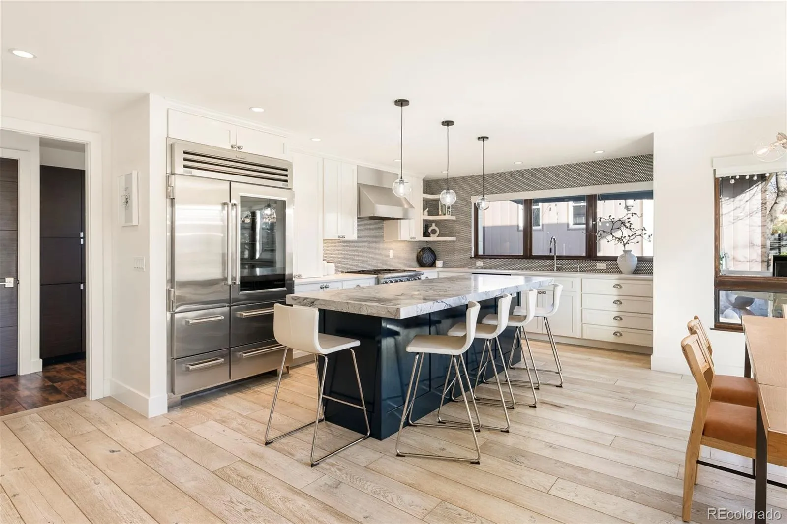 Welcome to one of Platt Park’s most distinctive residences, an artfully designed home that blends modern architecture, curated luxury finishes, and an outdoor sanctuary rarely found in the city. Perfectly positioned just two blocks from Pearl Street and the beloved Sunday Farmers Market, this is a lifestyle opportunity where Denver’s best dining, cafés, and boutiques are truly at your doorstep—including the iconic Sushi Den. Originally artist-designed and built in 2011, this extraordinary home was thoughtfully remodeled in 2020, elevating it with refined materials and bespoke details throughout. Step inside to a dramatic 20-foot great room ceiling that floods the space with light and volume, complemented by mahogany interior doors, custom railings, radiant floor heating, and whole-house water filtration. The fully reimagined chef’s kitchen is both stunning and functional, featuring custom cabinetry, a Calcutta honed marble island, and an impressive suite of professional appliances including a 48-inch Sub-Zero Pro refrigerator, Viking Pro range, Vent-A-Hood hood, Kohler Prolific sink, Dornbracht faucet, Ann Sacks tile, and custom lighting fixtures. A stylish bar area with Perlick beverage refrigerator makes entertaining effortless off the dining room to outdoor sanctuary. Wide-plank French Oak wood flooring flows throughout the entire home. Energy-efficiency is a central theme with brand new Bosch European mini-split AC units for maximum cooling with in-floor radiant heat to provide year-round comfort. Outdoors, the property unfolds into a private Zen-inspired retreat—a true rarity in the city with southwest exposure. Enjoy sculptural water features, board-formed concrete garden walls, manicured landscaping, a fire pit gathering area, and a magical outdoor dining area with patio designed for unforgettable evenings under the Colorado sky. The setting spans an extraordinary half-city-block footprint, creating both privacy and presence. A MUST SEE residence!
