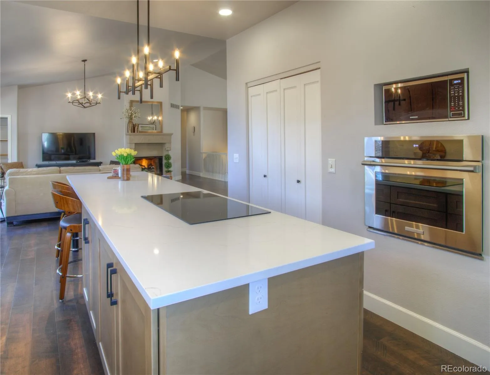 Designed for easy main-level living, the family room opens directly to the deck and a large backyard shaded by mature trees—ideal for indoor-outdoor Colorado living. A dedicated main-level office provides the perfect work-from-home space, and the oversized 3-car garage offers plenty of storage.