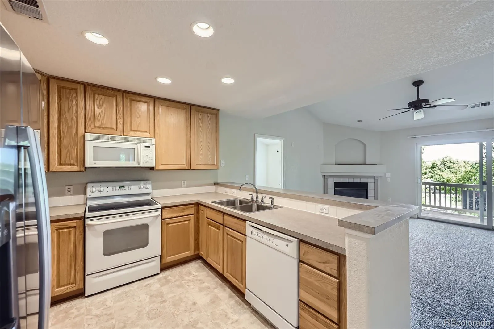 Bright and airy end-unit condo located on the 2nd floor, offering 2 bedrooms and 2 full bathrooms in a highly desirable community. This well-maintained home features an open floor plan with a spacious kitchen, breakfast bar, dining area, and a cozy living room with a gas fireplace. Enjoy easy access to a private covered balcony—perfect for relaxing or entertaining.