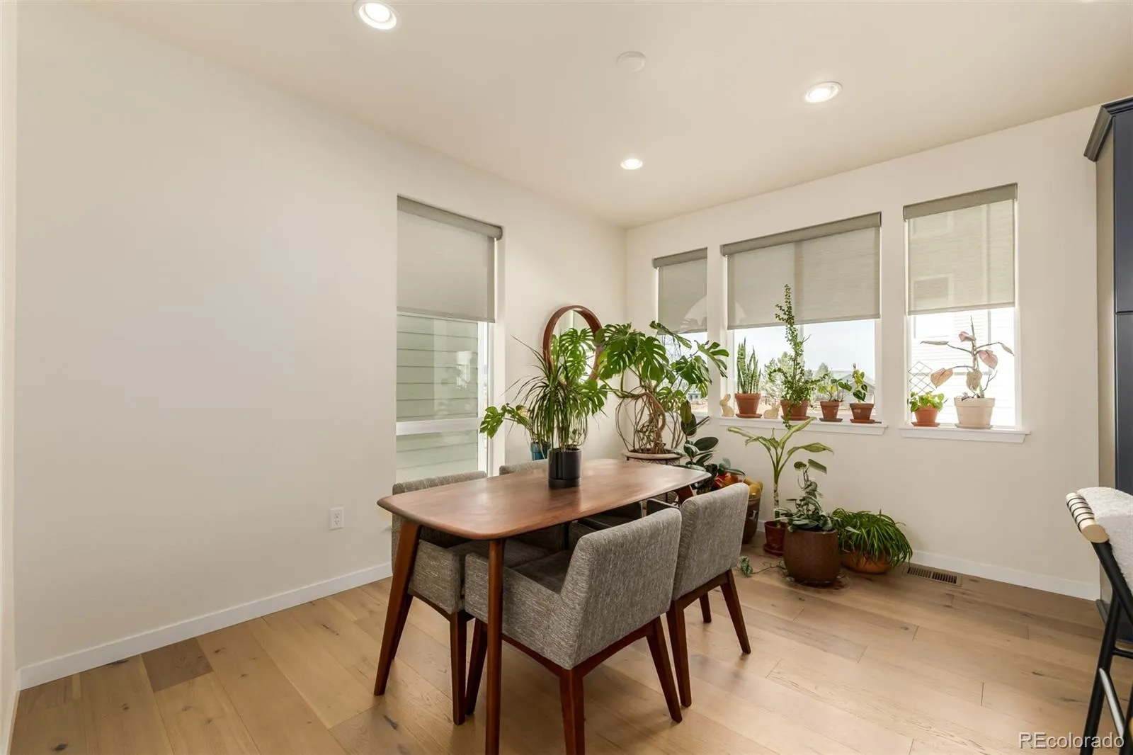 Experience elevated living in this stunning three-story home nestled in the highly sought-after Haskins Station! This exceptional Richmond American residence boasts the coveted Zoho floor plan, striking curb appeal, and breathtaking panoramic views of both the mountains and city skyline. The entry level welcomes you with generous storage and convenient garage access. Upstairs, a spacious open-concept is bathed in natural light, featuring tall ceilings, wood flooring, and sleek recessed lighting. The living room seamlessly connects to a gourmet kitchen, designed with elegant blue shaker cabinetry, a custom tile backsplash, quartz countertops, premium stainless steel appliances, a gas cooktop, and an island with stylish pendant lighting above the breakfast bar. Ascend to the third floor, where you’ll find two bedrooms. The luxurious owner’s suite is complete with an ensuite bathroom, featuring a dual-sink vanity, an oversized step-in shower with double shower heads, and a built-in bench. The second bedroom enjoys its own private bathroom, offering comfort and privacy. The rooftop patio offers stunning sunsets over the mountains and city lights. Don’t miss the opportunity to own this exceptional home!
