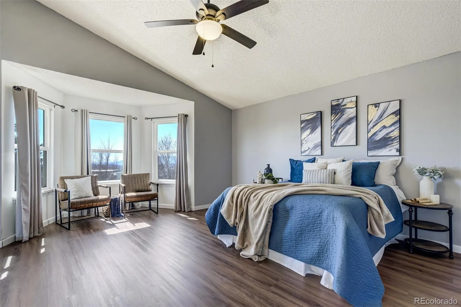 Welcome to this beautiful Briargate home with mountain views and no HOA, located in the highly sought-after District 20 school area in North Colorado Springs. Step inside to soaring ceilings and oversized windows that flood the living room with natural light, creating a bright and welcoming first impression. The formal dining room features warm hardwood floors and modern pendant lighting—perfect for hosting holidays and dinner parties. The updated kitchen is designed for everyday living and entertaining, featuring custom cabinetry, stainless steel appliances, Corian countertops, and stunning mountain views right from the kitchen sink. The kitchen flows into a cozy family room with a wood-burning fireplace and access to a large deck overlooking the private backyard with mature trees and a dog run. Upstairs you’ll find two spacious bedrooms connected by a Jack-and-Jill bathroom plus a large primary retreat with vaulted ceilings, luxury vinyl plank floors, walk-in closet, and bay window sitting area. A stylish barn door leads to the spa-like 5-piece bathroom with soaking tub, walk-in shower, and makeup vanity. The finished basement provides additional living space with a fourth bedroom, full bath, and storage. Additional highlights include central air conditioning, humidifier, new ceiling fans, security system, and a 2-car garage. Enjoy the convenience of living close to Briargate shopping, restaurants, parks, trails, and top-rated District 20 schools, with quick access to everything North Colorado Springs offers.