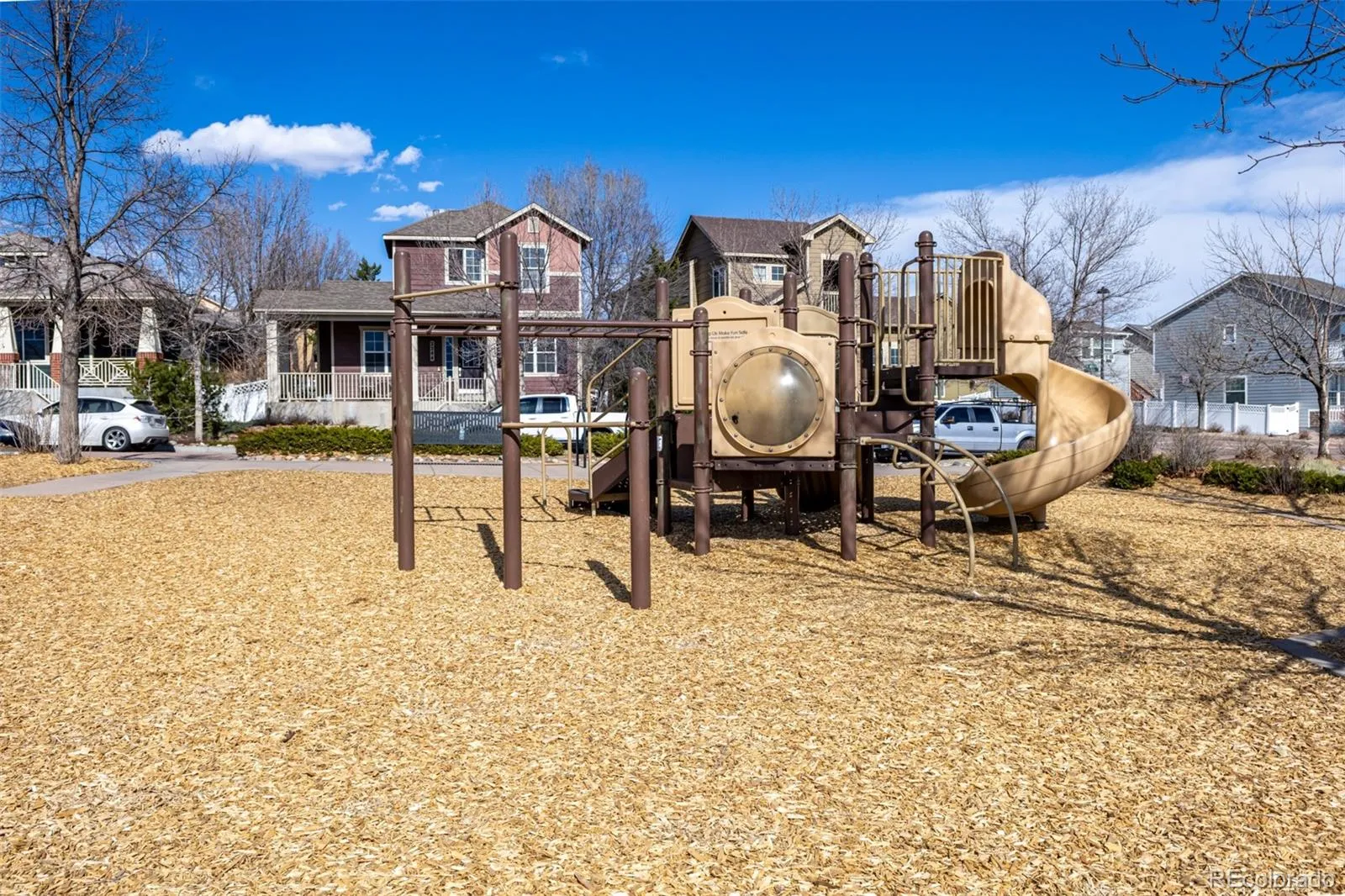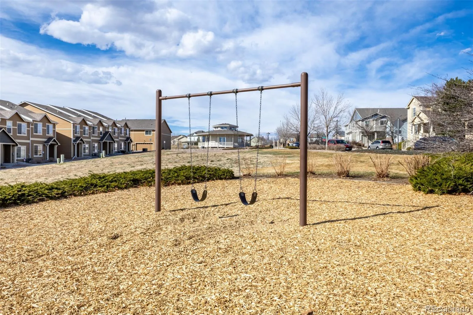 Step outside to enjoy a private patio with brick pavers, offering additional outdoor living space ideal for relaxing. The property also includes a detached one-car garage with alley access and central air conditioning. The community offers beautiful neighborhood parks, playgrounds, and a community clubhouse, providing spaces to gather, relax, and enjoy the outdoors, including Pikes Peak views right outside your front door. The HOA covers trash removal, and snow removal helping simplify day-to-day living.
