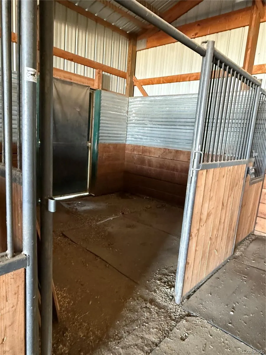 EQUESTRIAN DREAM – MOUNTAIN VIEWS – PRIVATE – UPGRADES**equestrian property in the desirable Mustang Meadows neighborhood, set on nearly 9 acres of beautiful Colorado countryside.This property features a large barn with rubber mats throughout, a tack room, and four stalls with individual runs. Large sliding doors allow for convenient drive-through access, and there is plenty of hay storage.