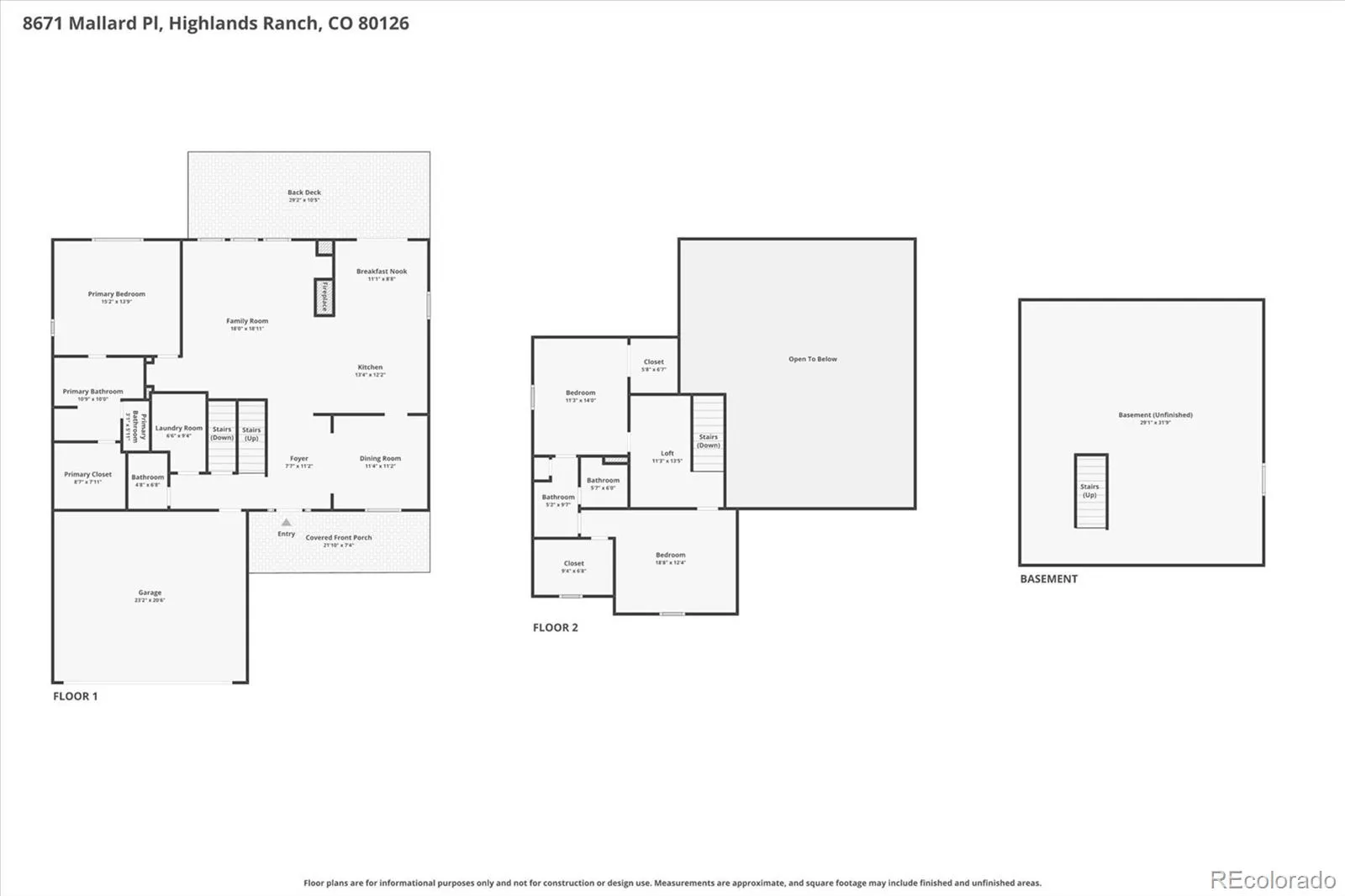 Welcome home to 8671 Mallard Place, a 2-story updated contemporary residence with functional living and entertaining spaces to complement its modern updates and classic design. Stunning hardwood floors, grand 18’ ceilings, abundant natural light, and a neutral palette greet you upon entry. The heart of this home is the spacious great room, drenched in natural light and featuring a tri-sided gas fireplace. The well-appointed kitchen features granite counters, ample cabinetry, a stainless steel appliance suite, and an inviting breakfast nook. Enjoy hosting dinner parties or intimate family dinners in the connecting dining room, complete with crown molding. Step outside to the sizeable covered composite deck with ample room for dining and entertaining spaces, all overlooking professional, mature landscaping. Retreat to the main floor primary suite. This serene retreat includes a walk-in closet with a custom closet system and a 5-piece ensuite bath with radiant heated floors. Upstairs, two generously sized secondary bedrooms share a Jack-and-Jill bath and a bonus loft – ideal for a home office. Additional features of this turnkey residence include a new water heater (2025), a Quiet Cool system, Racchio sprinkler system, an attached 2-car garage, and a plumbed unfinished basement ready for future expansion. Offering the best of Westridge, including a community clubhouse, fitness center, pool, and tennis courts, while also being ideally situated within minutes of Douglas County schools, shopping, dining, and major roadways, this home is true contemporary living in an ideal location.