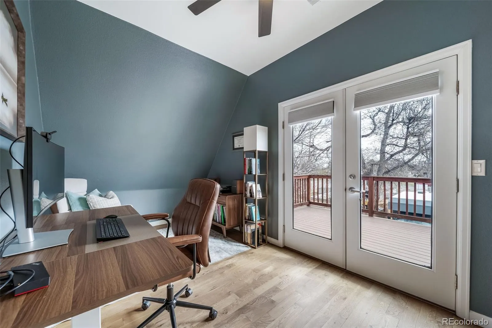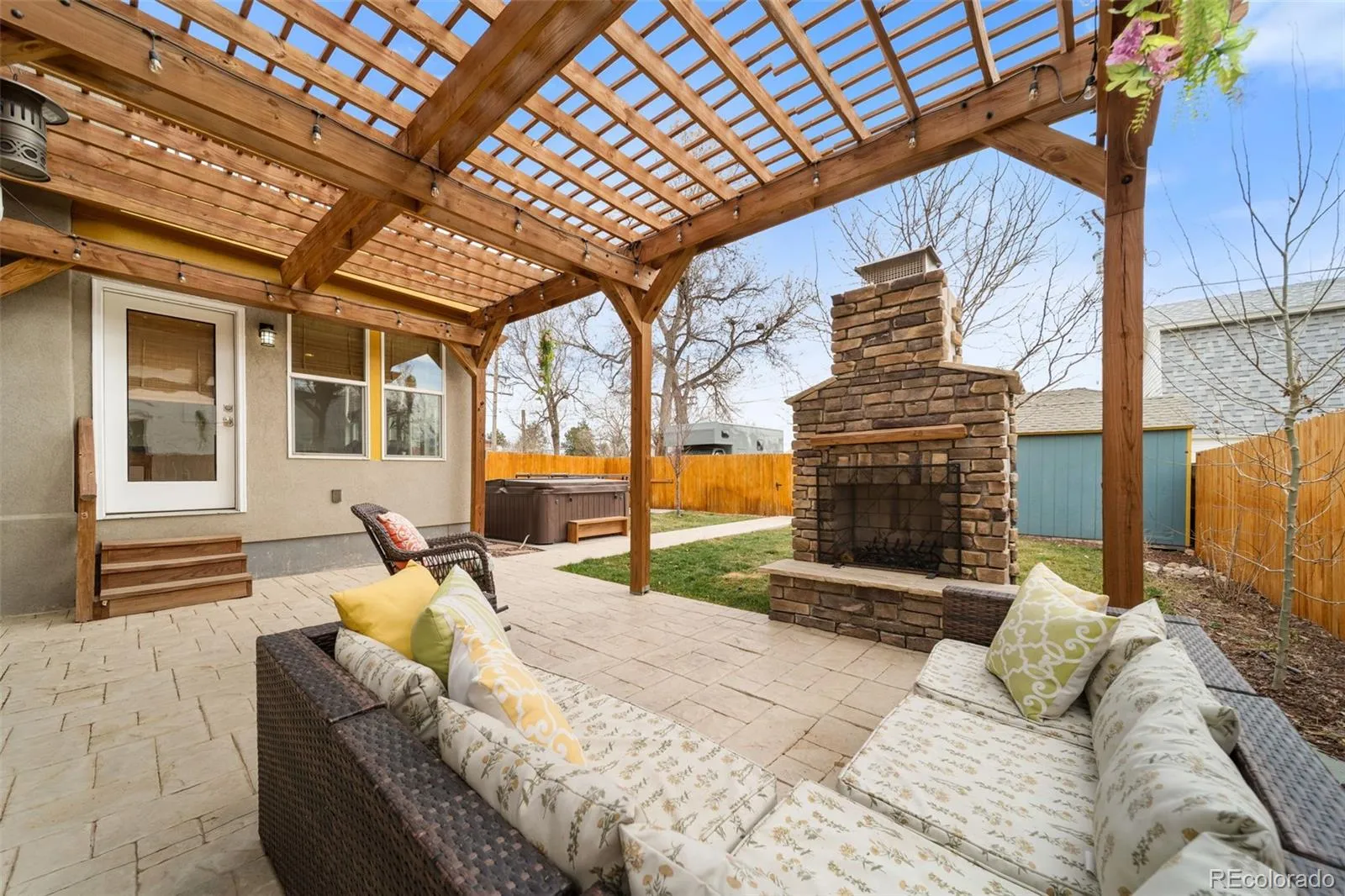Outdoor living is just as impressive, with a cozy back patio featuring a wood-burning fireplace and hot tub, perfect for year-round Colorado living. The property also offers rare parking and storage flexibility, including a two-car garage, additional off-street parking, and space within the fenced yard for RV parking.