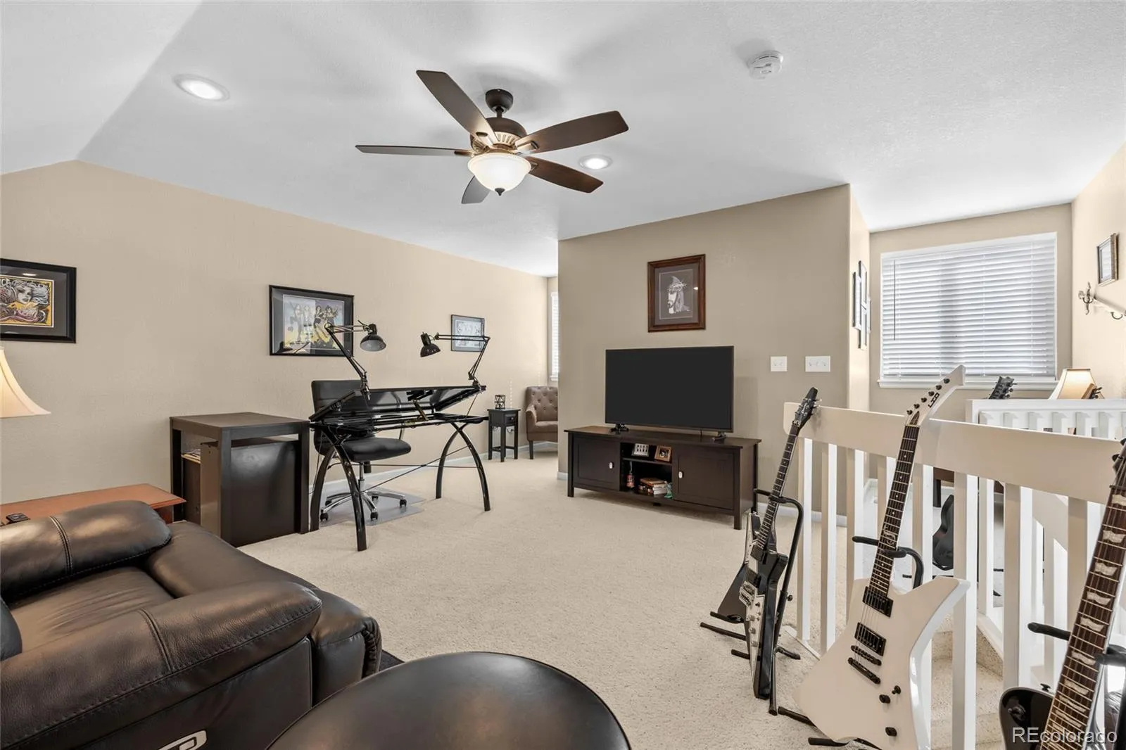 This updated and meticulously maintained former model ranch-style home is nestled in a quiet neighborhood and offers the ease of main-floor living with thoughtfully designed spaces throughout. Just off the entry, a large office or second bedroom with elegant French doors provides flexibility for work or guests. The main living area features gleaming oak hardwood floors, abundant natural light, and an open layout perfect for everyday living and entertaining. A bonus loft adds additional versatile space. The gourmet kitchen is a standout, showcasing high-end cabinetry, stainless steel appliances, granite countertops, and an expanded island with four barstools. Cooking enthusiasts will appreciate the 5-burner gas stove with stylish range hood, wine refrigerator, and double ovens with convection microwave, making this kitchen both stylish and highly functional. The spacious primary suite features high ceilings, walk-in closet, and a luxurious 5-piece bathroom with skylight, creating a relaxing retreat. The finished basement expands the living space with a comfortable family room, a sizeable bedroom, and a ¾ bathroom. A laundry room with utility sink includes the washer and dryer, and a partially finished area offers the perfect space for a home gym. Additional storage is available in the crawl space. Step outside to enjoy the new composite deck complete with a fire pit table and chairs, perfect for outdoor gatherings and warm Colorado evenings. The low-maintenance garden features abundant rose bushes and an extended brick paver pathway, while the corner lot backing to a greenbelt enhances privacy and outdoor enjoyment. Completing the home is a 2-car attached garage with overhead storage and a workbench, offering both convenience and functionality. This exceptional home combines thoughtful updates, quality finishes, and a desirable setting—ready to enjoy. Easy access to I-25, Plum Creek Golf Course and the Douglas County Fairgrounds.