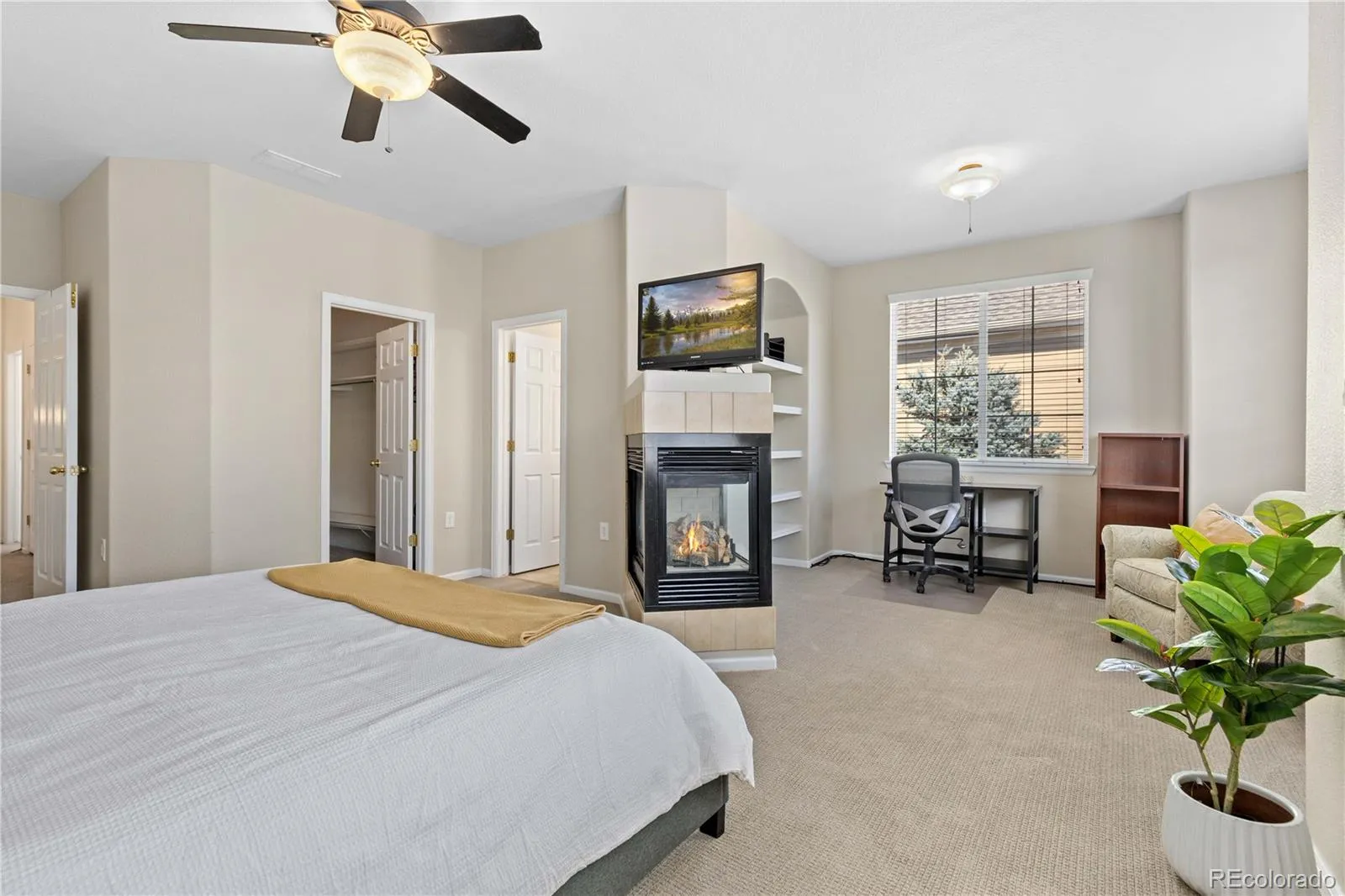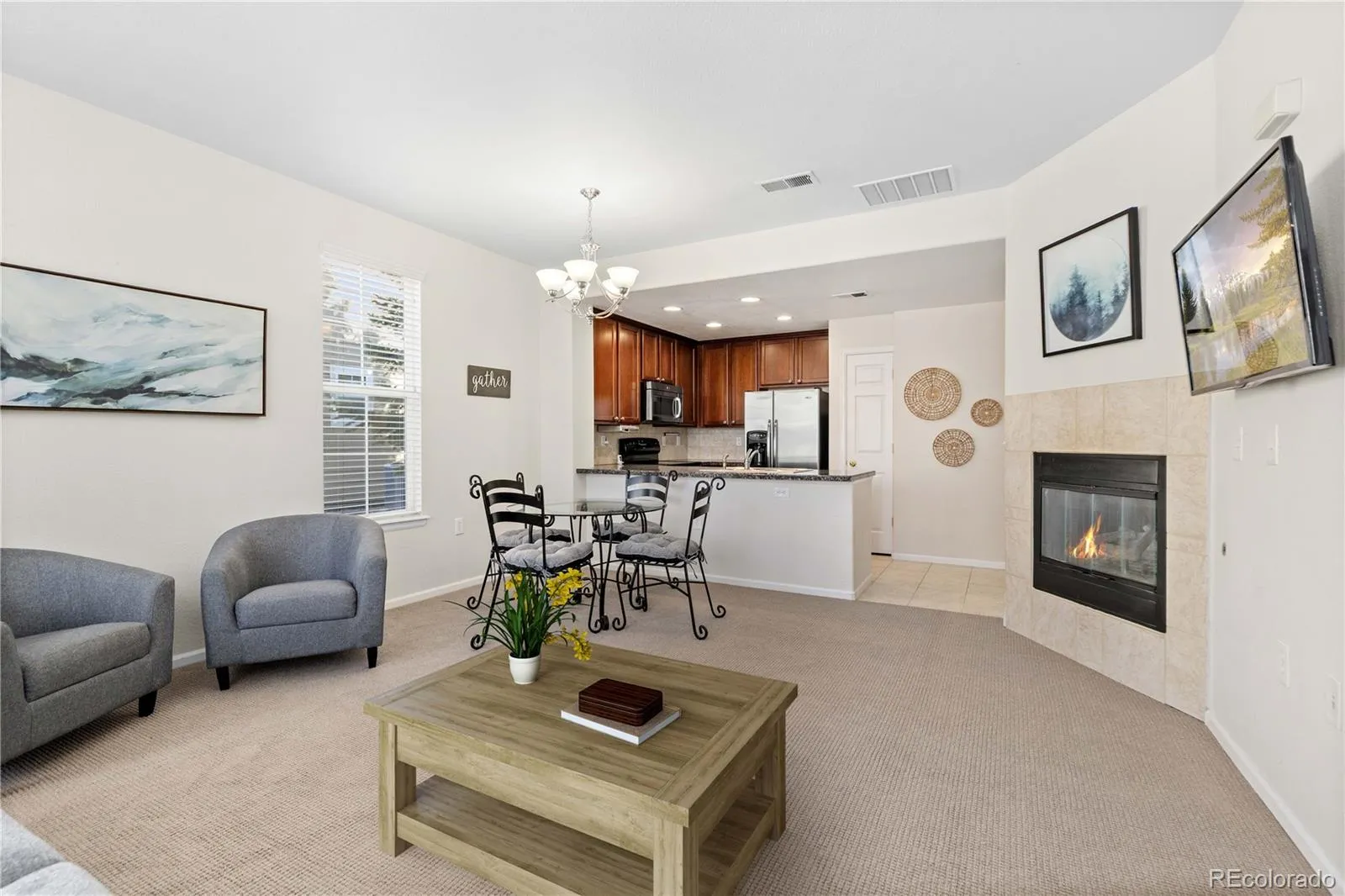 Welcome to this contemporary, end-unit townhome, situated in a popular neighborhood, within walking distance of shopping, dining, and scenic trails. This residence features a two-car garage, ensuite bedrooms, a home office area, and premium upgrades throughout. Notable highlights include abundant natural light, cozy fireplaces, and an inviting patio overlooking a greenbelt in the heart of the community. The main floor boasts an open concept living area with a modern kitchen, dining space, fireplace, and half bath. The kitchen is equipped with stainless appliances and granite countertops. The second floor offers two spacious primary suites, each with large walk-in closets and private ensuite bathrooms. The main suite includes a versatile sitting area or office space, a fireplace, and a five-piece bathroom. Recent renovations include a new HVAC system, water heater, roof, fresh paint, new carpeting, and updated appliances. The property is located within the esteemed Cherry Creek School District and provides convenient access to major highways. Outdoor enthusiasts will appreciate the proximity to Cherry Creek State Park trails, while shopping aficionados will enjoy nearby popular retailers such as Target, HomeGoods, Costco, and Whole Foods. The area offers an impressive array of dining and entertainment options, including local favorites like Homegrown Tap & Dough, Topgolf, and Fiddler’s Green Amphitheatre.