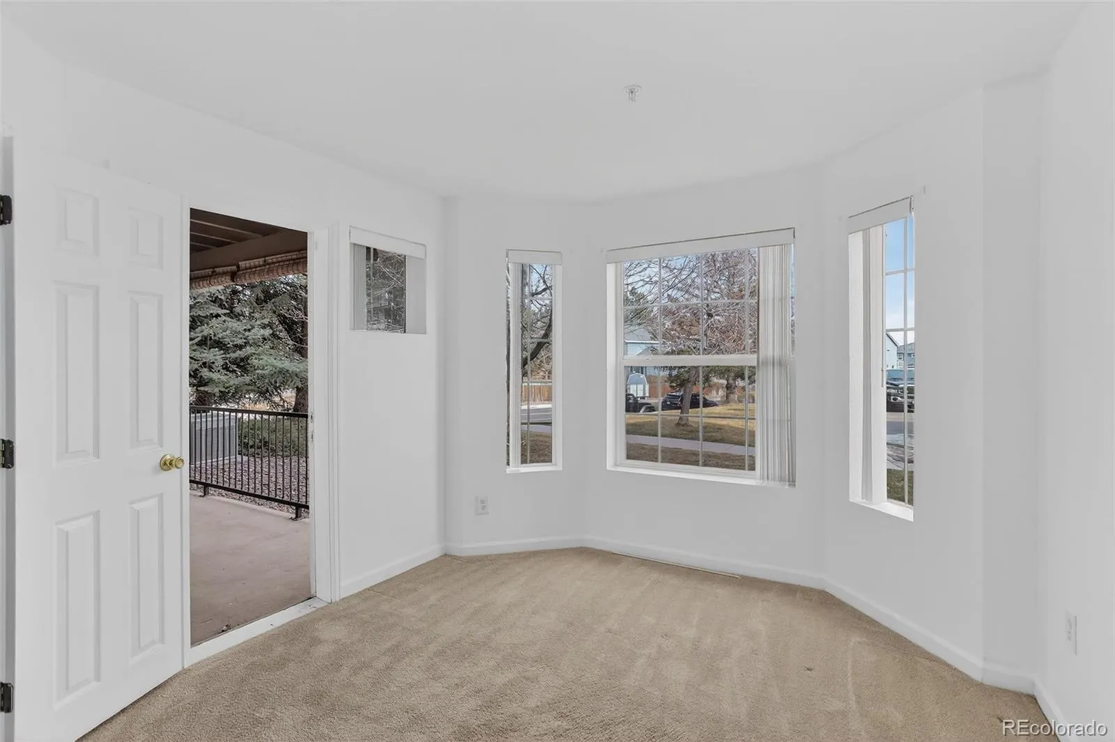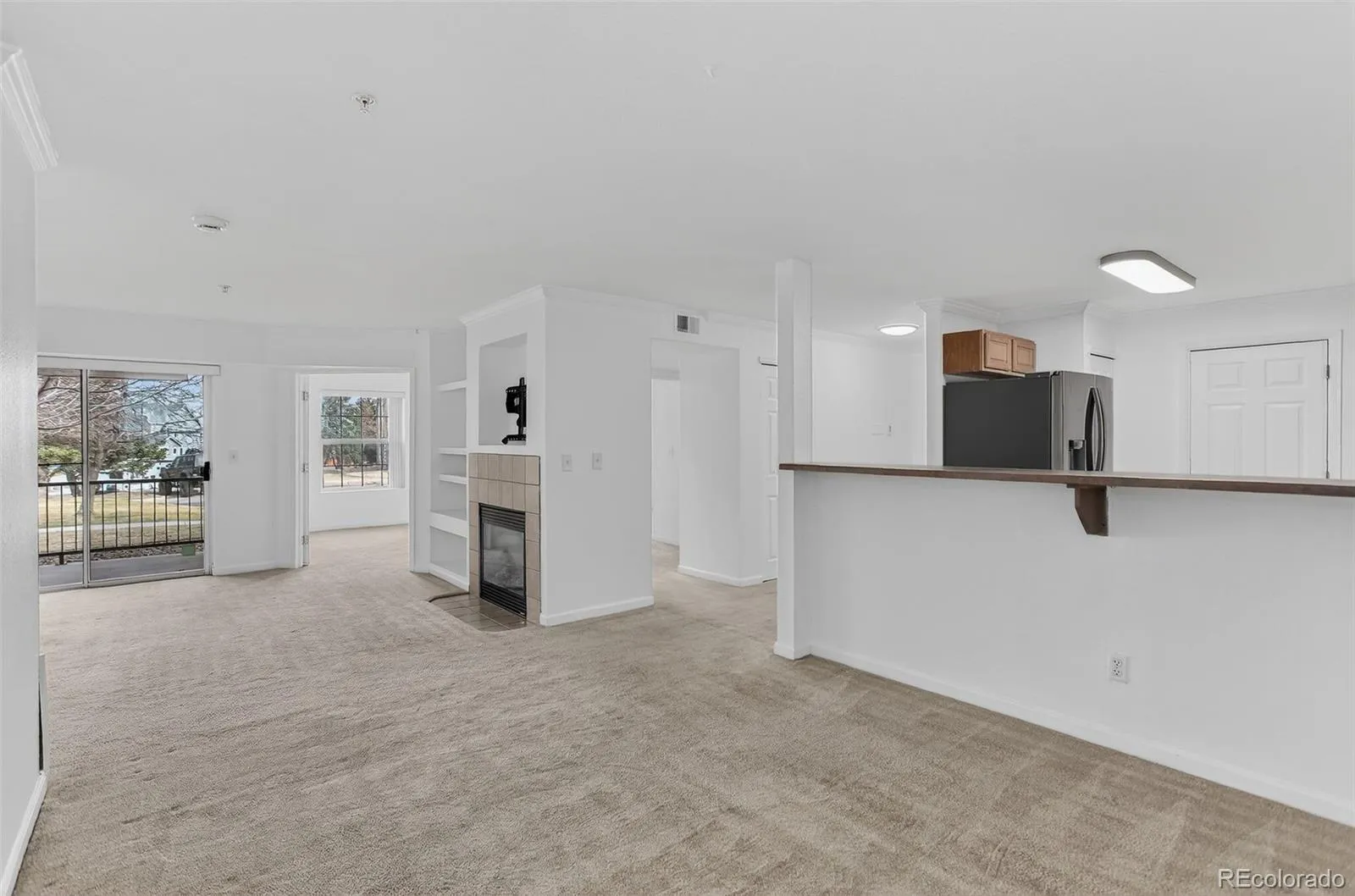 This 3 bedroom 2 bath condo is filled with beautiful natural light and is enhanced by a lovely sized patio. The direct, no-stair access from the reserved parking spot, makes carrying in groceries and other items a breeze! Once you enter the unit, you will soon be greeted by the cozy fireplace in the spacious living room. The separate dining area allows room for entertaining guests with ease! The primary en-suite has access to the patio, a large soaking tub and walk-in closet. You can enjoy your morning with coffee on the patio or sit inside by the gas fireplace! This unit is very close to its reserved parking spot, as well as the pool and club house. The condo is situated in a prime location adjacent to a public park, close to the foothills, and has easy access to C-470. Come and see all that this ground level condo and its amenities have to offer!
