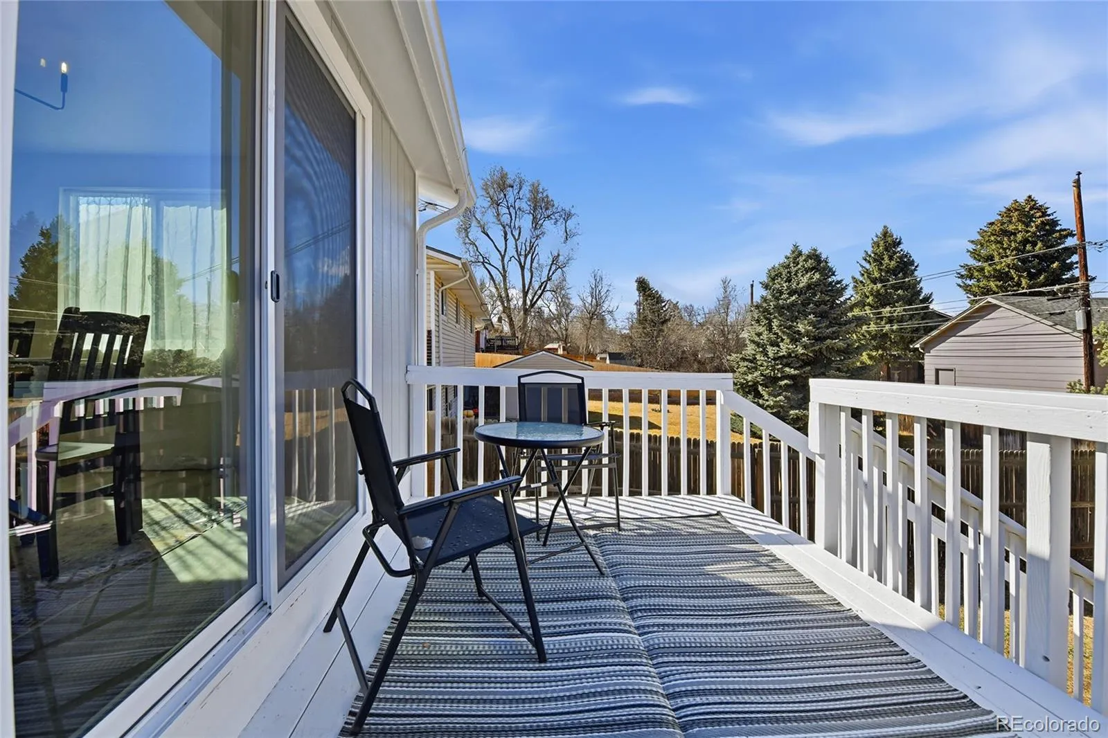 Outside, the property truly shines. The large, fenced backyard is framed by mature trees, creating a peaceful setting ideal for relaxing or hosting gatherings. Enjoy warm Colorado evenings on the lovely deck, perfect for outdoor dining and entertaining.