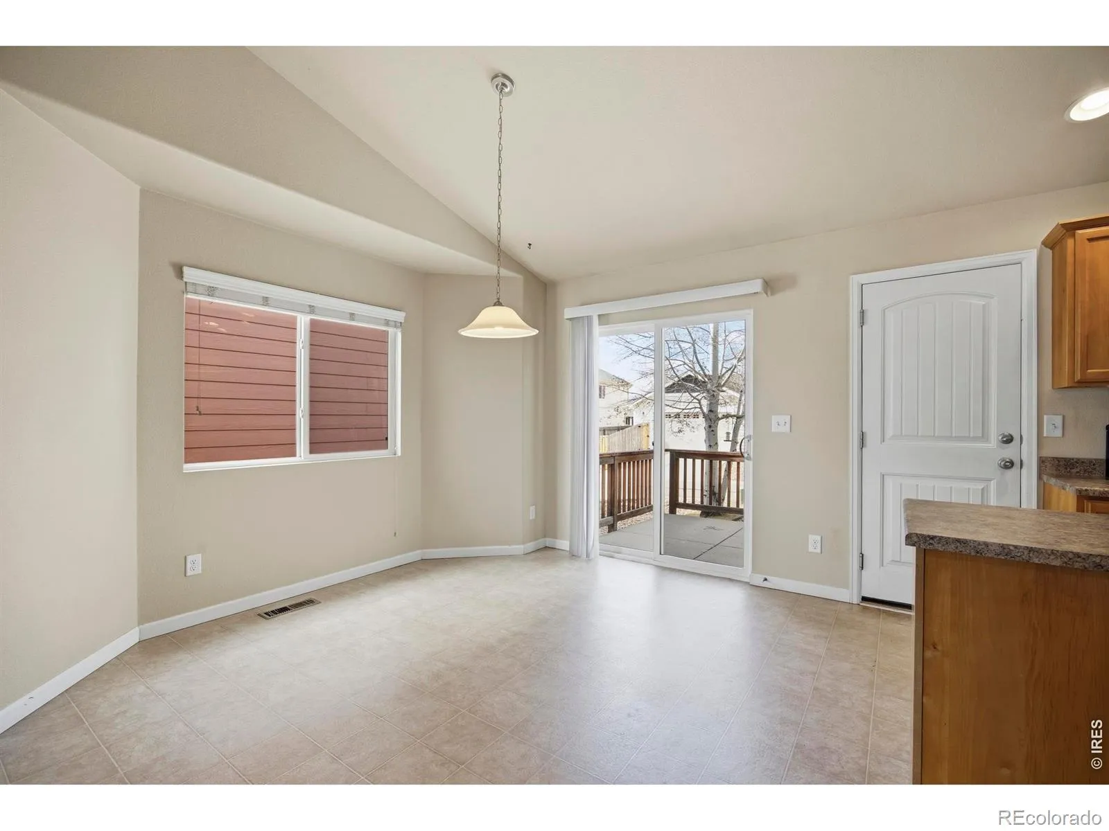 Charming 3-bedroom, 2-bath ranch-style home in Loveland featuring an open floor plan and vaulted ceilings that create a bright, spacious feel throughout. The kitchen offers a cozy eating area, a small prep island, and includes all appliances. The primary bedroom features a private full bath and a walk-in closet. A full unfinished basement provides excellent potential for future expansion, storage, or customization. The washer and dryer are also included. Enjoy outdoor living with a covered front porch and a concrete patio in the backyard. Additional highlights include an oversized two-car alley-load garage and a pre-inspection already completed for added peace of mind-making this a great opportunity for first-time buyers or investors alike.