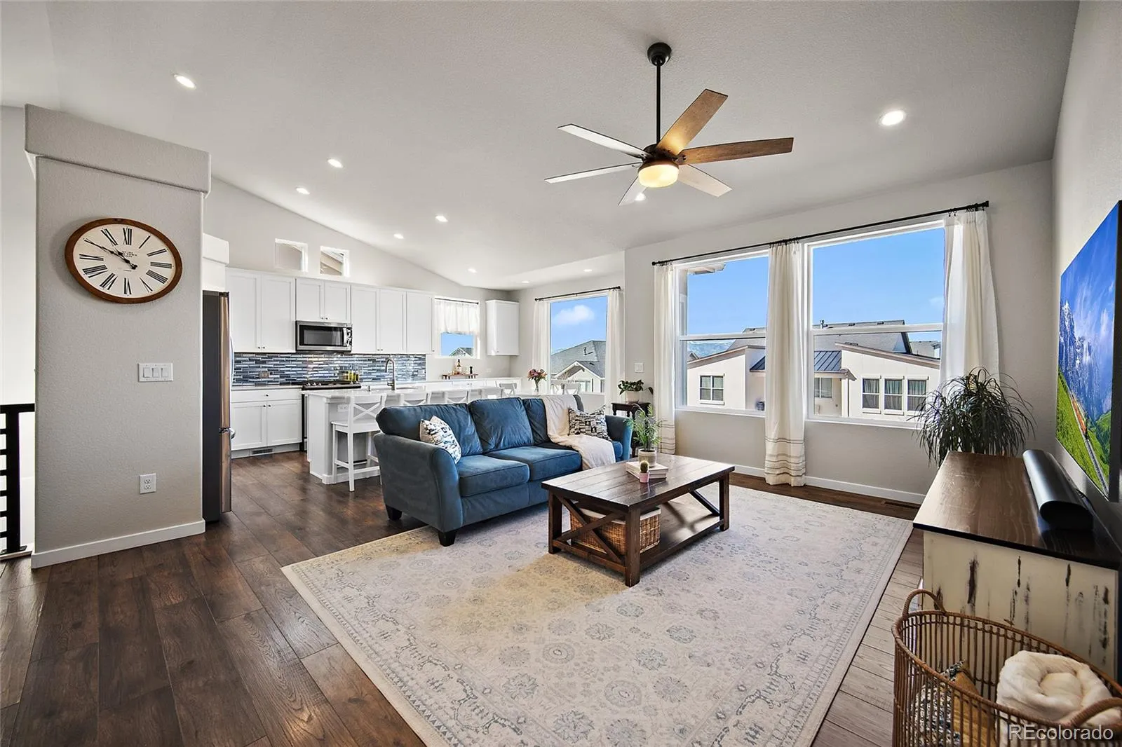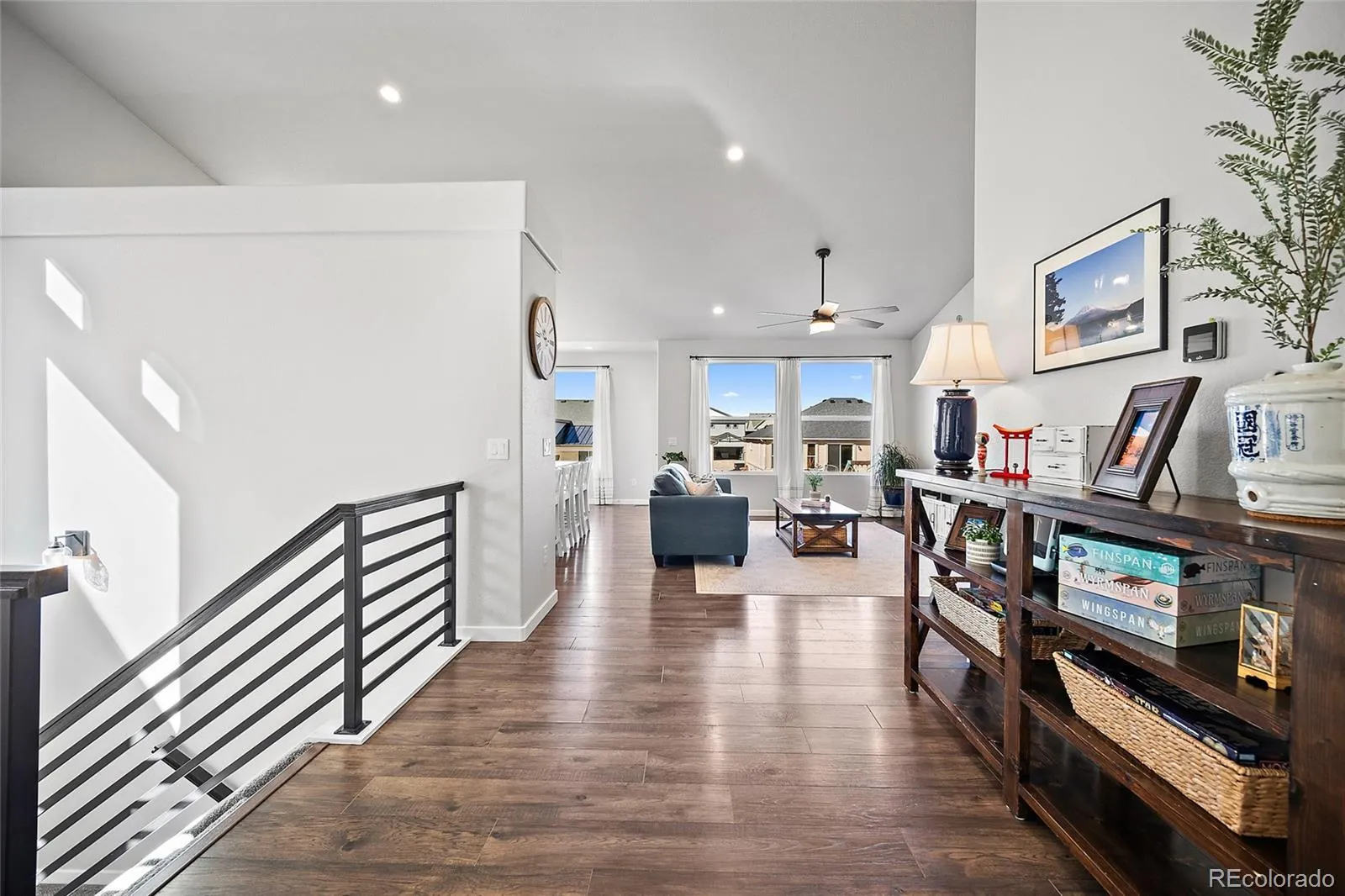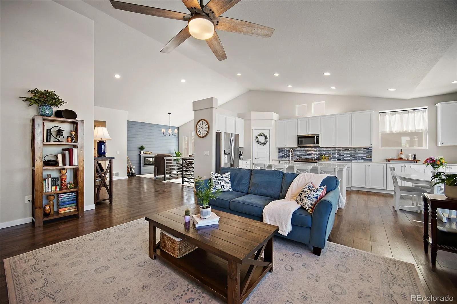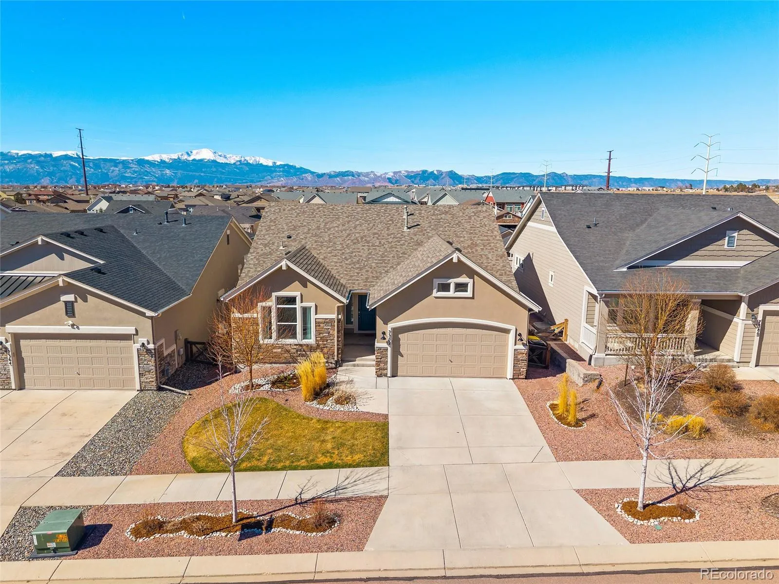 Welcome to this beautiful ranch-style home featuring one of the area’s most desirable floorplans. From the moment you arrive, the attractive stucco and stone exterior creates wonderful curb appeal. Inside, you’ll immediately notice the tall ceilings throughout the main level, wood laminate flooring, custom tile work, and an abundance of windows that fill the home with natural light, including spectacular mountain views from the kitchen. The open-concept layout is perfect for both everyday living and entertaining, as the spacious family room flows seamlessly into the kitchen. The kitchen features 42-inch white cabinets, stainless steel appliances, quartz countertops, a large center island, a custom backsplash, and a bonus pantry for additional storage. The main-level primary suite offers comfort and convenience with an adjoining bathroom that includes an oversized shower, double vanity, and elegant gray quartz countertops and easy access to the laundry room. An additional bedroom and full bathroom are also located on the main level, providing flexibility for guests or a home office. Downstairs, you’ll find a large family room offering endless possibilities for a media space, game room, or additional gathering area, along with three generously sized bedrooms and another full bathroom. The basement also includes unfinished storage space that could easily be converted into an en-suite bathroom. The backyard is another highlight of the home, featuring a large custom stone and concrete patio and a spacious yard perfect for outdoor games, gardening, or simply relaxing. The garage provides plenty of additional storage, epoxy-coated floors, and a 220 outlet that is ideal for electric vehicle charging. Conveniently located just down the street from the community pool, elementary school, and neighborhood park, this home offers easy access to some of the area’s most popular amenities. With its thoughtful design and beautiful finishes throughout, this home is sure to impress.