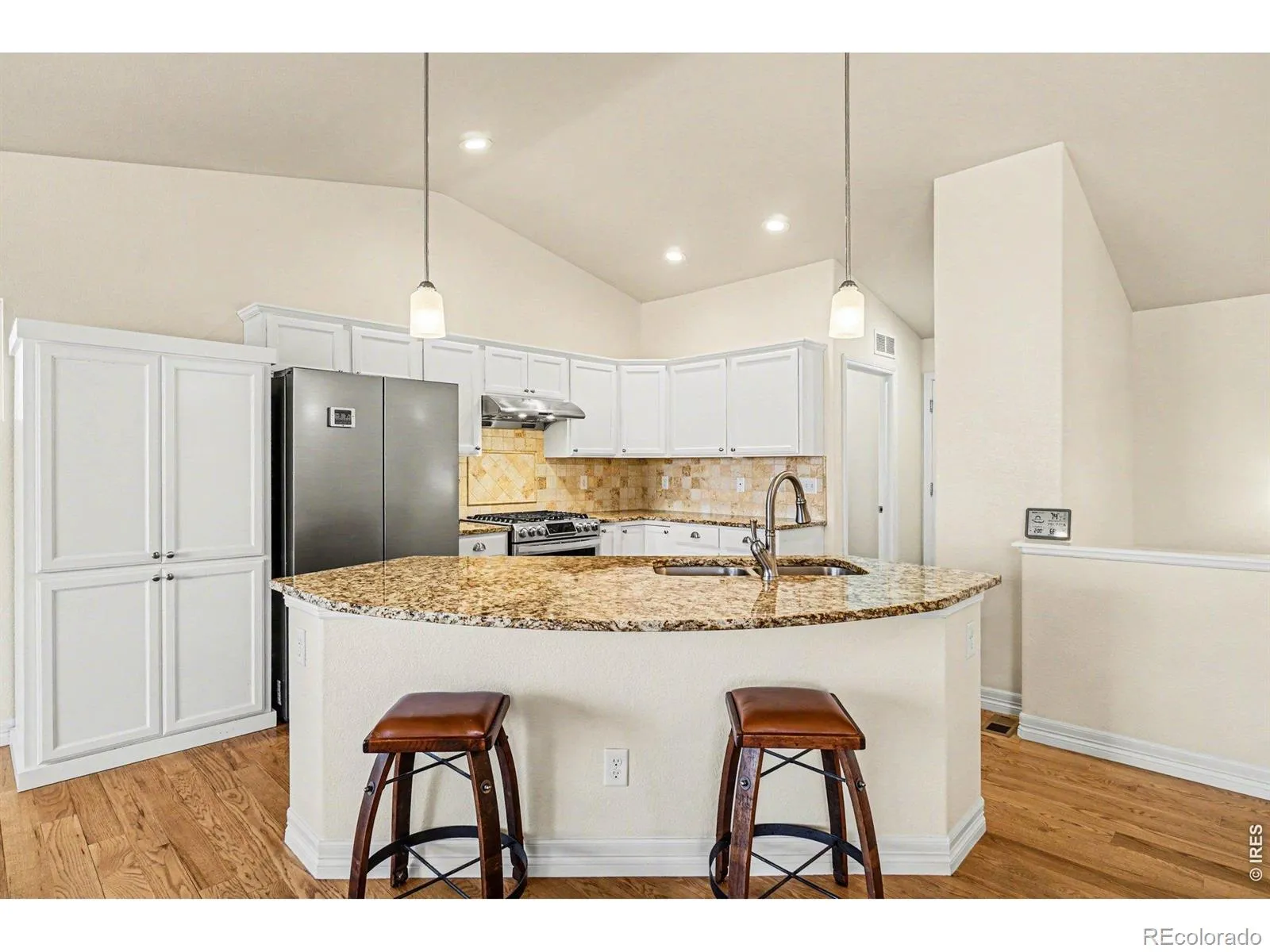 Discover the perfect blend of style and functionality in this meticulously maintained Silverton ranch, where vaulted ceilings and an expansive open floor plan create an immediate sense of grandeur. The heart of the home features a gourmet kitchen complete with granite countertops, gas range/oven, stainless steel appliances, a functional center island, and a spacious pantry, all accented by elegant wood flooring that flows seamlessly into the dining area. With a freshly refreshed interior paint palette, this move-in-ready residence offers a bright and airy atmosphere throughout the main level, which also hosts a convenient dedicated laundry room and a luxurious 5-piece primary suite designed for ultimate relaxation. The Basement provides a fully functional independent living space with a kitchenette, 3/4 Bath, Bedroom and large Rec Room and Gas Fireplace. Outside, the property transforms into a private sanctuary. The side-load 2.5-car garage maintains the home’s sleek curb appeal, while the beautifully landscaped front yard welcomes you home. The backyard is an entertainer’s dream, featuring a fully fenced perimeter, a custom pergola-covered stone patio, and lush surroundings that ensure maximum privacy for summer gatherings. Built with Midtown Green certified energy-efficient construction, this home offers long-term sustainability and savings. Don’t miss out on this gem!