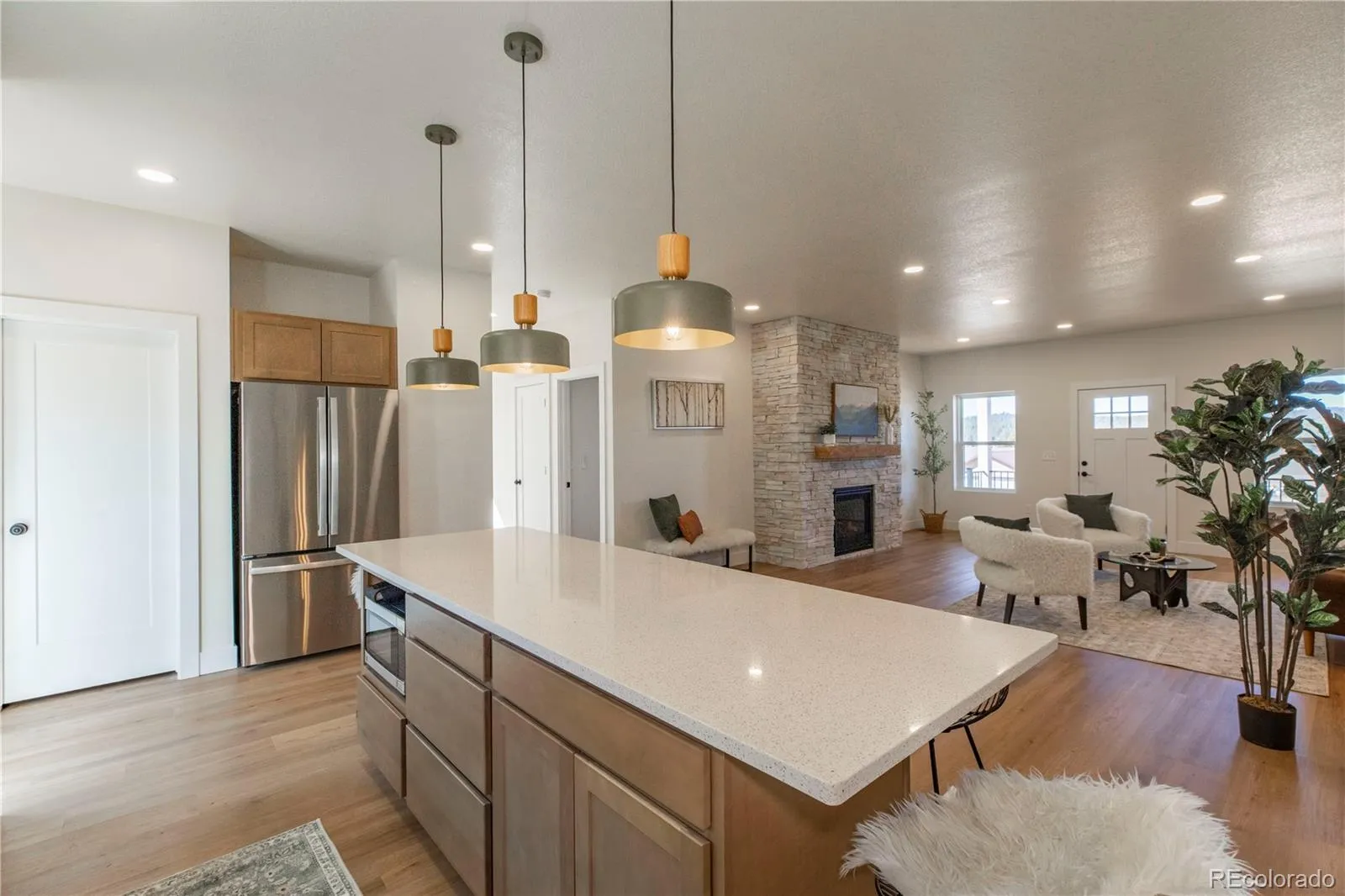 Stunningly beautiful and Immaculate BRAND NEW HOME! Stucco! Home Features the Bonus of Main Level Living! Incredibly spacious Great Room with gas fireplace. Open Kitchen features Quartz Countertops, Upgraded Stainless Appliances including Natural Gas Stove, and a great pantry. Upgraded lighting package throughout. High end water resistant easy to maintain LVP through out the entire home! Recessed lighting! Spacious Master Suite, has large walk in closet with Custom Barn Doors and an adjoining 5 Piece bath that features a stunning floor to ceiling tile shower. Enjoy the quiet and peaceful outdoors on the beautiful maintenance free covered front porch with light fixture and maintenance free railing system. Home is in a great location within the subdivision, just a little bit off the paved entry road, for easy access. Don’t miss out on this beautiful Brand New Never Lived in Home on half an acre!