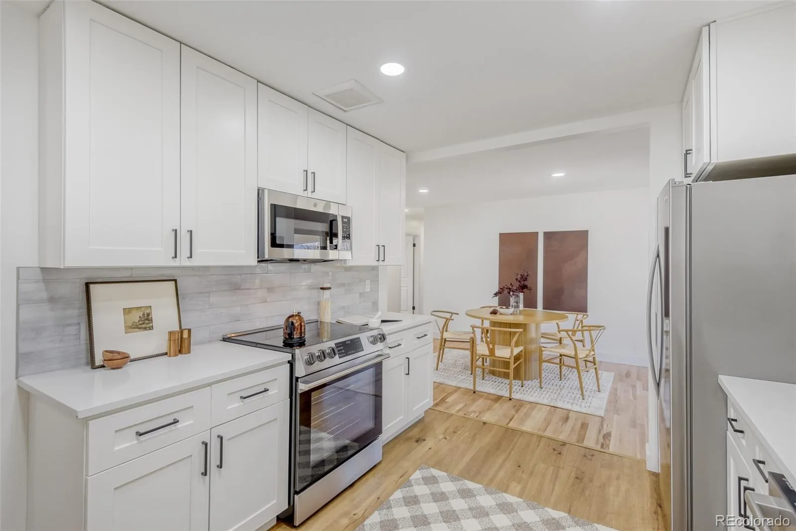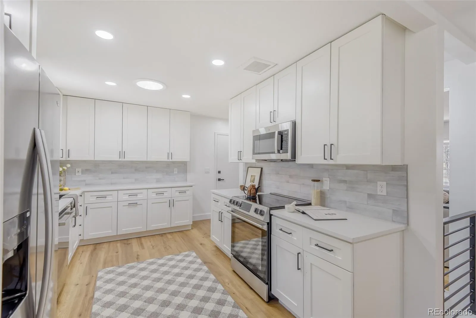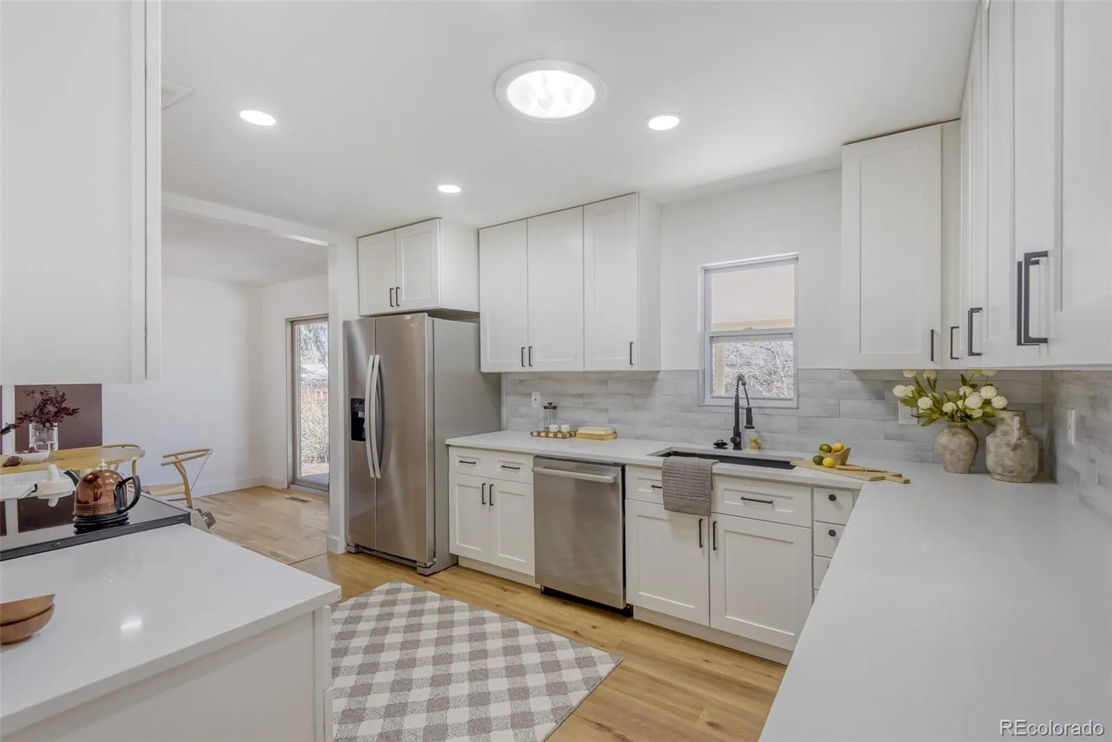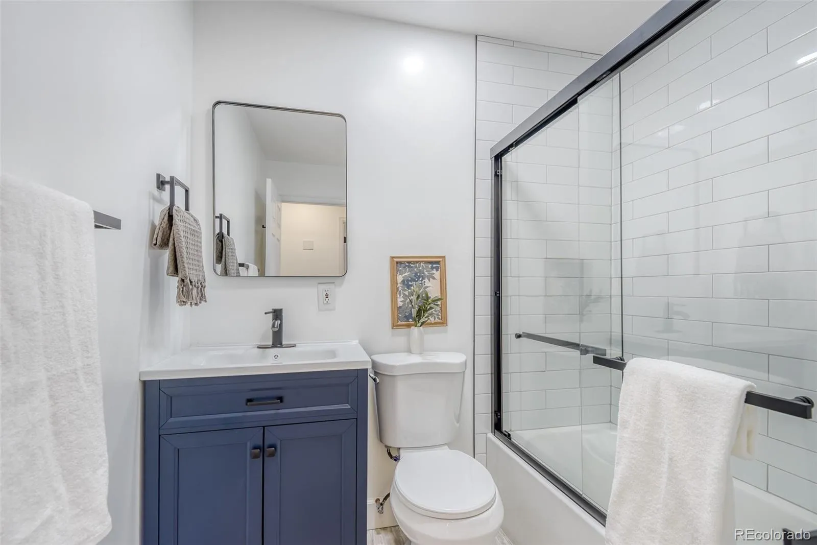 This is the one! Completely remodeled with a modern twist on the classic all brick ranch! All systems are new and updated, including furnace, central air, sewer line, hot water heater, roof & gutters, 200amp electric service & new electric panel. Not worrying about the systems allows you to enjoy your new kitchen! Sporting soft close white shaker cabinets with 5″ pulls, quartz countertops, high-end stainless-steel appliances and a giant country kitchen where you can take in the view of your private park like yard. All of this in a space that flows effortlessly. In one direction you have your dining room and sliding door to your covered patio, and in the other direction you step into your spacious living room with its bay window and recessed LED lighting. There are 3 completely new and remodeled bathrooms! Each one is unique and special. You have the main level full bath with its deep soaking tub and fun vanity, there is the main level in suite 3/4 bath off of the primary that you’ll be happy not to share, and a new 3/4 bath in the basement with a giant walk-in shower! You have three bedrooms on the main, a conforming bedroom in the basement, and an additional room that is an egress window away from conforming. A giant family room in the basement with new carpet offers unlimited opportunity. Very large laundry storage room with laminate wood floors rounds out the basement. The covered back patio adds lots of great three season space to this open floorplan. Resurfaced floor in the oversized two car garage. The list of details goes on and on! Adjacent to Bible Park, the Highline Canal, shopping, public transit, etc. Easy access to I-25 and conveniently located between DTC and downtown. This one checks all the boxes! Bring your picky buyers, it won’t disappoint.