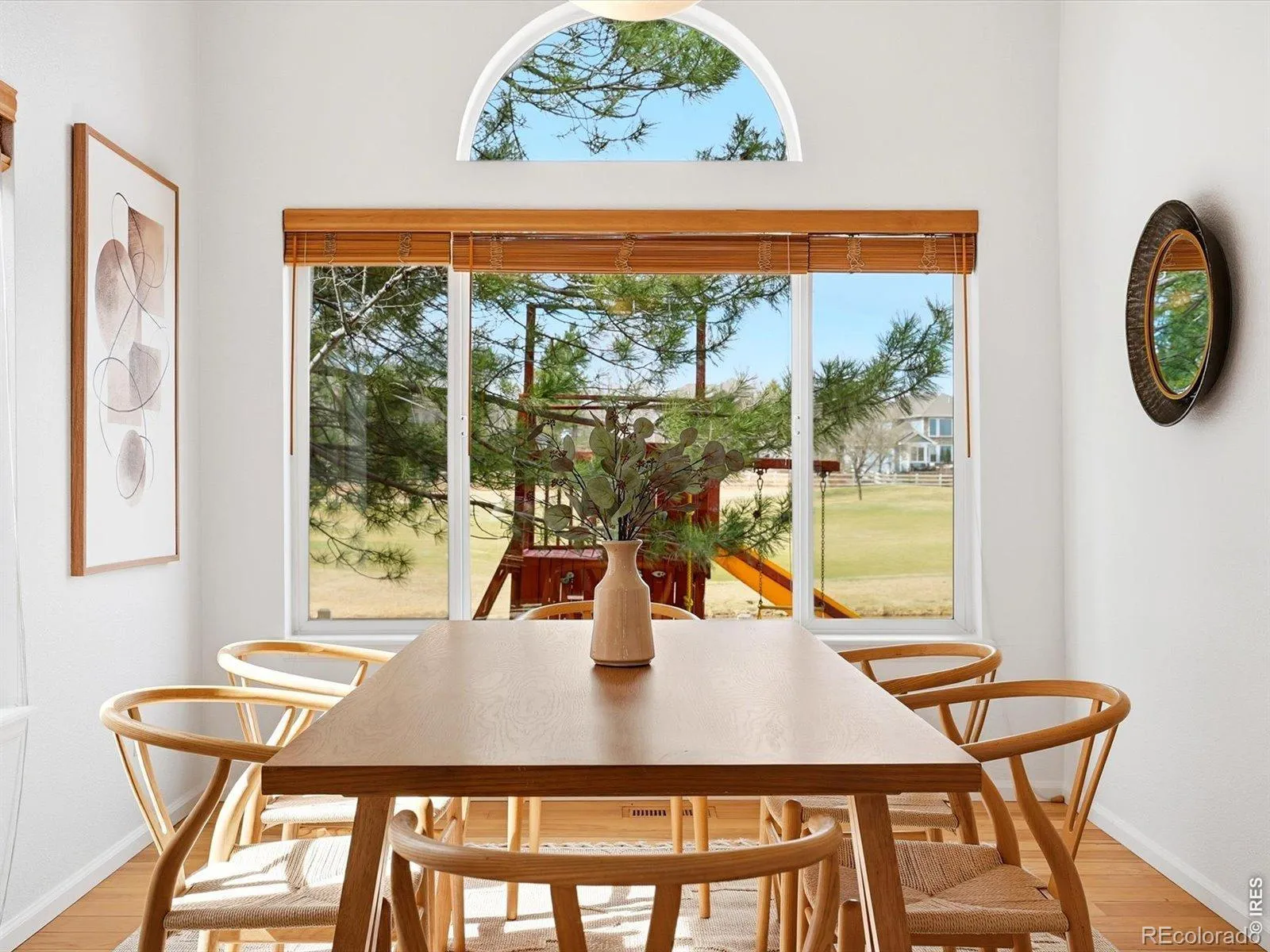 Welcome to 13955 Dogleg Lane, a beautifully refreshed golf-course home in the heart of the Broadlands, where lifestyle, views, and space come together in a truly special setting. This 5-bedroom, 4-bath residence backs to the 8th fairway of the Broadlands Golf Course and overlooks a serene pond, offering peaceful views and rare privacy. The pond attracts local wildlife including turtles, fish, ducks, geese, and the occasional Great Blue Heron, adding to the home’s tranquil outdoor setting. Inside, the home feels light, clean, and move-in ready with brand-new carpet and fresh interior paint throughout, complemented by timeless finishes and an easy, flowing floorplan. The main level features warm wood floors, spacious living and dining areas, and a well-appointed kitchen anchored by a Viking range and cooktop, stainless steel appliances, and ample cabinetry-ideal for both everyday living and entertaining. Large windows throughout frame beautiful golf course and water views, bringing the outdoors in. Upstairs, the generous primary suite offers a relaxing retreat with an en-suite bath and tranquil outlooks, while additional bedrooms provide flexibility for guests, home offices, or multi-generational living. A finished basement adds even more space for recreation, media, or hobbies. Garage is equipped with an EV charger. Step outside to the recently painted back deck, where mornings begin with coffee overlooking the pond and evenings unwind with spectacular sunset views across the fairway-an ideal Colorado backdrop. Located in the highly desirable Broadlands community, residents enjoy a championship golf course, clubhouse, pools, fitness facilities, miles of trails, parks, and nearby schools and shopping. The home is also less than a five-minute walk to the neighborhood pool and conveniently located between Denver and Boulder.