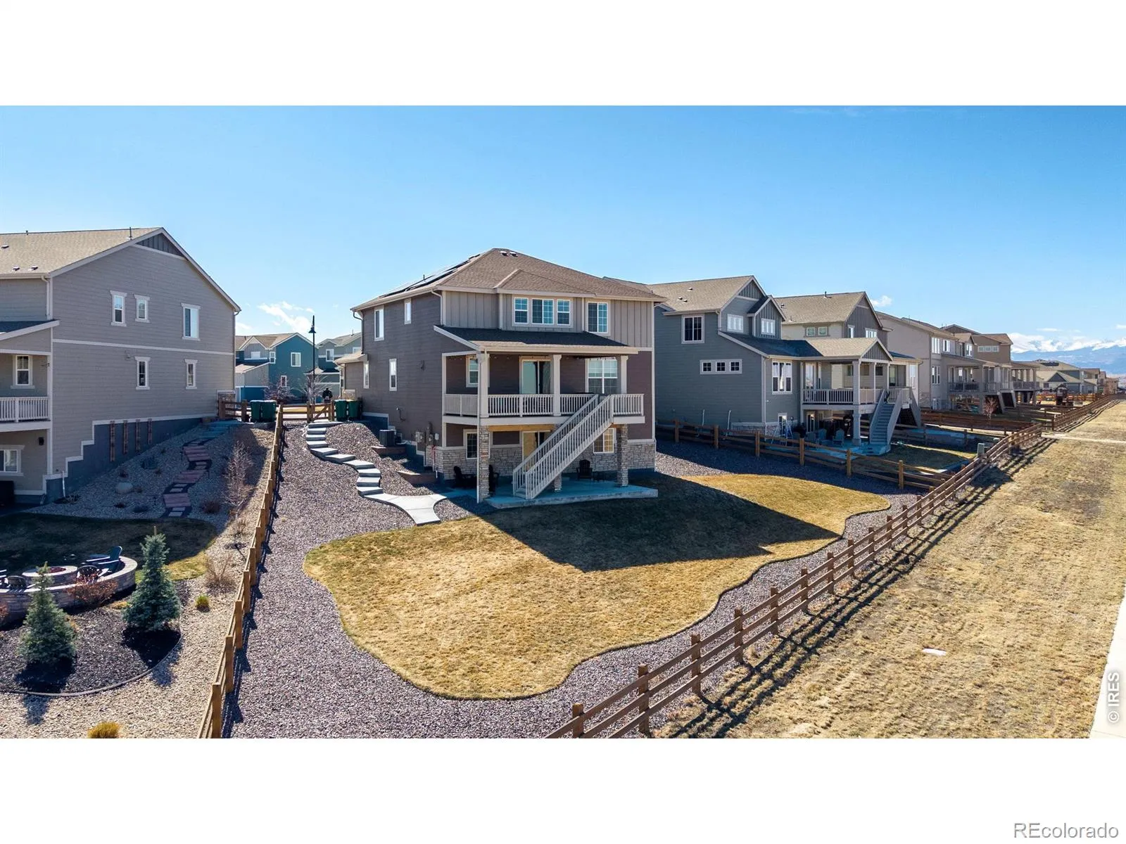 Welcome to this spacious LENNAR home in Erie offering an ADU with multigenerational or income possibilities, A LARGE LOT, MOUNTAIN VIEWS, and rare PRIVACY with no backyard neighbors. Situated on a premium lot, this home enjoys expansive MOUNTAIN AND OPEN VIEWS and a larger backyard than many homes in the neighborhood-perfect for enjoying Colorado sunsets from the back deck. The main level features a flexible OFFICE with CUSTOM DOORS for your work from home needs. The heart of the home is the spacious kitchen with a large island and seating, flowing seamlessly into the dining and living areas while capturing views of the undeveloped land behind the home. Upstairs offers 4 spacious bedrooms and a convenient upper-level laundry room. The primary suite features beautiful views, a walk-in closet, and a 3/4 en-suite bathroom. Two bedrooms share a Jack-and-Jill bathroom, while the fourth bedroom has its own private attached bathroom. The newly finished WALK-OUT BASEMENT adds exceptional living space with ADU POTENTIAL. With its SEPARATE ENTRANCE and exterior WALKWAY, the space includes a bedroom, 3/4 bathroom, KITCHENETTE with refrigerator, dishwasher, and microwave, its OWN WASHER and DRYER, durable LVP flooring, and ample storage, ideal for MULTIGENERATIONAL living or RENTAL opportunities. Step outside to enjoy the NEW concrete patio and fresh landscaping, while the elevated deck offers SWEEPING VIEWS and stunning Colorado sunsets. Just beyond the backyard, a concrete CONNECTOR PATH provides immediate access to the Coal Creek and Rock Creek Urban Trail system, offering miles of walking and cycling right out your back door. Additional highlights include leased solar ($58/month) and a low HOA of $88/month that includes trash, recycling, and access to the neighborhood pool. The community will also feature a new sports field and playground. Located in one of Erie’s desirable communities known for larger homesites and privacy rarely found in newer construction neighborhoods.