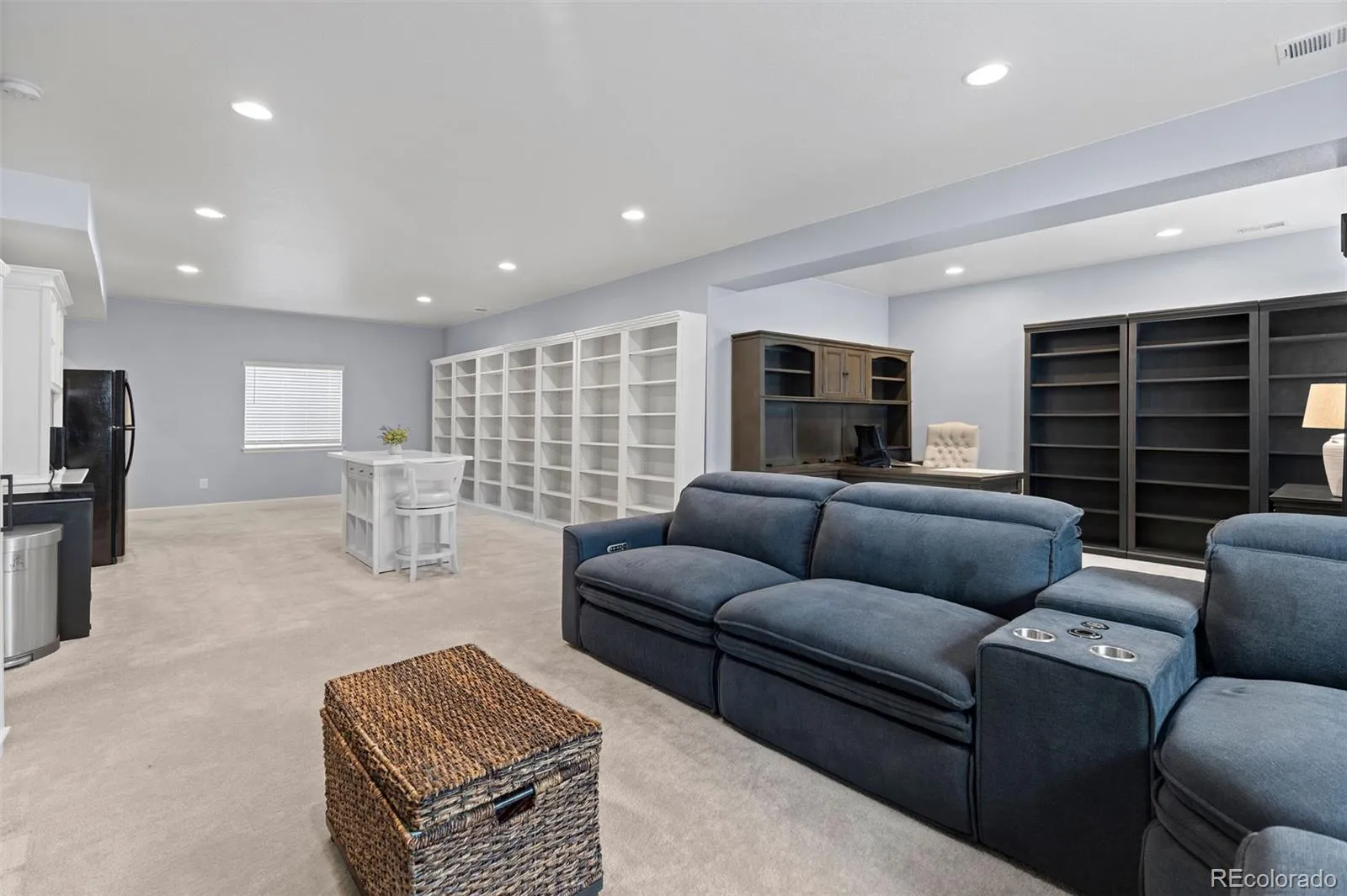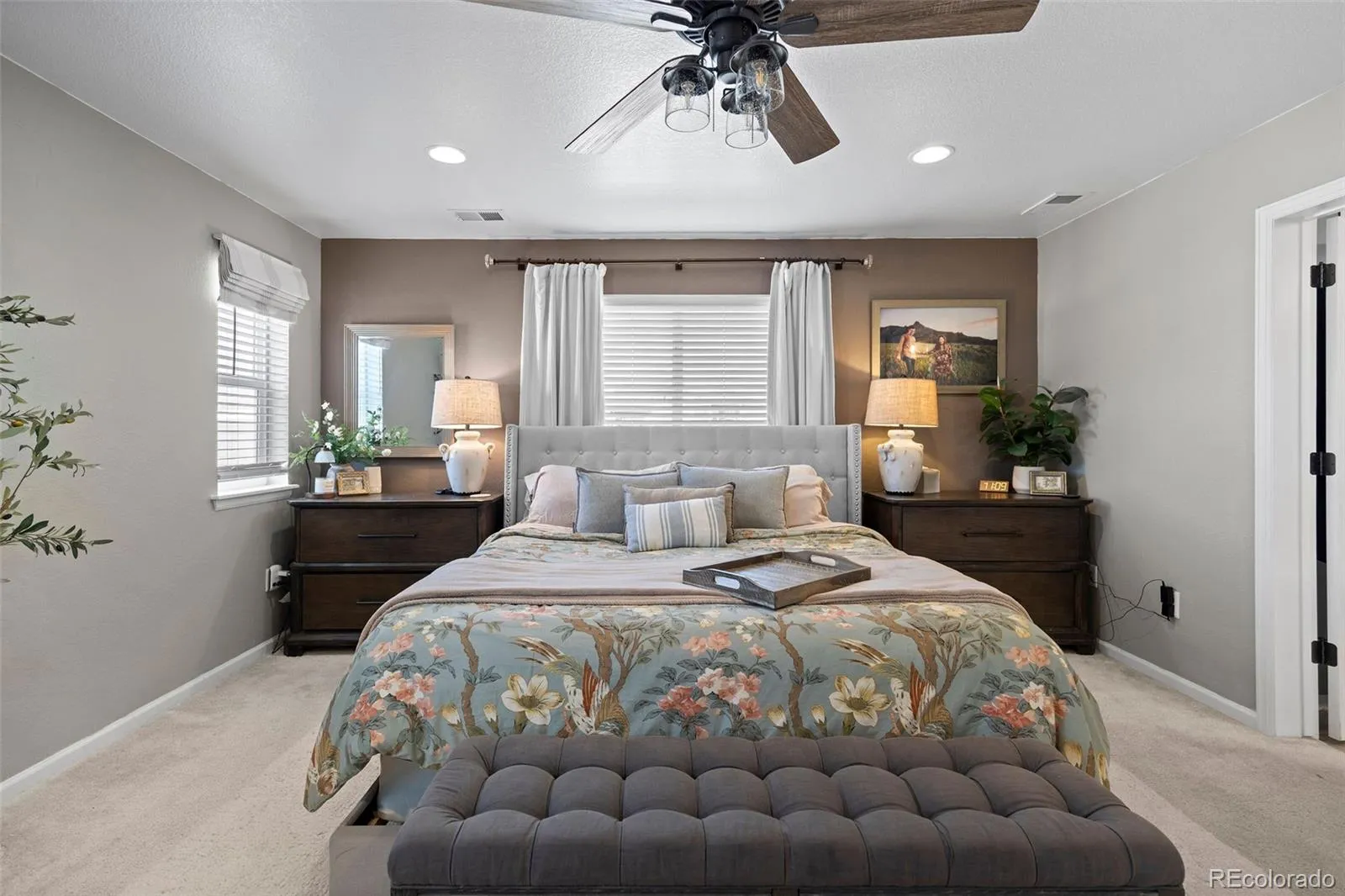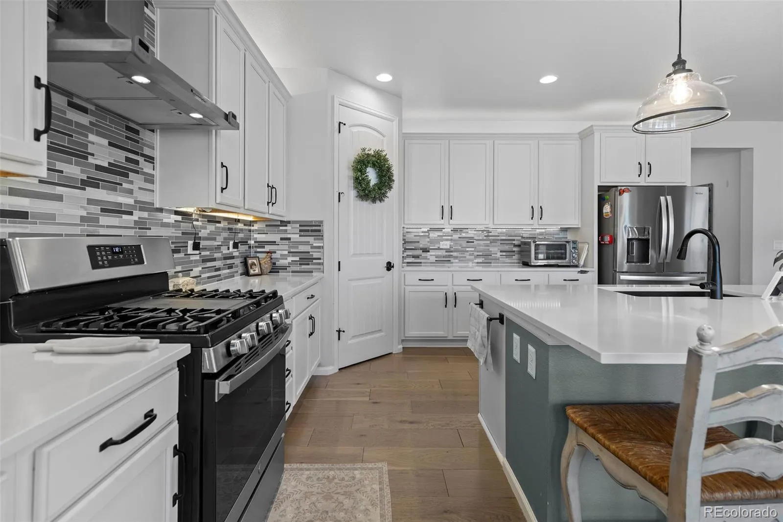 The heart of the home is the stunning kitchen, featuring a large center island with bar seating, abundant cabinetry, and two large pantries—perfect for snack storage, dry goods, and overflow organization. A walk-in pantry conveniently located off the mudroom adds even more functionality to this thoughtfully designed space. The sun-filled dining room is surrounded by windows and opens to the covered deck—perfect for entertaining or enjoying Colorado evenings with family and friends. The expansive living room provides the perfect gathering space, while a private main-floor office offers flexibility for working from home.