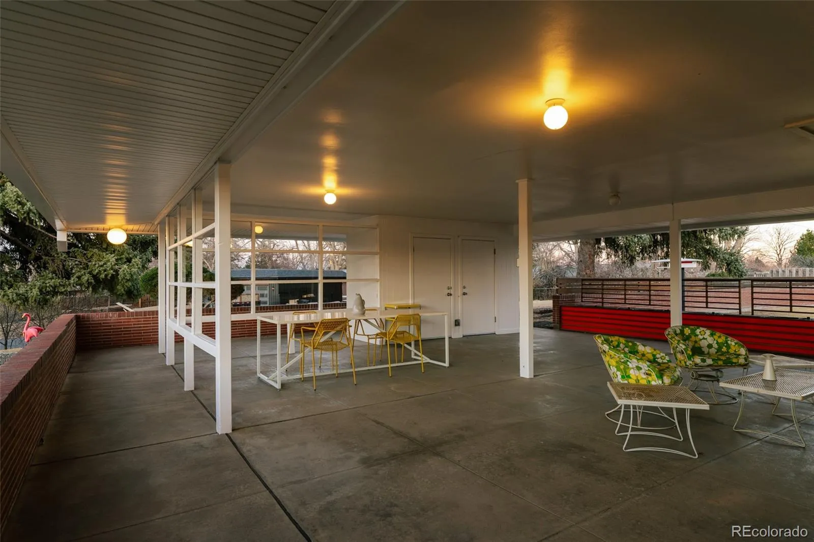 Let us introduce you to the Knott House in Wheat Ridge’s Paramount Heights. Developed by Lee Doud and advertised in 1956 as a place where “you’ll enjoy a panorama of more than 100 miles of sharply silhouetted mountains stretching from Long’s Peak to the Snowy Range in Wyoming,” it truly is a “home with a view.” This quintessential low-slung Mid-Century ranch evokes the elegance of International Style modernism reminiscent of Mies van der Rohe and Pierre Koenig. Perched atop the hill, the home feels like a perfectly composed architectural jewel box. Natural light floods the kitchen which features beautifully detailed custom cabinetry, a colorful mosaic backsplash, and custom shelves. The living room is a showcase of glass framing sweeping mountain views, highlighted by original teal terrazzo tile and a striking dual-sided stack-bond brick fireplace that anchors both the living area and first bedroom. Marmoleum flooring runs throughout much of the home, preserving the authentic modern aesthetic. The ¾ bathroom features custom cabinetry and modern tile. The primary suite offers two walls of ribbon windows, a custom wood valance, and a walk-in closet. Its ensuite bathroom features a two-tone concrete Hydro Systems soaking tub, walk-in shower, and custom vanity. Quarter-sawn mahogany veneer details appear in the solid core doors, bedroom valance, and primary bath vanity. Outdoor living continues with a large, covered patio that functions as an outdoor living room with mountain views. The nearly half-acre lot includes custom garden beds and a fully fenced area. The garage is far more than just a garage. Designed to echo mid-century architecture, it features glass doors, stylized custom cut brick, a sunroom, and a 500-square-foot heated workshop ideal for a studio, office, or gym. Exterior details include Eichler narrow-line siding, Batu wood eaves, and recessed lighting. Almost brand new AC and furnace. Experience timeless architecture, simplicity, and modern convenience.