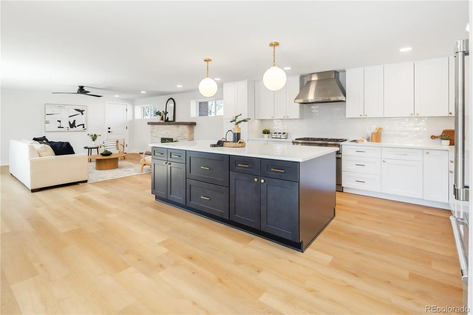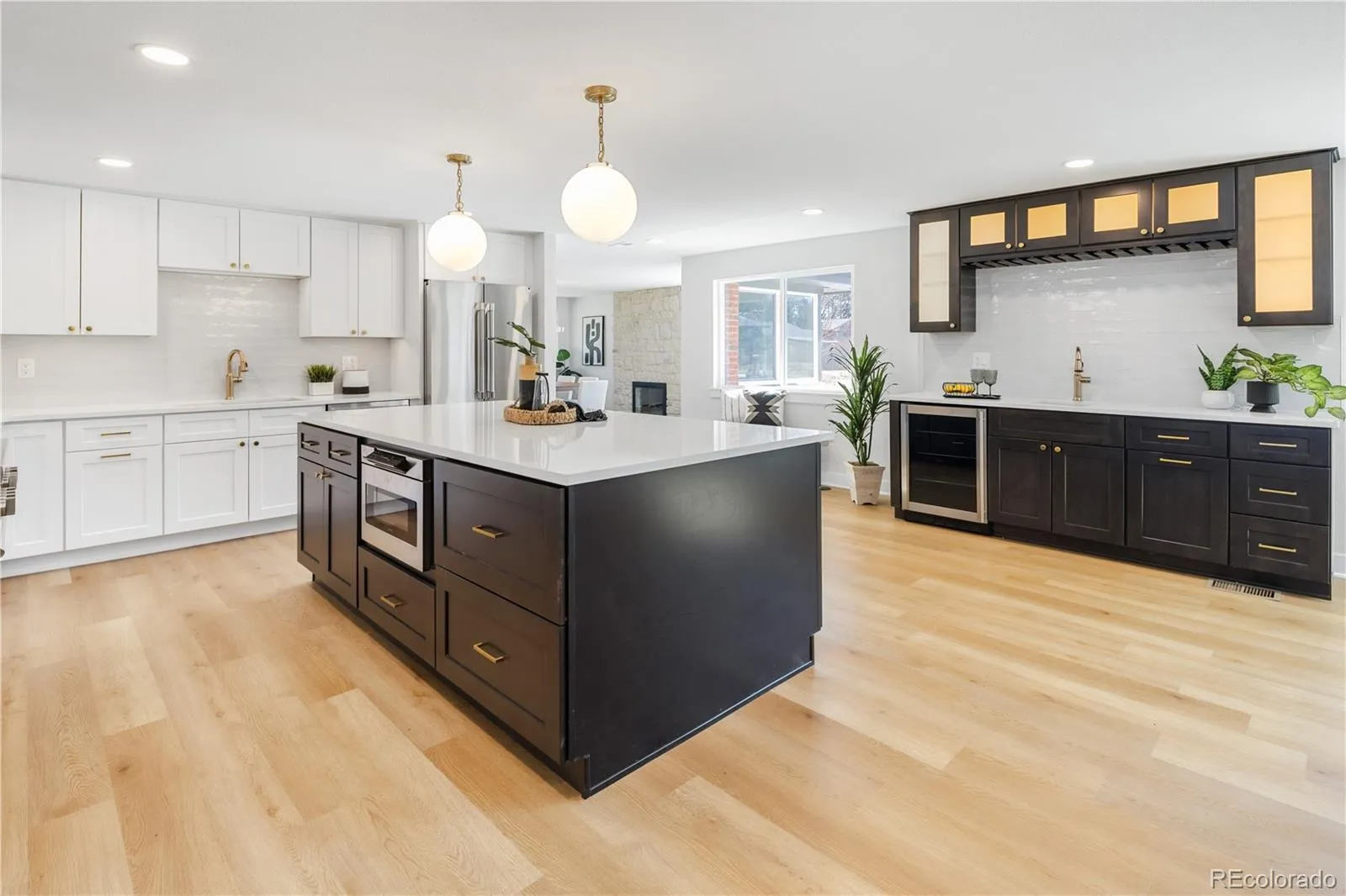 Experience the perfect harmony of timeless character and high-end modern comfort in this perfectly redesigned and fully permitted residence. Every system in this home has been reimagined for the future, featuring all-new electrical, mechanical, and plumbing. Step inside to an open, light-filled sanctuary defined by white oak luxury vinyl plank flooring, elegant shaker-style trim, and curated lighting. The heart of the home is a spacious chef’s kitchen anchored by quartz countertops and a massive center island. From the 36″ commercial gas range and drawer microwave to the handmade pendants and new two-toned wood cabinetry, this kitchen offers both designer aesthetics and thoughtful storage for every tool in a chef’s arsenal. A dedicated wet bar mirrors the kitchen’s high-end finishes, making hosting a dream. The kitchen flows into a grand great room, where a beautiful stone fireplace topped with a reclaimed 1800s barn beam mantle serves as a stunning focal point. The dining room is anchored by its own stone fireplace, creating the warm, rustic ambiance of a French Country estate. Adjacent to the dining area is a large, versatile flex space, perfect for an additional sitting room or expanded guest seating while entertaining. The main floor primary suite serves as a spa-like retreat, offering an extra-deep soaking tub, premium Delta fixtures, custom tile work, and a spacious walk-in closet. Every bedroom boasts a private ensuite, while guest powder rooms on each floor ensure ultimate convenience. The massive basement features a built-in bar and flexible space for a gym or billiards, anchored by an electric fireplace with custom bookshelves. Beyond the aesthetic, the home offers peak efficiency with a high-efficiency furnace, 14 SEER A/C, and high-performance windows. Durable upgrades include a 200-amp service, dual French drains, and impact-resistant roofing. Outside, enjoy stamped concrete, composite decking, automated landscaping, and dedicated RV or trailer parking.