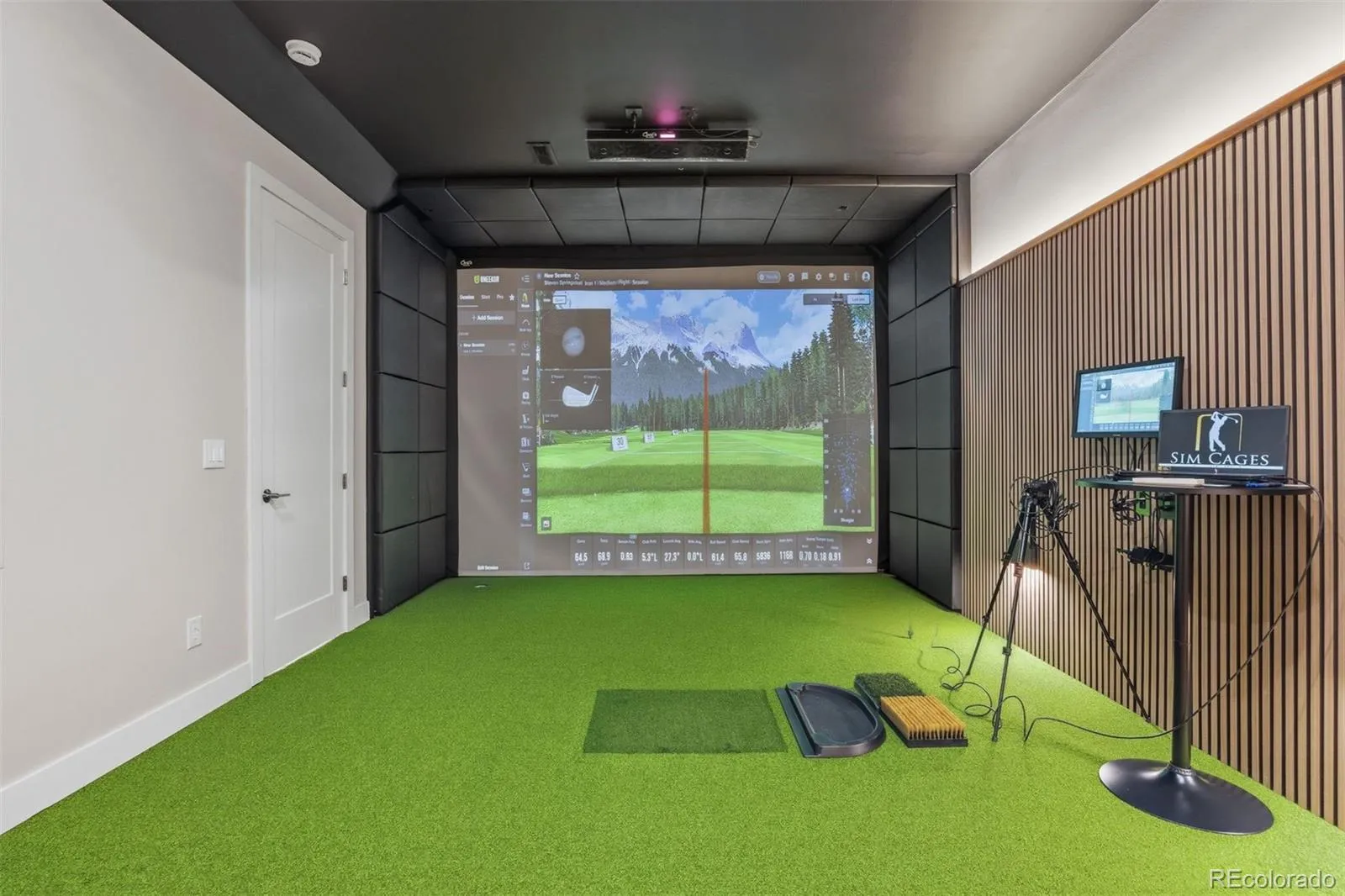 The walk-out lower level is built for unwinding, featuring a recreation room that opens to a covered tongue-and-groove patio with a fully enclosed turf yard, perfect for pets. The included Uneekor® golf simulator, complete with cameras, sensors, projector, and full-wall impact screen, is a true hole-in-one for golf enthusiasts.