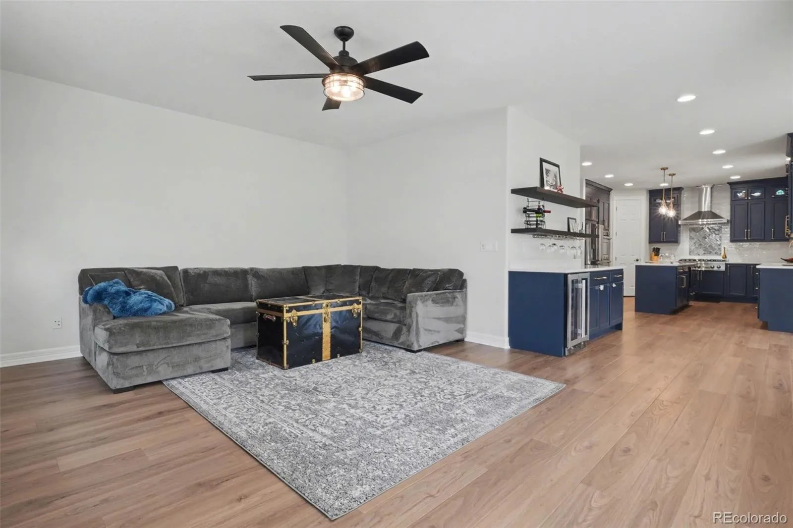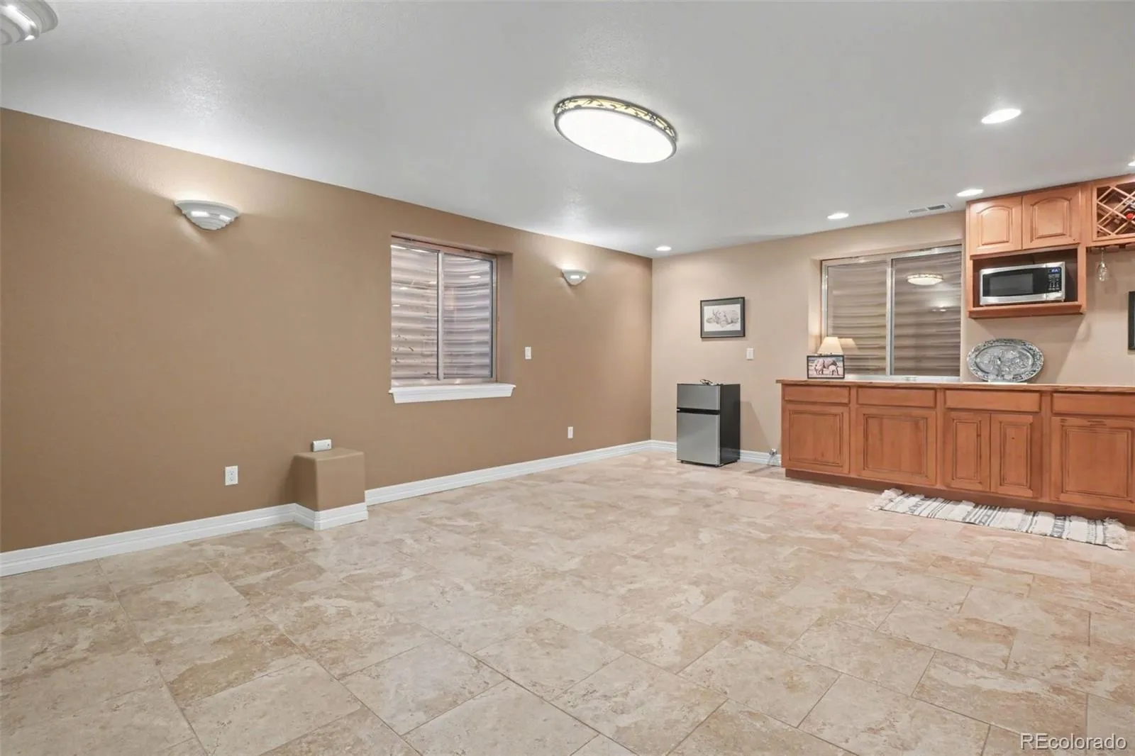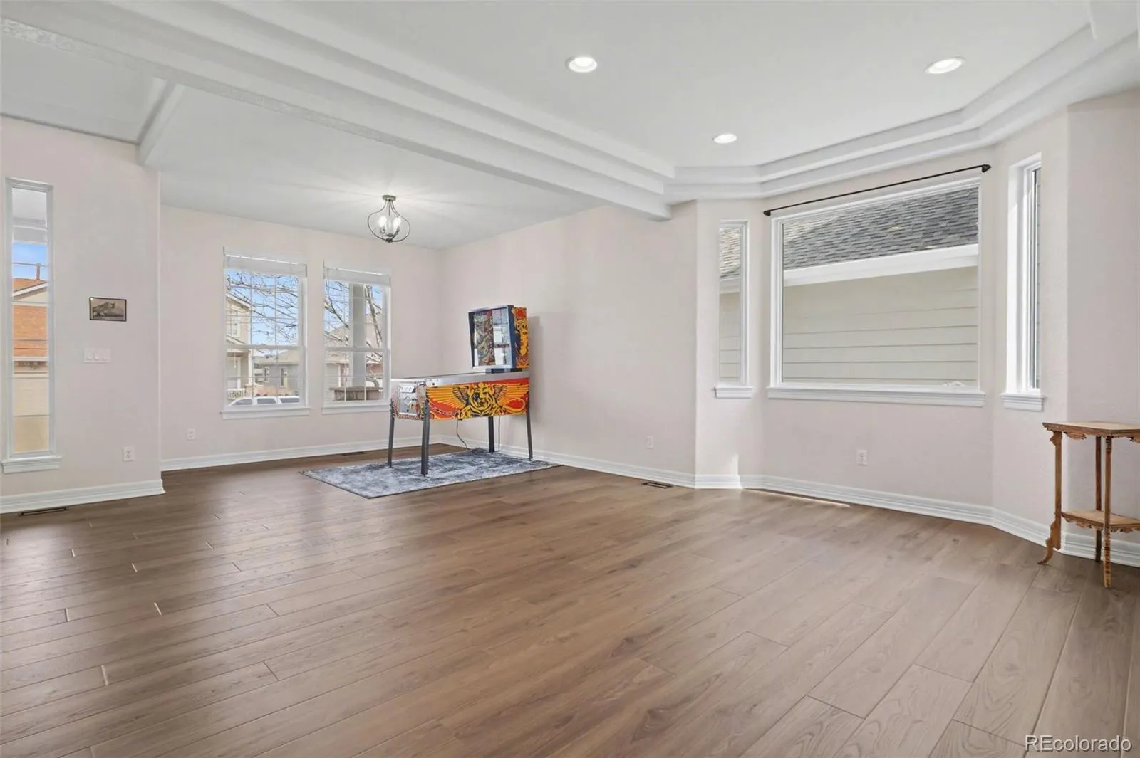 Welcome to 7006 S. Garrison, a gorgeous and meticulously maintained home in Hillside at Stony Creek. This 5 bed/4 bath home is situated in one of the most sought after communities in Littleton. Current owner has put tremendous effort and resources into bringing modern elegant finishes together with eco-consciousness. New roof with fully paid solar panels means high energy efficiency and low utility costs, new HVAC, new flooring & light fixtures throughout, all new windows and slider, new porch/pergola with ceiling fan … just to name a few of the updates! Come in the main floor entry to a large formal living room with high, coved ceilings. Flow through to the custom kitchen with modern navy cabinetry, quartz countertops, and high-end appliances including gas range, double ovens, stainless steel pkg. Large kitchen island with so much storage! Eat-in kitchen space has slider to the backyard and custom built beverage station with wine cooler, even more storage. Main floor family room boasts southern and western facing windows for lots of light. Currently installed is an electric fireplace, with option to switch back to gas if you wish. A main floor powder room, mudroom space, and door to the three car garage rounds out the main level. Head upstairs to find 4 bedrooms, including a very spacious primary suite oasis – double door entrance, freshly remodeled 5 piece en suite with large soaker tub, dual vanity, tiled shower, separate water closet and large walk-in closet. Additionally there are three other good sized bedrooms, a full bathroom, and an enclosed laundry room. Next, head down to the fully finished basement with a 5th conforming bedroom, three separate living spaces making up the open concept basement floorplan. Although listed as one recreational/media room but there are actually 3 separate spaces: a basement kitchen setup, theater setup, gym set up. Another full bathroom in basement, perfect for teenagers or guests. Oversized 3 car garage has 220V charging.