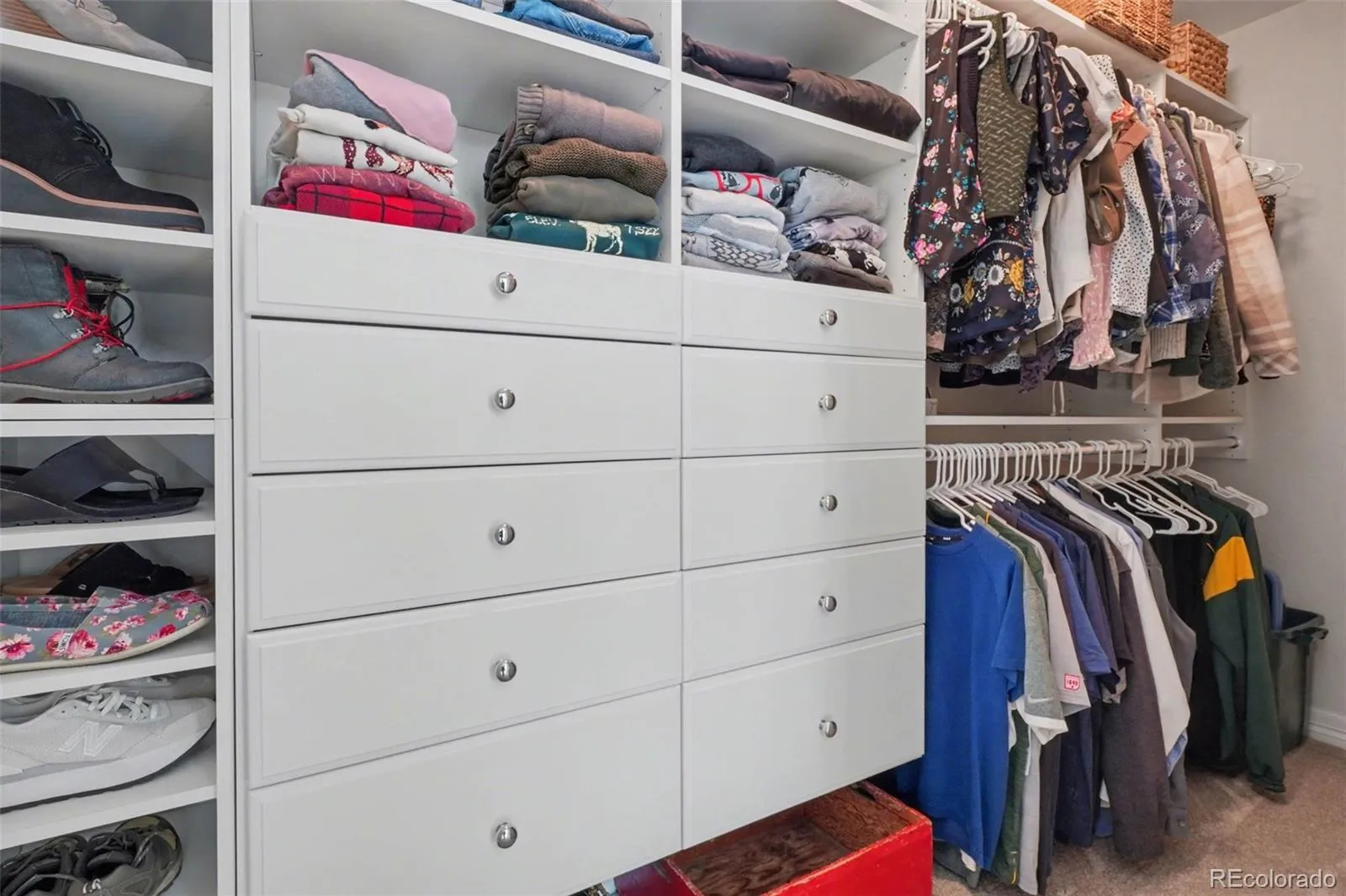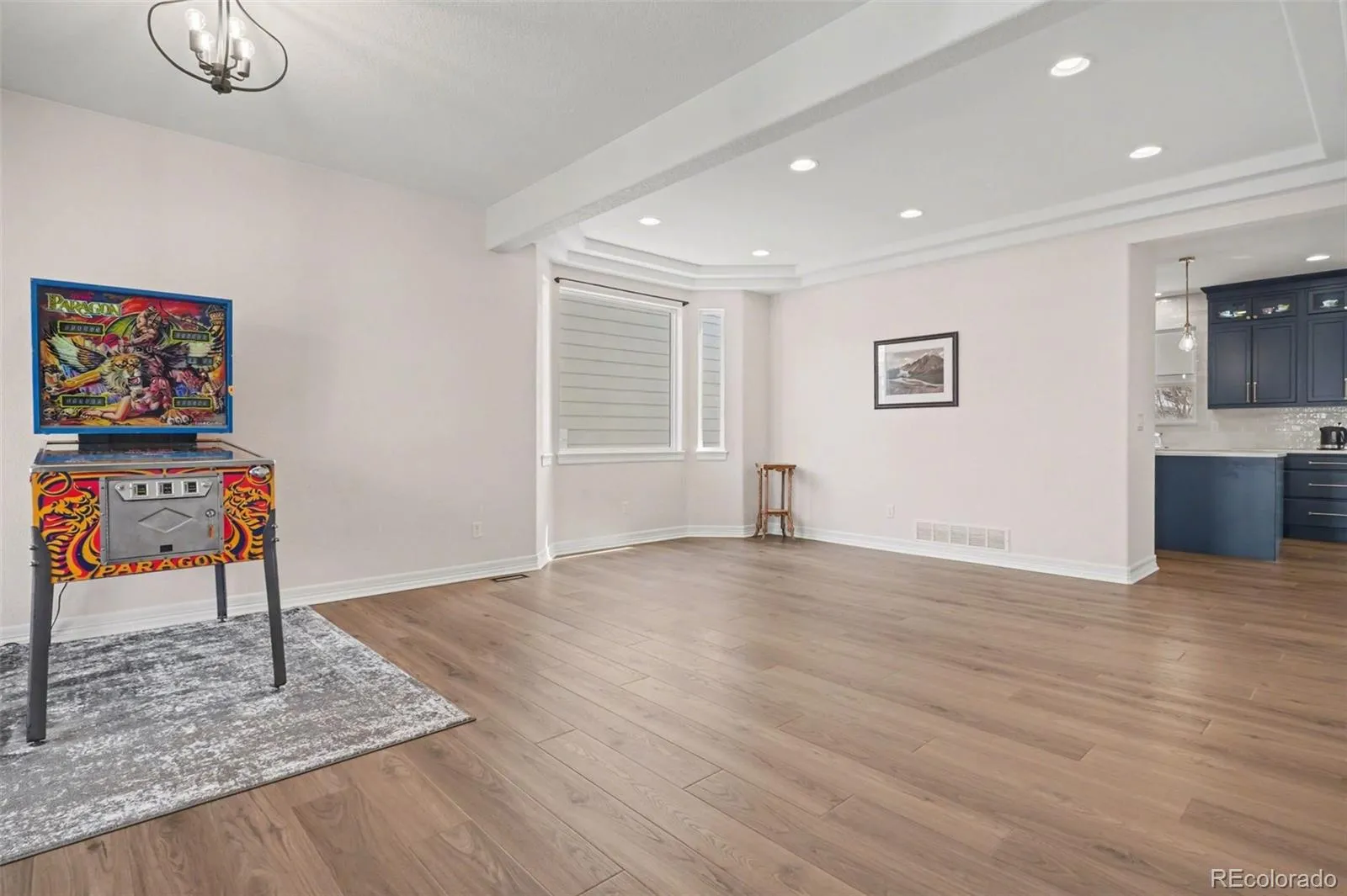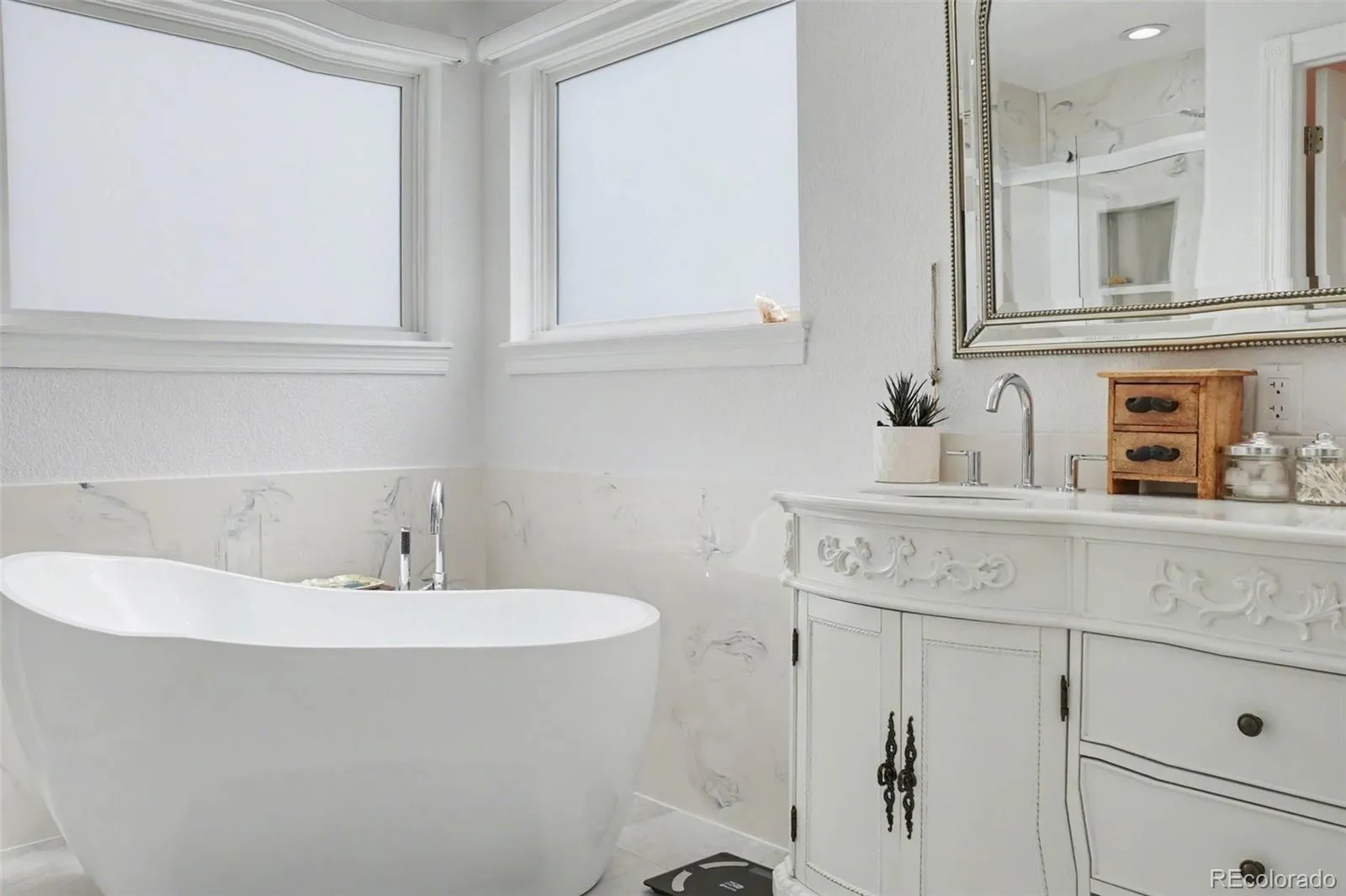 Welcome to 7006 S. Garrison, a gorgeous and meticulously maintained home in Hillside at Stony Creek. This 5 bed/4 bath home is situated in one of the most sought after communities in Littleton. Current owner has put tremendous effort and resources into bringing modern elegant finishes together with eco-consciousness. New roof with fully paid solar panels means high energy efficiency and low utility costs, new HVAC, new flooring & light fixtures throughout, all new windows and slider, new porch/pergola with ceiling fan … just to name a few of the updates! Come in the main floor entry to a large formal living room with high, coved ceilings. Flow through to the custom kitchen with modern navy cabinetry, quartz countertops, and high-end appliances including gas range, double ovens, stainless steel pkg. Large kitchen island with so much storage! Eat-in kitchen space has slider to the backyard and custom built beverage station with wine cooler, even more storage. Main floor family room boasts southern and western facing windows for lots of light. Currently installed is an electric fireplace, with option to switch back to gas if you wish. A main floor powder room, mudroom space, and door to the three car garage rounds out the main level. Head upstairs to find 4 bedrooms, including a very spacious primary suite oasis – double door entrance, freshly remodeled 5 piece en suite with large soaker tub, dual vanity, tiled shower, separate water closet and large walk-in closet. Additionally there are three other good sized bedrooms, a full bathroom, and an enclosed laundry room. Next, head down to the fully finished basement with a 5th conforming bedroom, three separate living spaces making up the open concept basement floorplan. Although listed as one recreational/media room but there are actually 3 separate spaces: a basement kitchen setup, theater setup, gym set up. Another full bathroom in basement, perfect for teenagers or guests. Oversized 3 car garage has 220V charging.