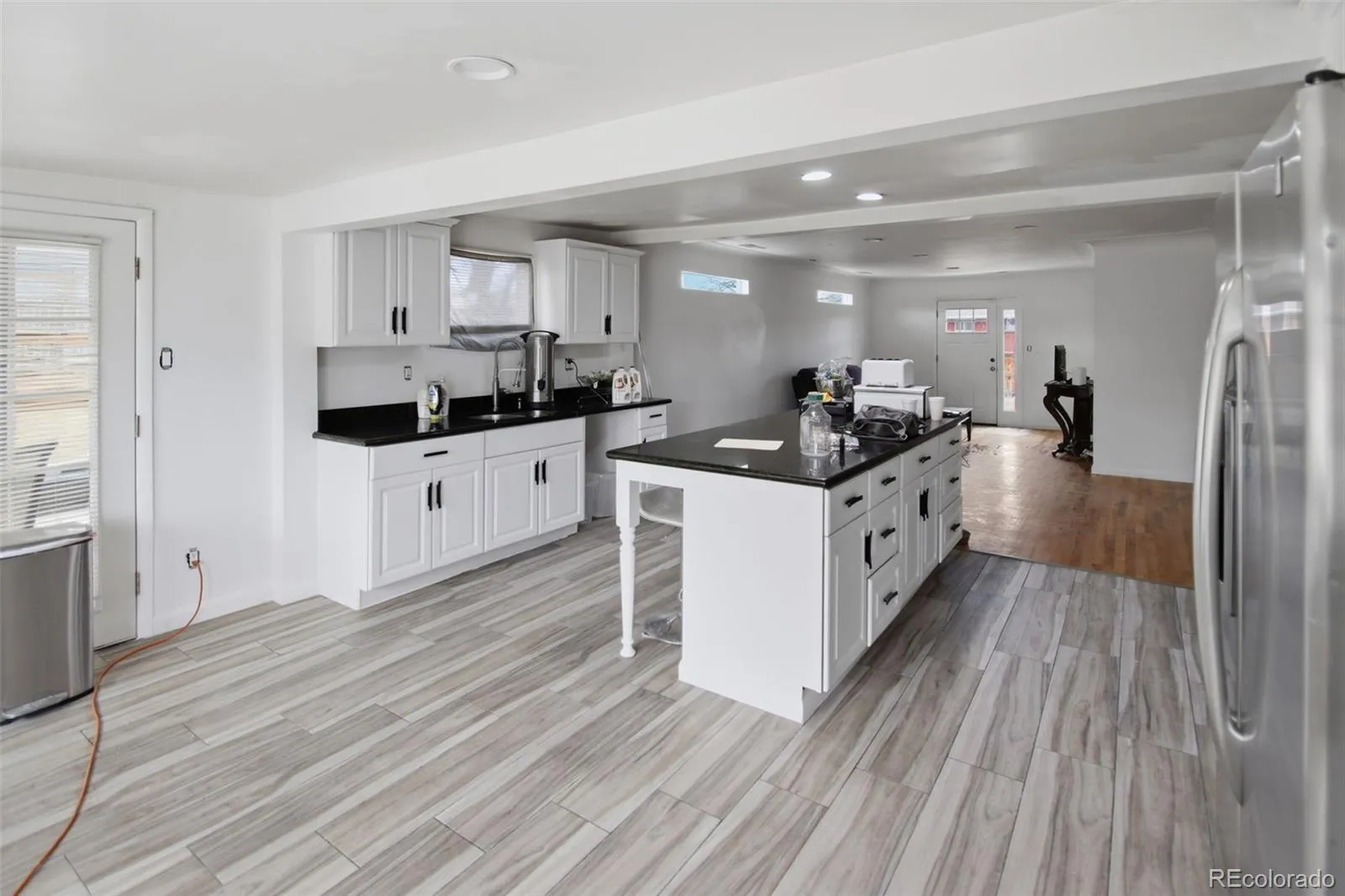 Inside, the home offers 3 bedrooms and 2 bathrooms, a spacious kitchen with island seating for easy entertaining, original wood floors, and durable porcelain tile. The layout is ready for your personal updates and customization.