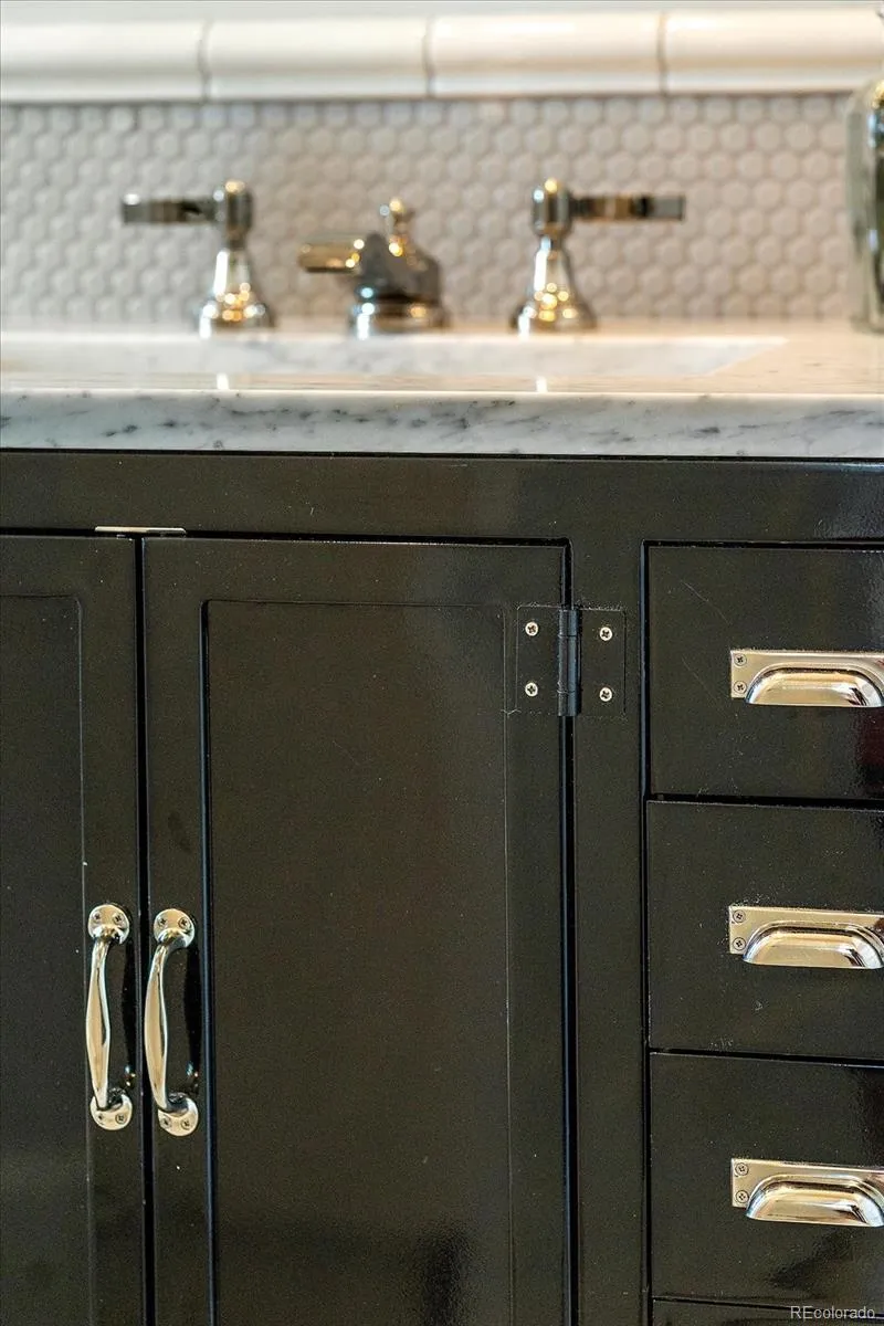 OPEN SAT 3/21 12-2:00 This stunning Olde Town Arvada bungalow has been fully renovated from top to bottom, blending historic character with thoughtful modern updates. With nine-foot ceilings, gorgeous pre-finished wood plank floors, and intricate trim throughout, every detail celebrates the home’s original charm. Natural light floods the interior through newer double-pane windows and transom windows above doorways, while an exposed brick column adds warmth and character. The designer-inspired kitchen is a showstopper, featuring ample cabinetry with pull-outs, open shelving, farm sink, under-mount and interior cabinet lighting, quartz counters extending into the laundry/mud area, a butcher block island, and high-end appliances including a Fisher & Paykel dishwasher, Dacor drawer microwave, and gas range. Light fixtures, hardware, and bath finishes are largely Restoration Hardware and were thoughtfully selected with nods to the home’s historic roots. The inviting living space boasts a gas fireplace flanked by custom built-ins with hidden outlets, perfect for media or display. The main bath offers a luxurious subway-tiled shower and custom storage including an inset medicine cabinet. A large, stand-up crawl space with a custom pulley system provides abundant storage. Step outside to a private backyard oasis with a fully sodded and sprinklered lawn, a spacious Trex deck with gazebo, Forest Cooperage cedar hot tub, garden box, and storage shed. A concrete double driveway accommodates three vehicles. Modern comforts include a high-efficiency furnace, central air, and on-demand tankless water heater. Located in a quiet, well-kept neighborhood just a block to downtown Arvada, Light Rail station, dining, shopping, wineries, and loads of local events. Proximity to Downtown Denver, Boulder, and I-70 makes this home ideal for city access or mountain getaways. Perfect as a primary residence or even as an STR, this home combines historic charm, luxury finishes & iconic location.