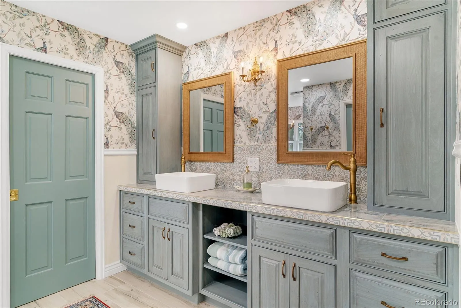 Stunning updated 2-story in prime Highlands Ranch location backing to the Grand View Trail leading to Dad Clark Park. This Richmond Chardonnay model has been meticulously updated with extremely high-end finishes. $200k+ kitchen remodel done in 2023 with completely reconfigured & expanded layout, custom cabinetry, large farmhouse sink, undercabinet & in-cabinet lighting, huge island with prep sink & bonus storage cabinets on back side, faux wood beams, wifi/smart GE Cafe appliances including a 36″ extra wide gas range + 2nd wall oven, & more. Expansive living room with newer relocated sliding patio door, hardwood floors, vaulted ceilings, newer gas fireplace, & wet bar with GE Cafe beverage fridge. Remodeled (2024) 5-piece ensuite primary bath with custom cabinetry, freestanding soaker tub, large shower with rain head, & 2 walk-in closets. All 3 second floor baths are remodeled. Remodeled laundry room with custom cabinetry. 4 bedrooms + 3 baths on 2nd floor! Main floor with remodeled 3/4 bath. Basement features a 3/4 bath, recvroom with wet bar with kegerator/bar fridge + microwave, bedroom with walk-in closet & large bonus room or 6th bedroom with 2 egress windows. New Amlin windows throughout main + 2nd floor in 2023. New A/C & furnace with AprilAire humidifier installed in 2023. Newer front door with sidelights. Newer hardwood floors on main level. Exterior was recently painted in 2024. 3-car attached garage with newer garage door on the single stall. Smart/wifi thermostat & Rachio sprinkler clock. Private back yard with large patio with gas fire pit, gas line for BBQ, & gardens with drip system. Prime location just a short walk to Summit View/Mountain Peak Elementary & Dad Clark Park. Close to Valor Christian High School, Highlands Ranch High School, Eastridge Rec Center, Highland Heritage Park & more. HOA includes access to the Highlands Ranch rec centers.