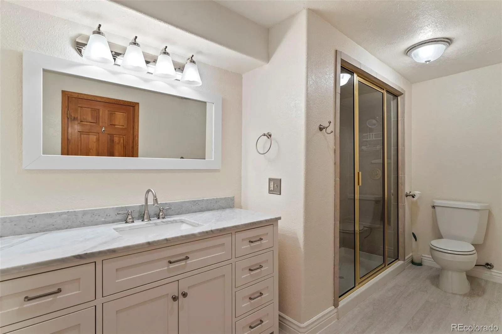 Welcome to this beautifully maintained home in the highly desirable Ridgeview neighborhood of Lone Tree, offering a main floor primary suite, outstanding curb appeal with a side-load garage, mature trees, and professional landscaping. Inside, a voluminous open floor plan highlights a two-story foyer, vaulted living room, formal dining room, and hardwood floors that flow into the kitchen and family room. The two-story family room showcases dramatic picture windows that bring the outdoors in, built-in glass cabinetry and bookcase, and an impressive brick gas fireplace. The updated kitchen features custom cabinetry with glass doors, stainless steel appliances, granite counters, and a spacious eating area framed by oversized picture windows. The main-floor primary suite is exceptionally large with a vaulted ceiling, two walk-in closets, and a remodeled bath (2022) with heated tile floors, while the main level also includes a generous laundry room with ample cabinetry, closet space, and utility sink. Upstairs are three spacious bedrooms and an updated full bath. The bright garden-level basement offers abundant natural light with a rec room, fireplace, wet bar, fifth bedroom, newly updated ¾ bath, and a versatile bonus room perfect for exercise, play, or hobbies. Updated windows throughout, stamped concrete patio with electric awning, and a beautifully landscaped, private backyard complete this home. Thoughtful recent updates include new carpet, refinished wood floors, fresh interior and exterior paint, and a brand-new driveway. All within walking distance to Eagle Ridge Elementary, Cook Creek Pool, Lone Tree Golf & Tennis Center, Bluffs Regional Park, and miles of walking paths.