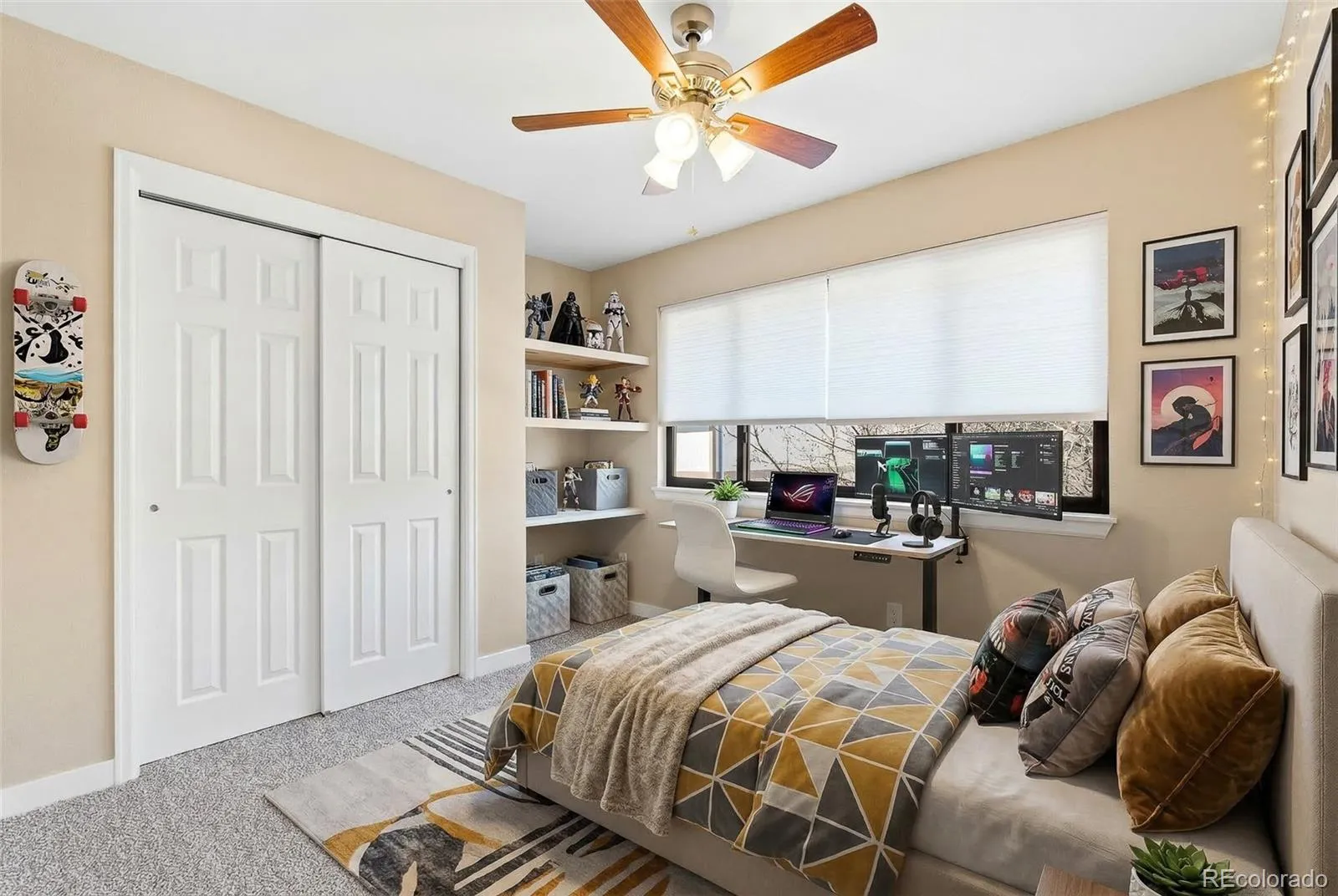 Outdoor living is easy with two patio areas—one as a dog run and the other for barbecuing. Enjoy ample parking options, including a 2-car detached garage and a designated parking spot right in front. Recent updates include interior paint, light fixtures, ceiling fans, new vanities, new carpet, new flooring in 3 bathrooms, 1-year-old SS stove, 1-year-old furnace and a/c. Amenities abound with access to a pool, clubhouse, tennis courts, basketball courts, and a playground, while nearby shopping, schools, hiking, and bike paths add to the allure. Don’t miss this rare find! Professional Photos 3/12.
