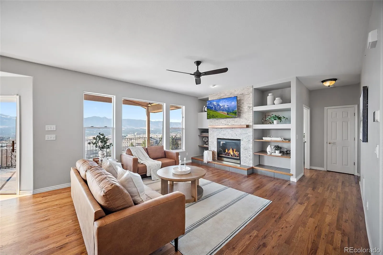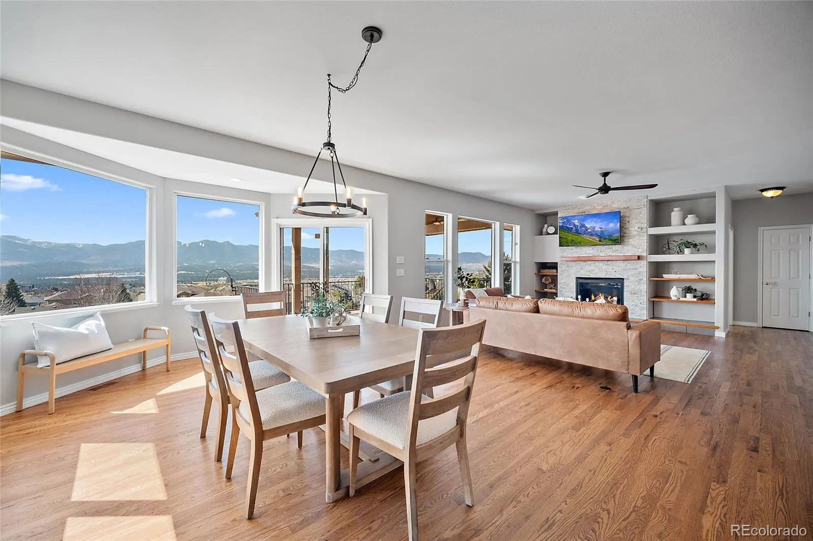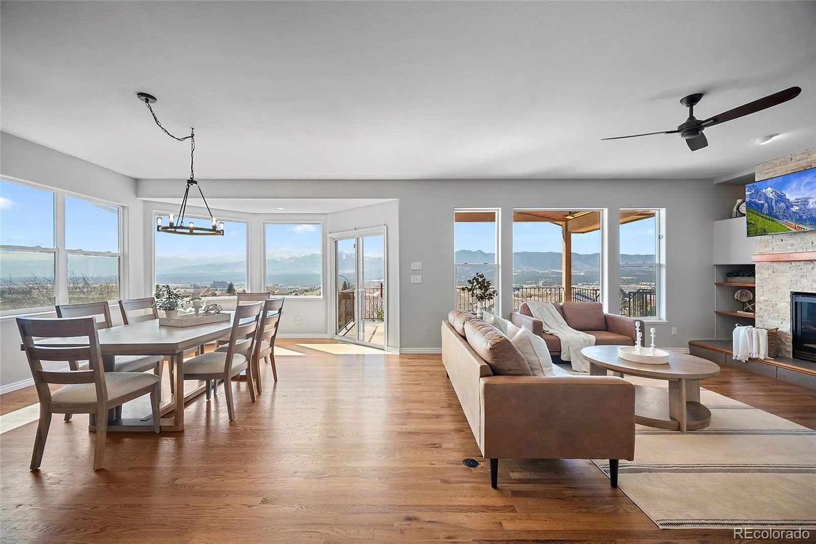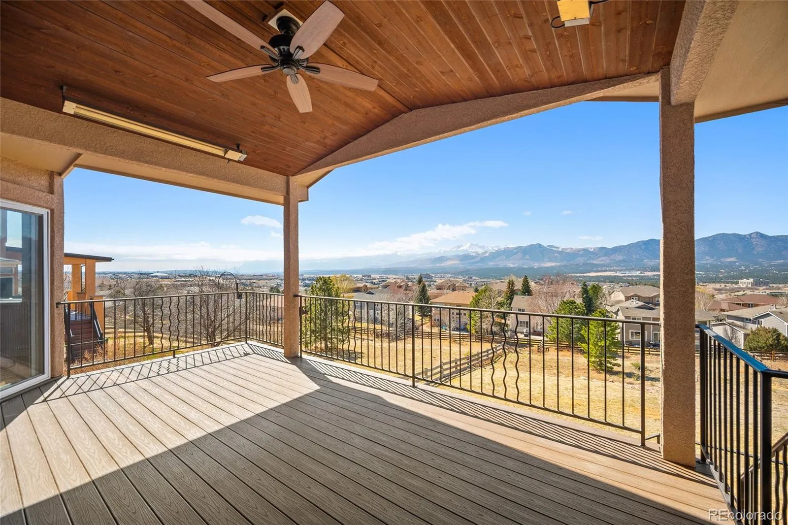 Experience some of the best views in Colorado Springs from this exceptional property set on nearly half an acre in the highly sought-after District 20 school district. From the comfort of your home, enjoy breathtaking panoramic scenery stretching from NORAD and Cheyenne Mountain to Pikes Peak and Mount Herman, with additional sightlines capturing Garden of the Gods and the U.S. Air Force Academy. This unique ranch-style home with a walk-out basement offers incredible flexibility with 5 bedrooms plus a dedicated office, multiple living spaces, and two full kitchens—perfect for multigenerational living, guests, or entertaining. The thoughtfully designed layout provides two spacious living areas and abundant natural light throughout. The basement was fully renovated in 2022, featuring new flooring and updated finishes. Major system upgrades include a new furnace, air conditioning system, and hot water heater, providing peace of mind for years to come. Outside, the home showcases a beautiful stucco exterior, a welcoming covered front porch, and a covered back patio complete with heaters, allowing you to enjoy Colorado’s incredible sunsets and mountain views year-round. With in-town convenience, nearly half an acre of space, and unmatched panoramic views, this property offers a rare opportunity to own a truly special home in Colorado Springs. This is truely one of Colorado’s Finest.