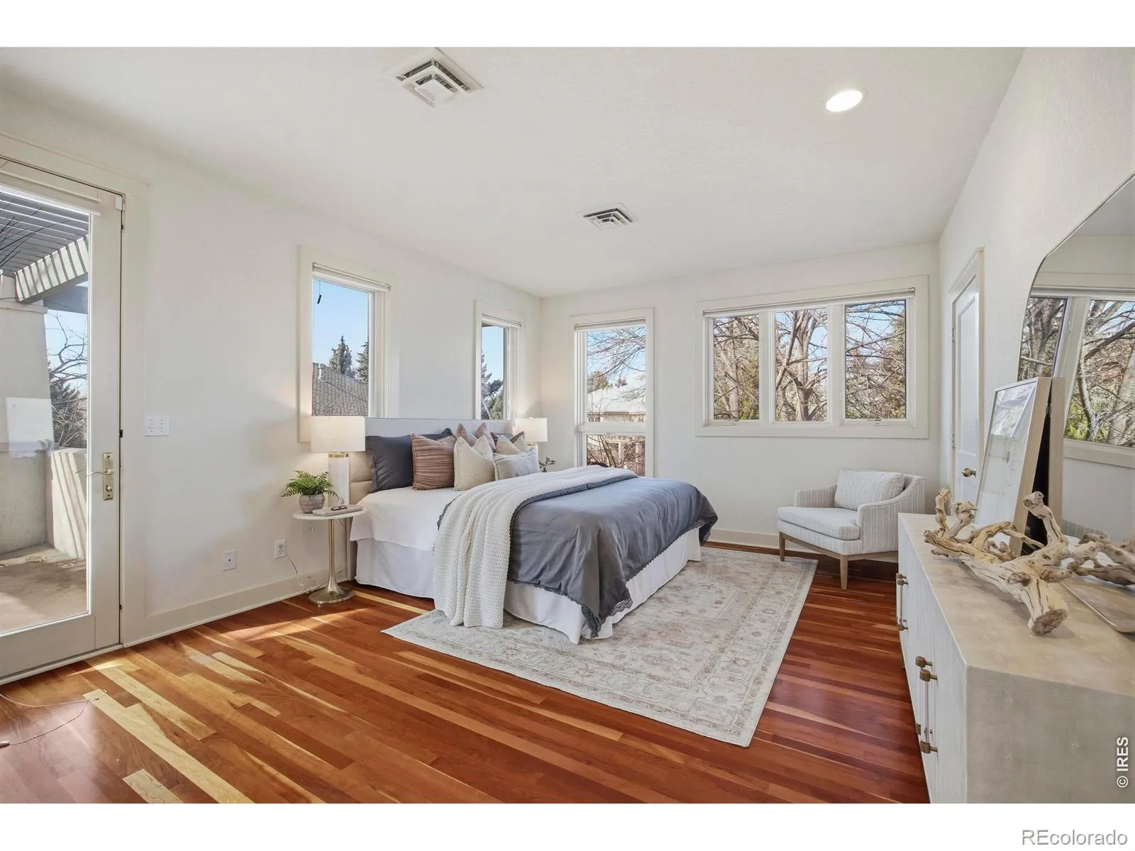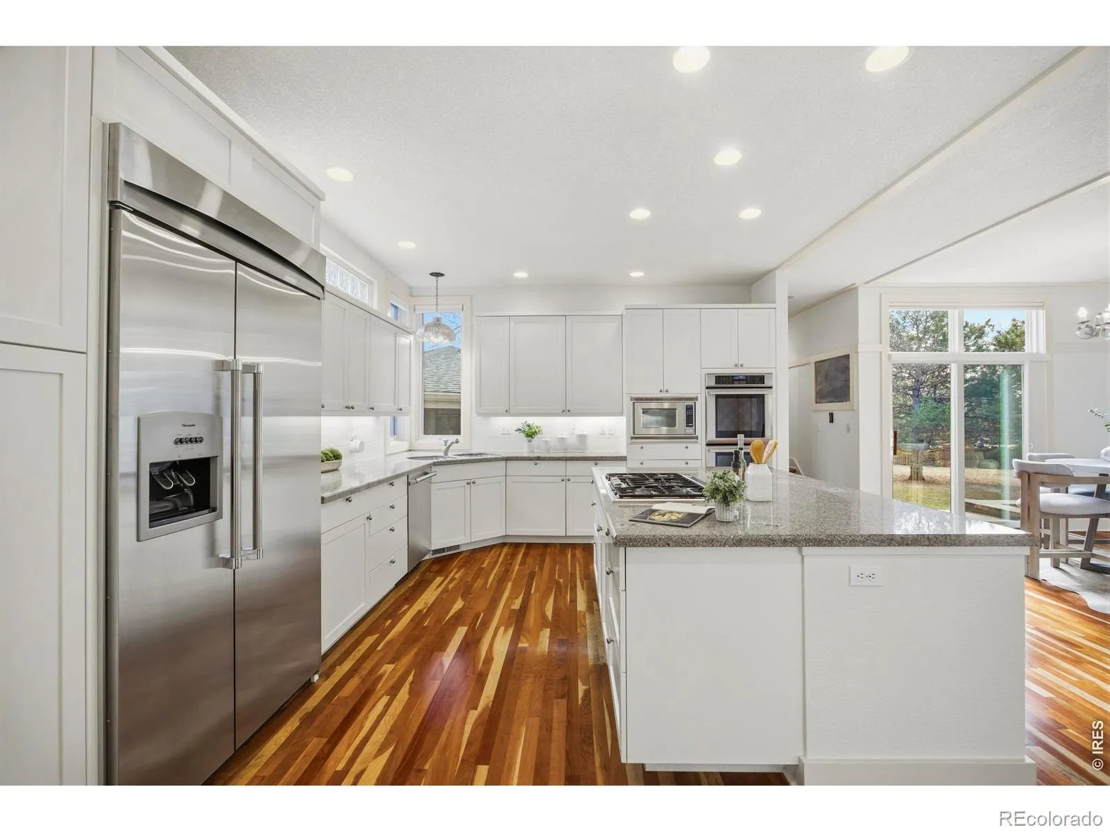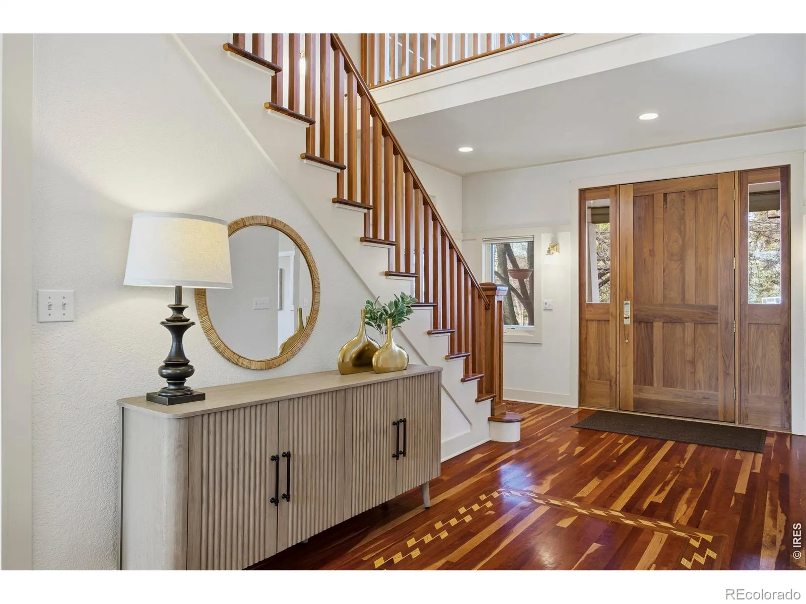 This exceptional residence blends refined craftsmanship, modern upgrades, and distinctive architectural character to create a home that is both luxurious and highly functional. Designed for comfort, efficiency, and elevated everyday living, the property includes a series of carefully curated improvements throughout.At the heart of the home, the inviting family room centers on a historic fireplace sourced from a 100-year-old Denver hotel. This rare feature brings history and character while serving as a warm focal point for gatherings or quiet evenings.Rich custom cherry hardwood floors add warmth and timeless elegance throughout. Modern conveniences include Hunter Douglas PowerView automated blinds on the main floor, a MyQ smart garage system for remote access, and a full home alarm system for added peace of mind.The remodeled primary bathroom offers a spa-like retreat with radiant heated floors for year-round comfort. Efficiency continues with tankless water heaters paired with a recirculating system that provides quick hot water access. Separate HVAC systems for the upper and lower levels allow for personalized climate control and improved energy performance.The home supports daily living and entertaining with an outdoor gas line for grilling, well-maintained landscaping supported by a drip irrigation system, and a convenient indoor and outdoor dog run.Additional upgrades include a 220V garage outlet for electric vehicle charging, a utility sink with hot and cold water, and a radon mitigation system installed in 2025.Recent improvements include tankless water heaters added in 2023, toilet replacements from 2023 through 2024, and a shower floor replacement in 2024, reflecting ongoing care and pride of ownership.With its historic details, smart-home features, and high-efficiency systems, this home offers a rare opportunity to enjoy timeless style, modern comfort, and exceptional livability.