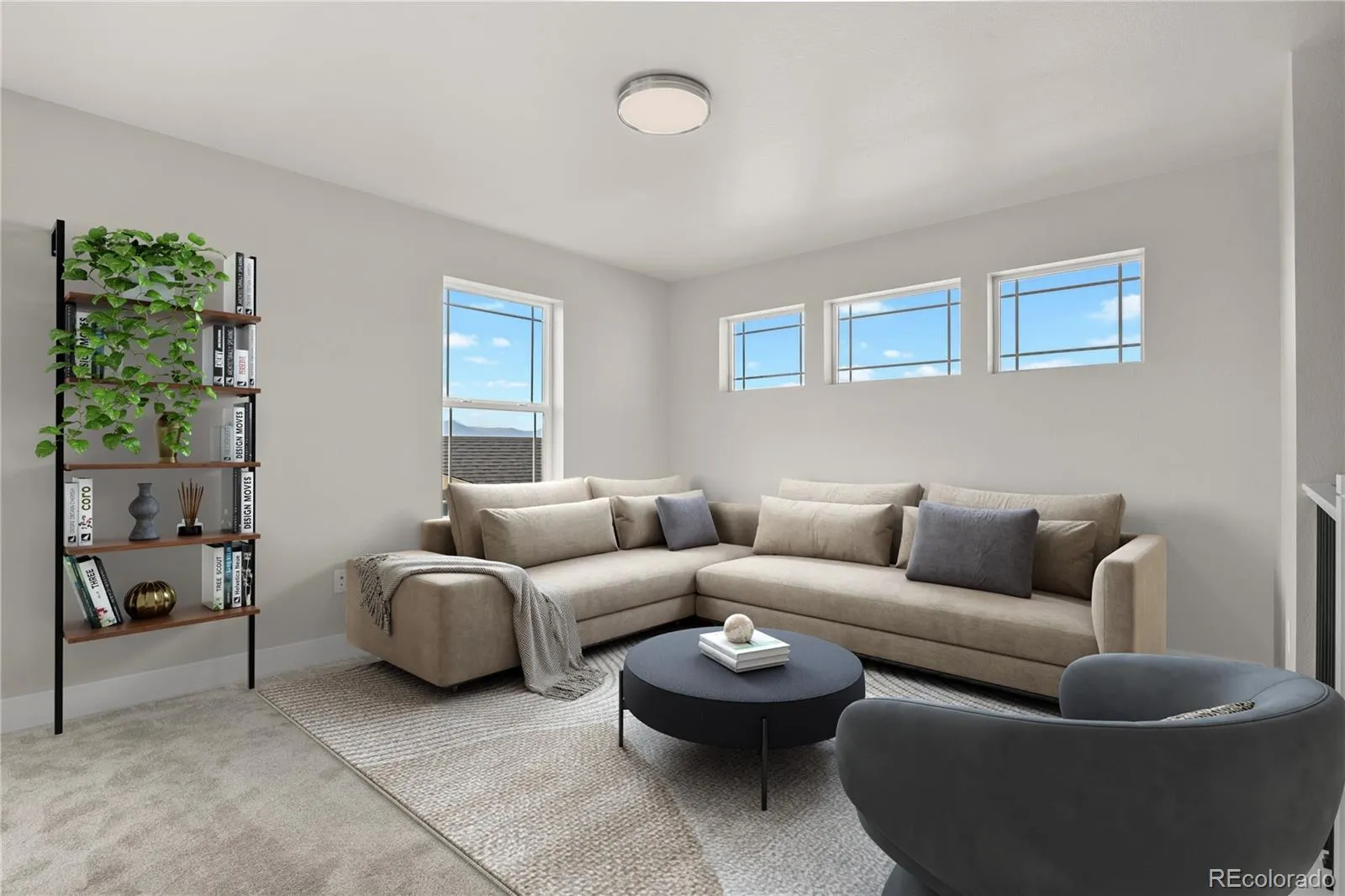 Modern design, generous living space, and quality finishes come together in this new construction home in the highly desirable Cordera community. Offering over 3,100 square feet of living space with 5 bedrooms and 4 bathrooms, the layout is designed to provide both comfortable living and flexible space for guests or entertaining. The main level features LVP flooring throughout and a welcoming great room with soaring ceilings and an expansive electric fireplace. The kitchen is well-appointed with quartz countertops, a center island, crown moulding, wall oven, gas cooktop, and pantry, opening seamlessly to the dining area with walk-out access to the yard. A main-level bedroom and full bath add versatility for guests or office space. Upstairs, the primary suite offers a spacious retreat with a five-piece bath finished with quartz counters, soaking tub, and stand alone shower with bench and a walk-in closet. A loft creates additional living space, while two additional bedrooms and convenient upper-level laundry complete the floor. The finished basement expands the home with a spacious family room, fifth bedroom, and full bath. Outside, the landscaped yard and 3-car tandem garage add convenience, all within Cordera’s established neighborhood known for its parks, trails, and community amenities!