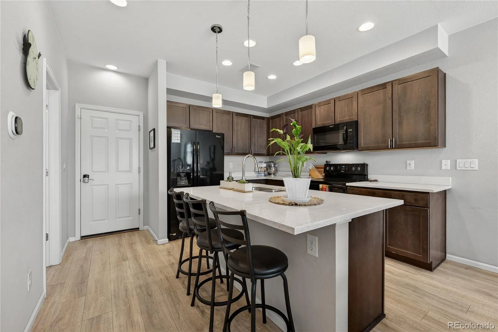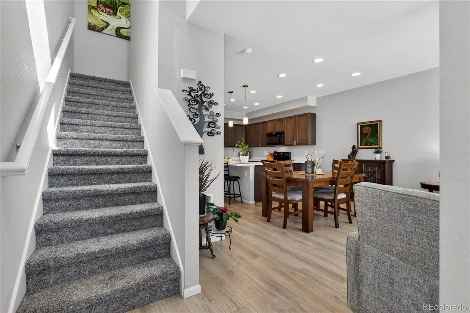 Experience modern, low-maintenance living in this stunning townhome in Denver’s vibrant Avion community. Perfectly positioned facing an open green space, this home offers a sense of privacy and tranquility rarely found in townhome living. Inside, the main level features a large, sun-drenched open floor plan. The inviting living room, anchored by a cozy gas fireplace, flows seamlessly into the dining area and a gourmet kitchen boasting beautiful cabinetry, stainless appliances, and a central island with seating. A convenient half-bath and direct access to the attached two-car garage complete the main floor. Upstairs, the expansive primary suite serves as a private retreat, featuring a spa-like en-suite three quarter bathroom and a massive walk-in closet. Two additional bright bedrooms, a full bathroom, and a laundry closet are also located on this level for maximum convenience. This move-in-ready home offers peace of mind with newer carpet and a newer roof. The Avion community provides an exceptional lifestyle with amenities including a clubhouse, pool, parks, and playgrounds. Located with easy access to incredible shopping, dining, and a quick commute to DIA, this home is perfectly situated for work and play.