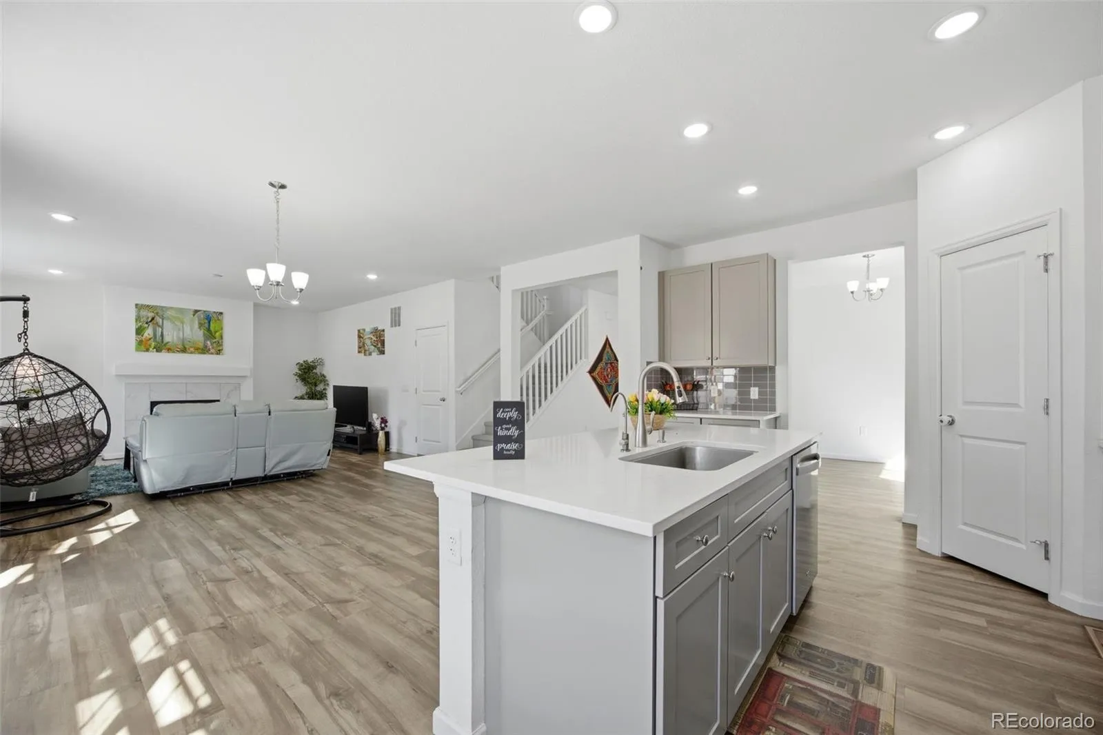 The upper level serves as a private sanctuary, anchored by an expansive versatile loft and a convenient laundry room. The lavish primary suite stands out with its substantial walk-in closet and a deluxe ensuite bath featuring dual vanities and a walk-in shower. Three additional well-appointed bedrooms complete this thoughtfully designed home. Step outside to a professionally developed backyard, expertly designed as a private oasis for outdoor living and relaxation. Whether hosting a summer gathering or enjoying a quiet evening.