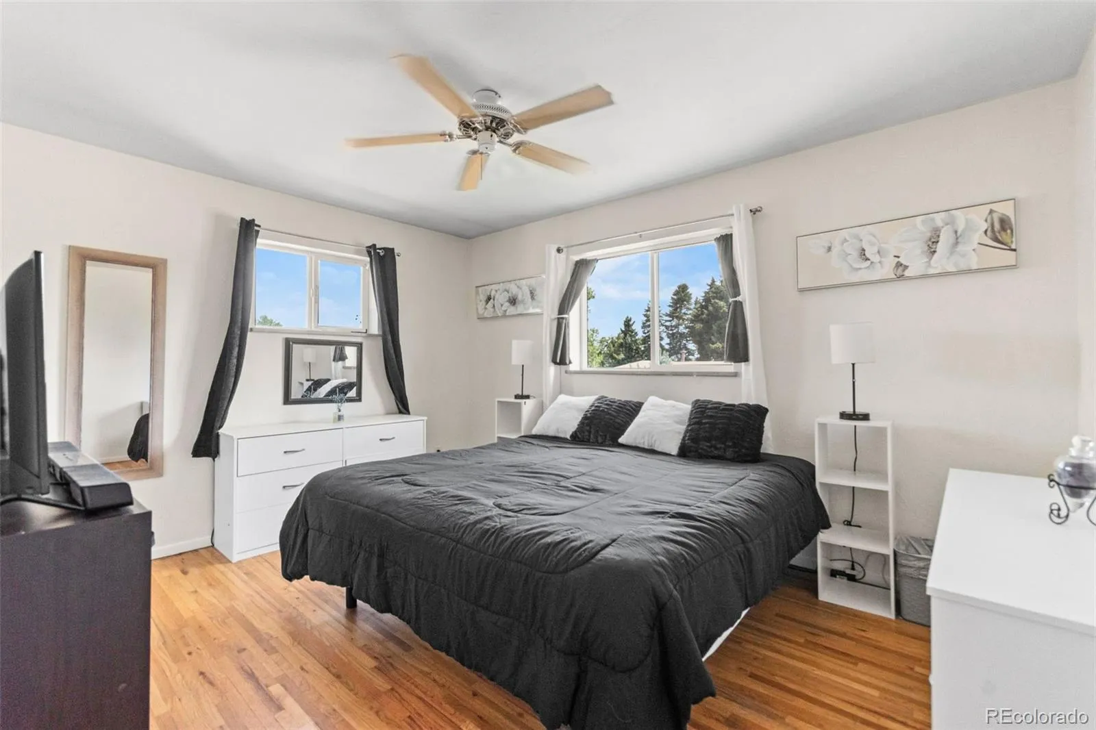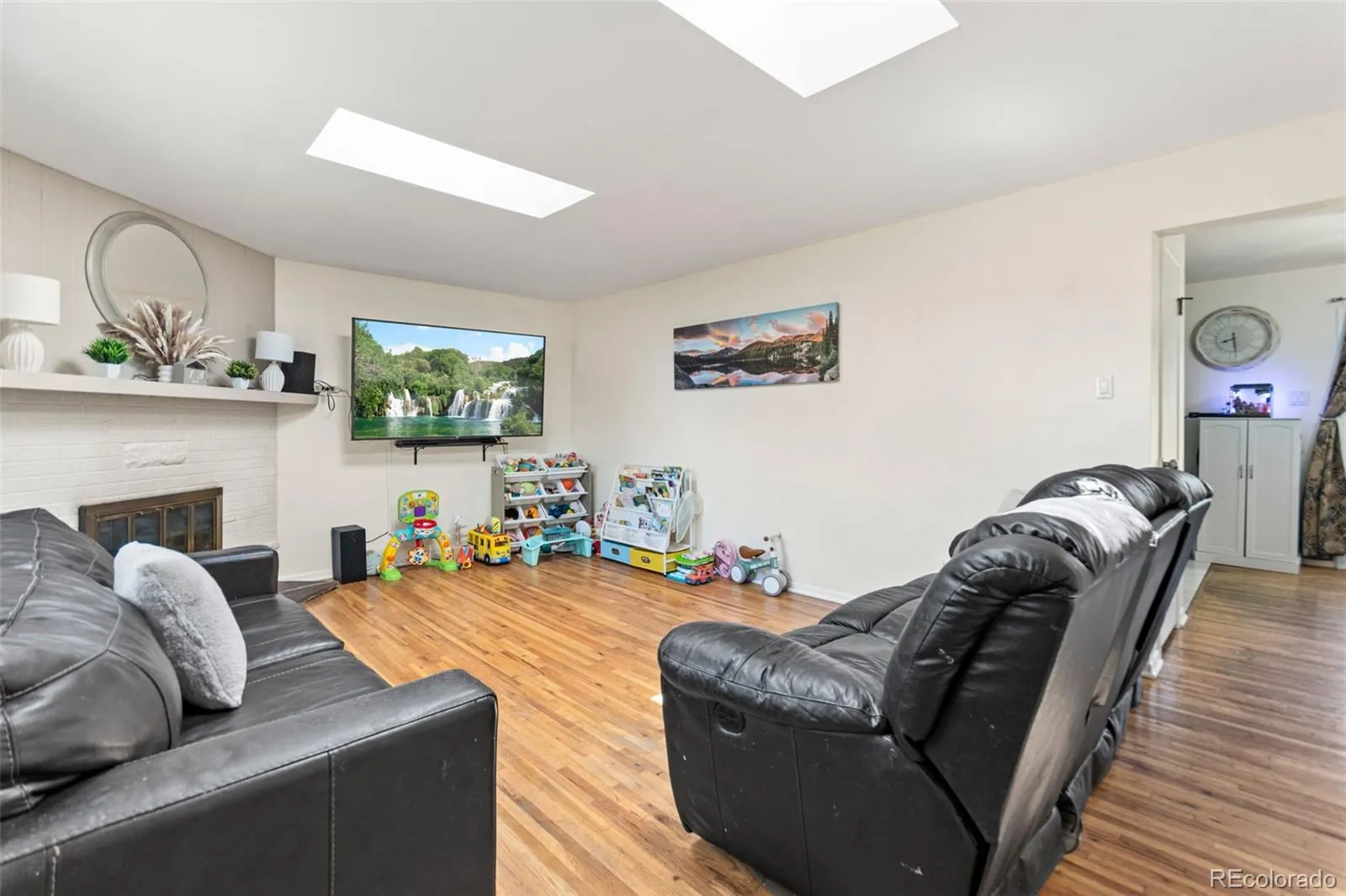 WELCOME HOME!!! Updated corner lot ranch with finished basement in Centennial Acres. This charming residence offers the perfect blend of comfort and functionality. The main level living room features a fireplace for our cool Colorado evenings as well as a bay window. The thoughtfully designed kitchen features ample cabinet/counter space, gas cooktop, stone backsplash and a seamless flow into the dining area. The main level has three spacious bedrooms and a full bathroom. The fully finished basement has a secondary living room/bonus room with another fireplace, fourth bedroom and another bathroom with a shower. Other features of this wonderful home are: wood flooring throughout, ceiling fans, tile, newer roof, newer paint, evaporative cooler, sliding glass door with doggie door, as well as PAID OFF SOLAR SYSTEM. Escape to the huge private backyard with plenty of mature shade trees, front and back sprinkles and a storage shed. The space is perfect for summer barbecues, gardening, or simply unwinding after a long day. Nestled in a family friendly neighborhood on a quiet street with mature landscaping, this home is just minutes from local parks, schools, restaurants, and easy access to major highways and downtown Denver. Whether you’re a first-time buyer or looking to downsize, this move-in ready gem is not to be missed.