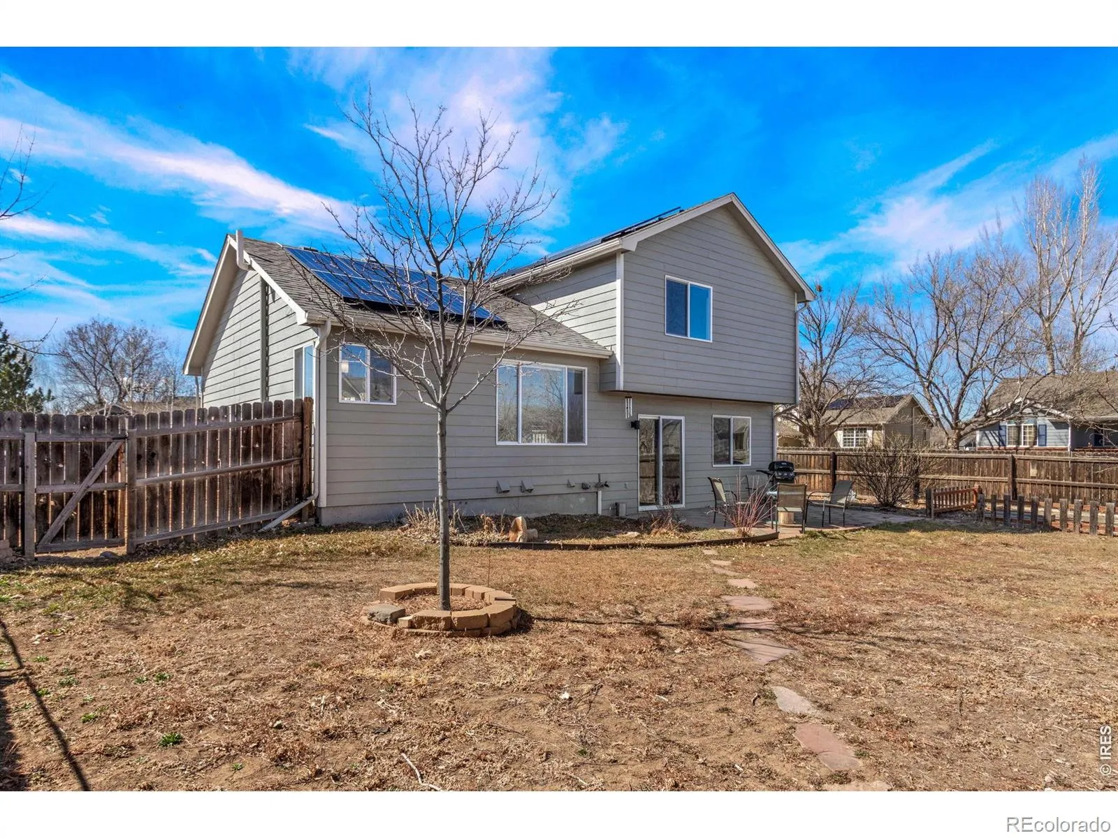 Welcome to 1414 Cranberry Court: Where Sustainable Living Meets Classic Fort Collins Charm. Nestled on a prime corner lot in a peaceful North Fort Collins neighborhood, this beautifully maintained 3-bedroom, 3-bathroom home offers a rare blend of modern efficiency and timeless character. From the moment you step inside, you are greeted by stunning hickory hardwood floors that flow seamlessly across the main and upper levels, providing a sense of warmth and natural elegance. The updated kitchen is designed for both form and function. Featuring contemporary finishes, high-quality stainless steel appliances, and a layout that maximizes workspace. Open to the dining area and living room it’s an ideal setting for quiet morning coffees or hosting lively dinner parties. The home’s intuitive tri-level architecture creates a perfect separation of space, allowing for distinct areas to work, play, and relax. On the lower level, a cozy family room anchored by a stone fireplace serves as the ultimate retreat during Colorado winters. A standout feature of this property is its commitment to sustainability. Equipped with paid off Tesla solar panels, the home offers significant energy efficiency and long-term utility savings. The attached garage further supports a green lifestyle with a dedicated 220V outlet for convenient electric vehicle charging. Outdoor enthusiasts will find their sanctuary just steps from the front door. Located less than a block from the expansive Greenbriar Park, you have instant access to over 20 acres of open turf, sports fields, walking paths, and a playground. When you’re ready for the vibrant energy of the city, you are only 7 minutes from the iconic shops, breweries, and cultural events of Old Town Fort Collins, or a easy 14-minute bike ride away. 1414 Cranberry Ct is more than just a house-it is an invitation to experience the very best of the Northern Colorado lifestyle.