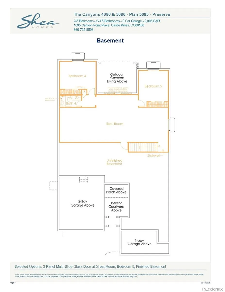 Gorgeous one story home with walk out basement in the Canyons. This home features 5 bedrooms, 4.5 bathrooms, study, finished basement, fireplace with full height tile surround, covered deck, and 3-bay split garage with storage. Design finishes include Shaw COREtec luxury plank flooring in Miles Oak, AZT/DT engineered stone counter tops in Pencil Vein, and Aristokraft Decatur Purestyle cabinets in White and Burlap. Please contact a community representative for complete details. The Canyons Metropolitan Districts provide various services to the property and in addition to the estimated taxes, a $30 per month operations fee is imposed.