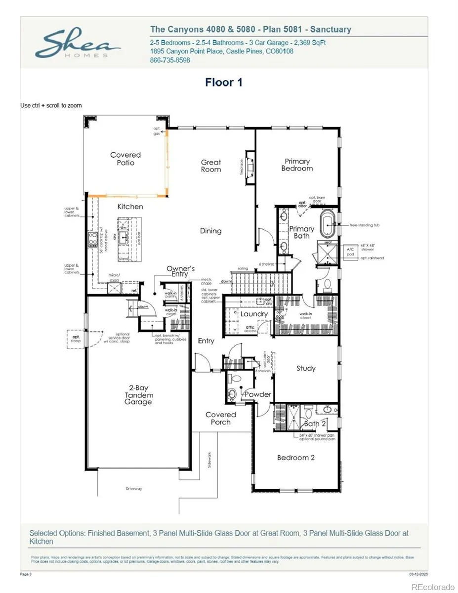 Gorgeous one story home with walk out basement in the Canyons. This home features 3 bedrooms, 3.5 bathrooms, study, finished basement, fireplace with full height tile surround, covered deck, and 2-bay garage with storage. Design finishes include Tri West luxury plank flooring in Hummingbird, AZT/DT engineered stone counter tops in Calacatta Jubilee, and Aristokraft Brellin Purestyle cabinets in White and Flagstone. Please contact a community representative for complete details.