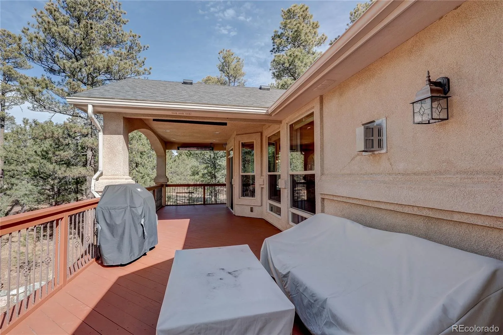 Smile, You’re Home! Secluded on a beautiful 5 acre wooded lot, you’ll feel right at home living in nature, surrounded by wildlife. This beautiful ranch style home offers an open floor plan filled with light, central gourmet kitchen, stunning stone fireplace, vaulted ceilings and hardwood flooring. The main level also offers a formal dining room, private home office, large master suite with 5 piece bath, and main level laundry/mud room. The expansive deck off the kitchen offers plenty of space to relax, BBQ and entertain with cozy outdoor infrared heaters, it’s perfect in all types of weather. In the finished walkout basement you’ll find a huge family room/entertaining area with beautiful wet bar, high ceilings, cozy wood burning fireplace, media room and 2 bedrooms + full bath. Additional features include; split HVAC system, 2 hot water heaters, wired for a generator, relaxing sauna, fire wise community and new blacktop driveway – Come see for yourself all the wonderful features of this home~
