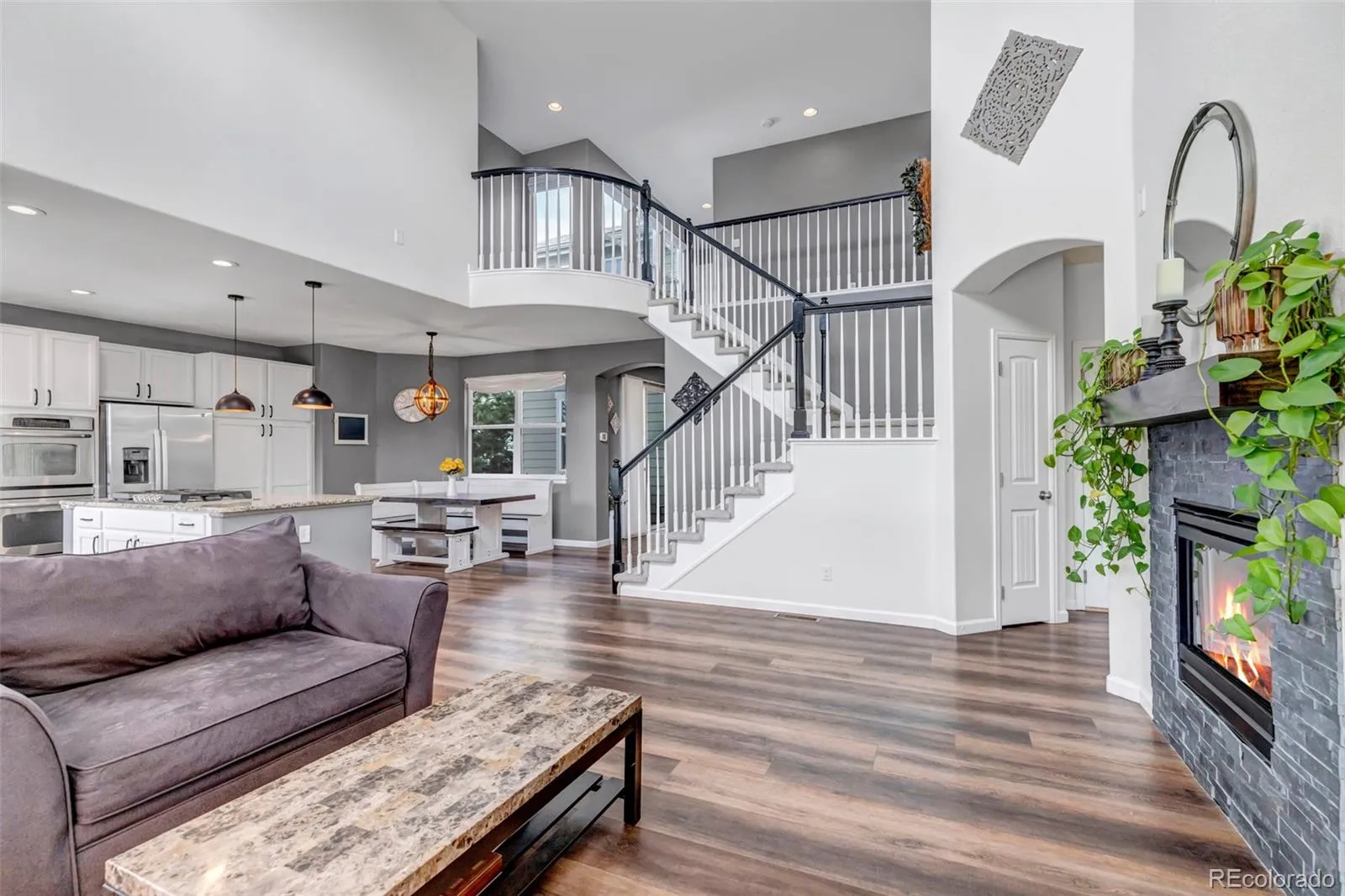 Space to breathe. Room to live. A home that keeps giving. Tucked into the coveted Tallyn’s Reach community in Aurora, this 6-bedroom, 5-bathroom contemporary offers 4,414 square feet of finished living — with room for every chapter of your life unfolding at once. The main level sets the tone immediately: soaring ceilings, an open floor plan, and a large kitchen designed to enjoy togetherness. Think granite counters, double ovens, a gas cooktop, and kitchen island — all anchored by hardwood-look laminate floors that carry through to the living room, where a gas fireplace adds warmth without the work. A main-level bedroom and ¾ bath offer flexibility for guests or multigenerational living. Upstairs, four bedrooms surround a primary suite with five-piece bath and walk-in closet that earns its name, plus a laundry room and additional 3/4 bathroom. Three full baths mean morning routines don’t require diplomacy. The finished basement is the home’s open secret — a wet bar, bar fridge, billiard space, workout area, surround sound, additional bedroom, and full bath make it the kind of lower level you use and love. Shuffleboard, surround sound system, and pool table included. Outside, the covered patio with fire pit, spa/hot tub, dog run, and fully fenced 0.23-acre yard deliver a backyard worth staying home for. The 3-car tandem garage is wired for 220V and drywalled. The memories are yours to make. Zoned for Cherry Creek schools — Coyote Hills, Fox Ridge, and Cherokee Trail. HOA amenities include a pool, clubhouse, tennis courts, parks, and trails. OPEN HOUSE SATURDAY, MARCH 14, 12–2 PM. List price $839,900.