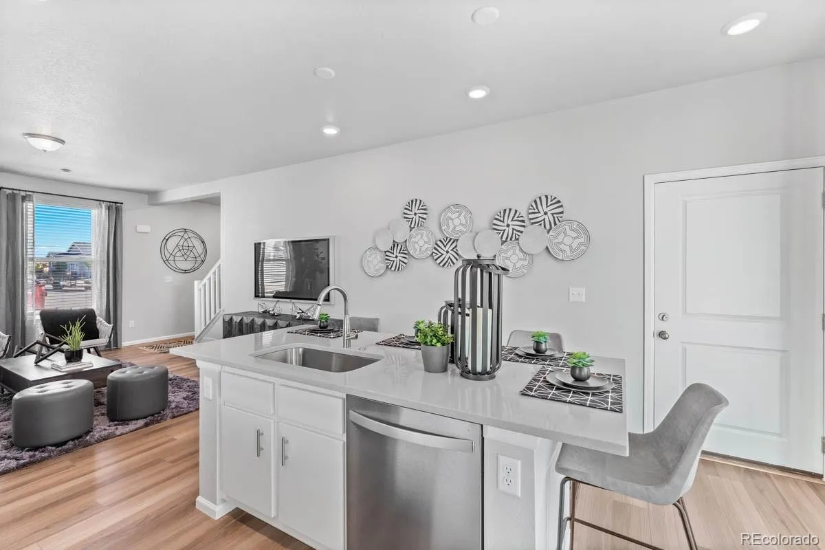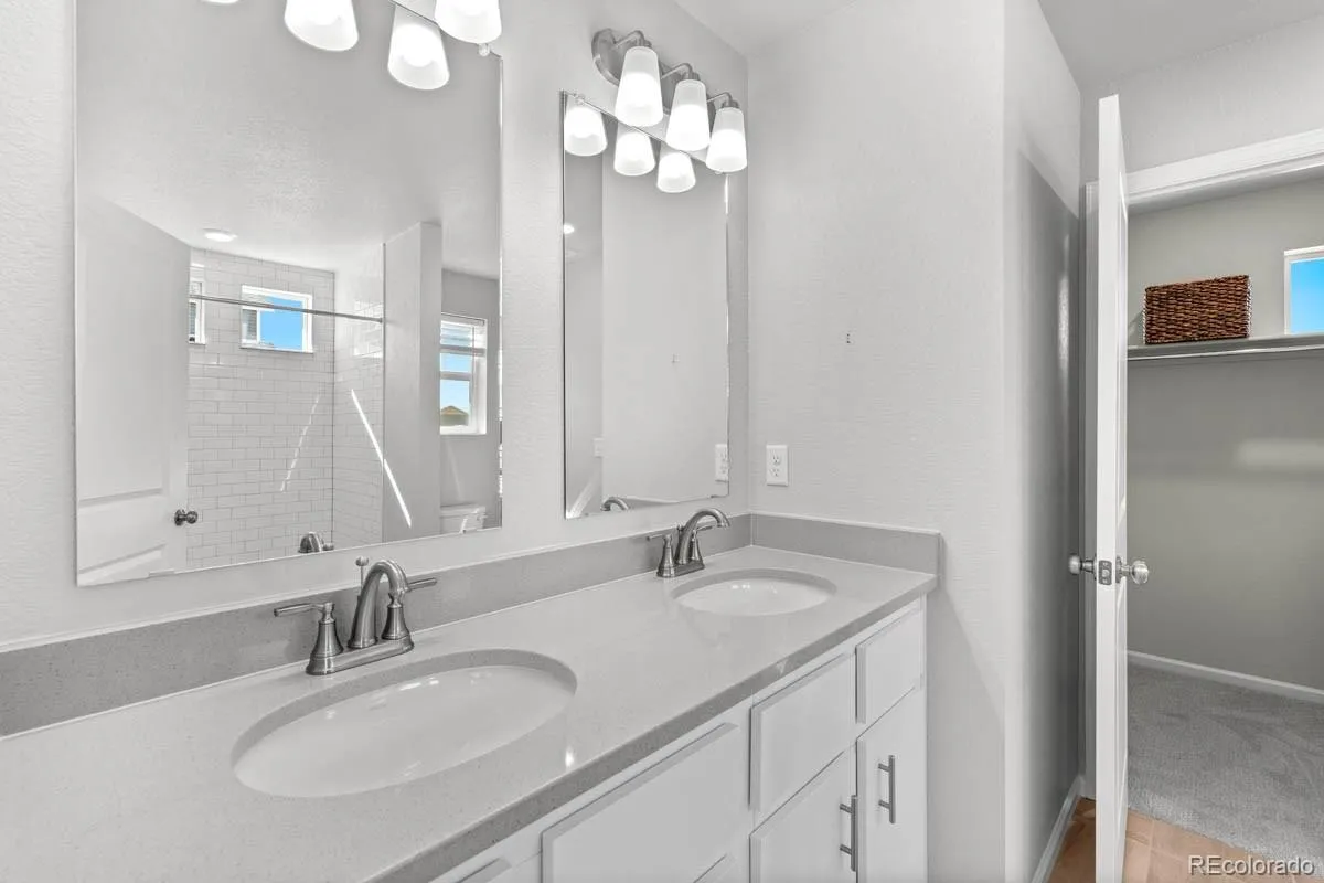 The Shire, modern living in Reunion: This 1,464 sq. ft. two-story home offers 3 bedrooms, 2.5 bathrooms, and a 2-car garage with an open-concept layout designed for everyday living. The bright kitchen features an eat-in island, stainless steel appliances, a walk-in pantry, and abundant natural light. Upstairs, the primary suite includes a dual-sink vanity, walk-in shower, and spacious walk-in closet, while two additional bedrooms share a Jack-and-Jill bath. An upstairs laundry room adds convenience. Outside, relax in the fenced yard with an expanded concrete patio, plus extra storage in the two-car garage. Actual home may differ from artist renderings or photos. Residents enjoy Reunion’s parks, lakes, trails, rec center, pools, top-rated schools, nearby golf, and the award-winning Reunion Coffee House.