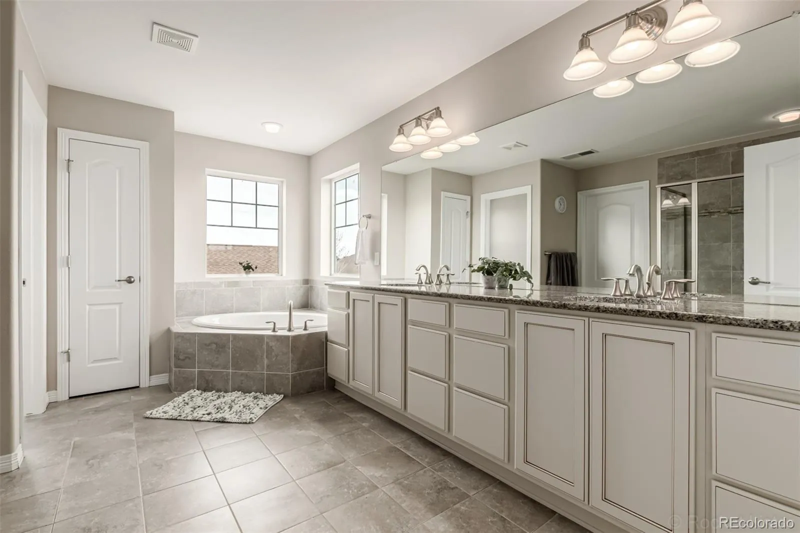 There are 4 spacious bedrooms upstairs plus the laundry room (with a utility sink). 2 of the bedrooms share a jack-n-jill bath (and this one is great because there are separate sinks for each bedroom, and then the shower/tub toilet is in a room in between… making the mornings and bedtime so much more convenient!) The other secondary bedroom upstairs has it’s own ensuite bathroom and a huge walk-in closet. And the primary bedroom is spacious, has a great ensuite 5 pc bathroom with a big soaker tub, a linen closet, and plenty of counter space. The primary bathroom conveniently connects to the laundry room through the large walk-in closet.