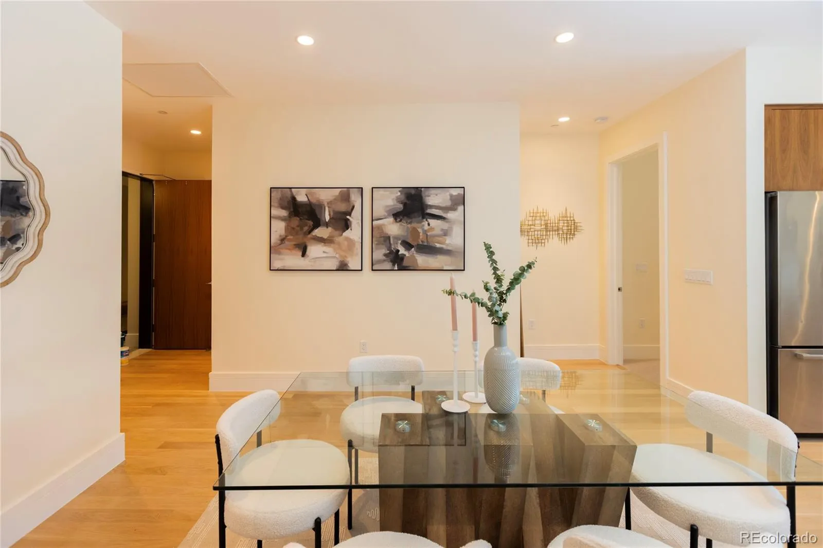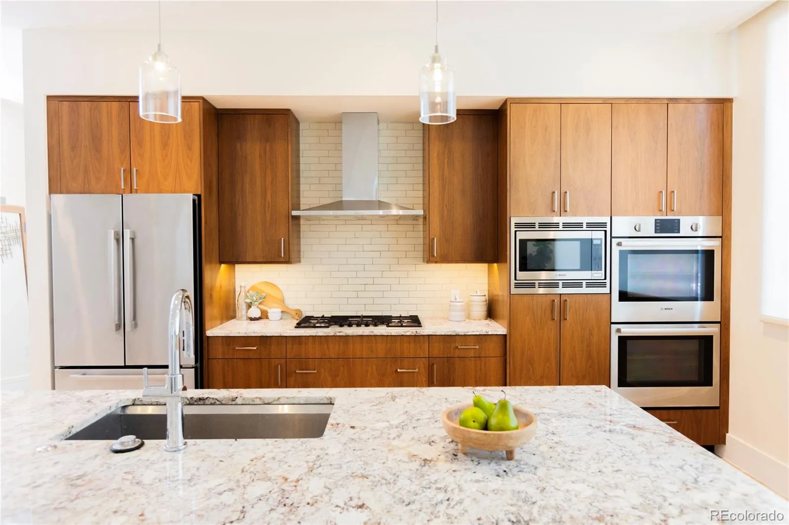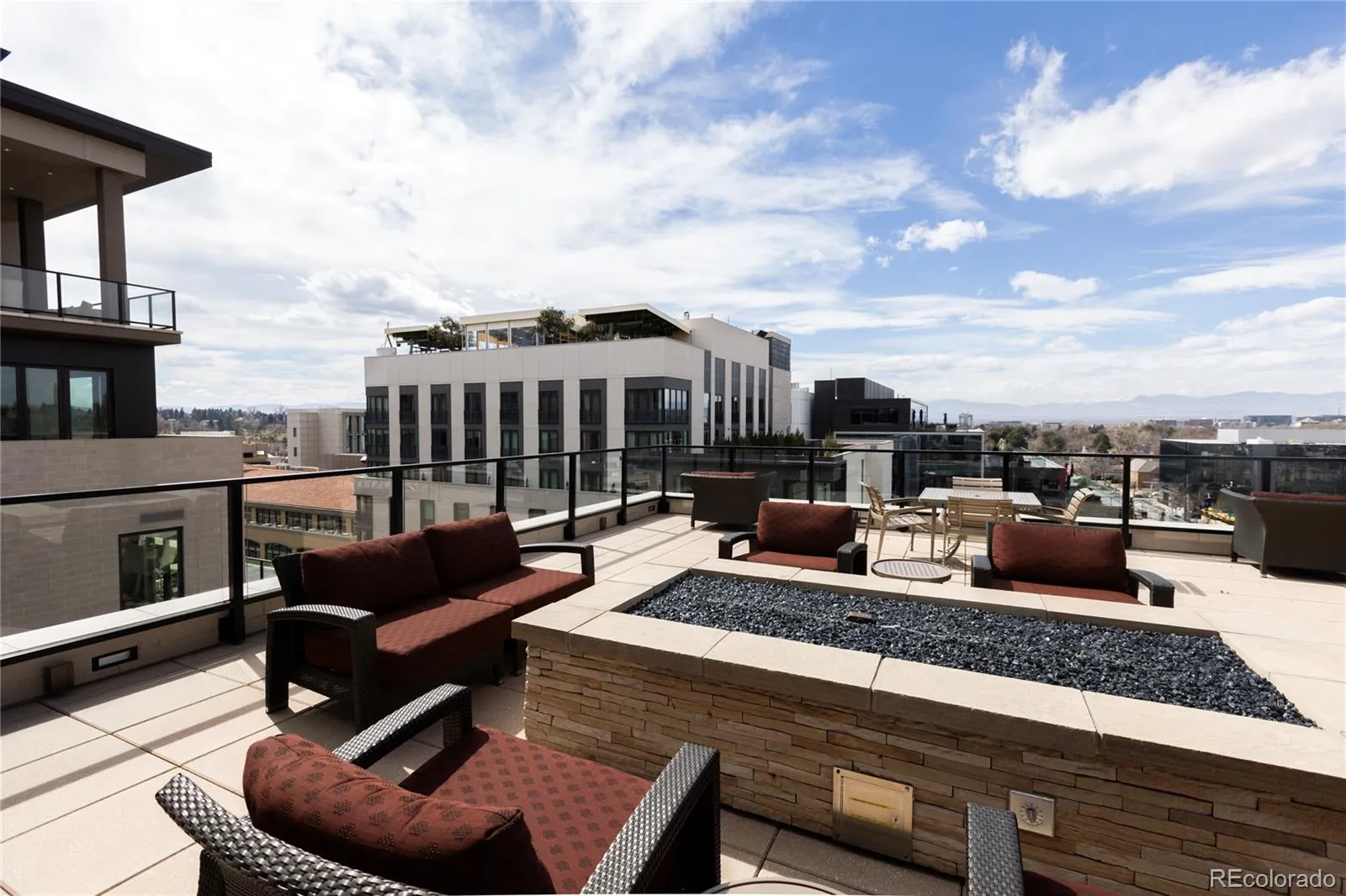 A rare corner unit is available on the third floor of 250 Columbine. It features an open floor plan with great light and a wraparound patio. The kitchen has a great kitchen island and dual ovens for entertaining. The doors to the patio can be completely folded out of the way to create a unified indoor / outdoor space. The inside features a gas fireplace and the patio is perfect for grilling with a natural gas line already installed. The building features a bike room, a fitness center, and a roof deck with great views of the mountains, a hot tub, shaded grilling area, and lots of seating. This is an amazing space in an amazing location! The unit comes with 2 spaced in a secured garage and a storage unit.