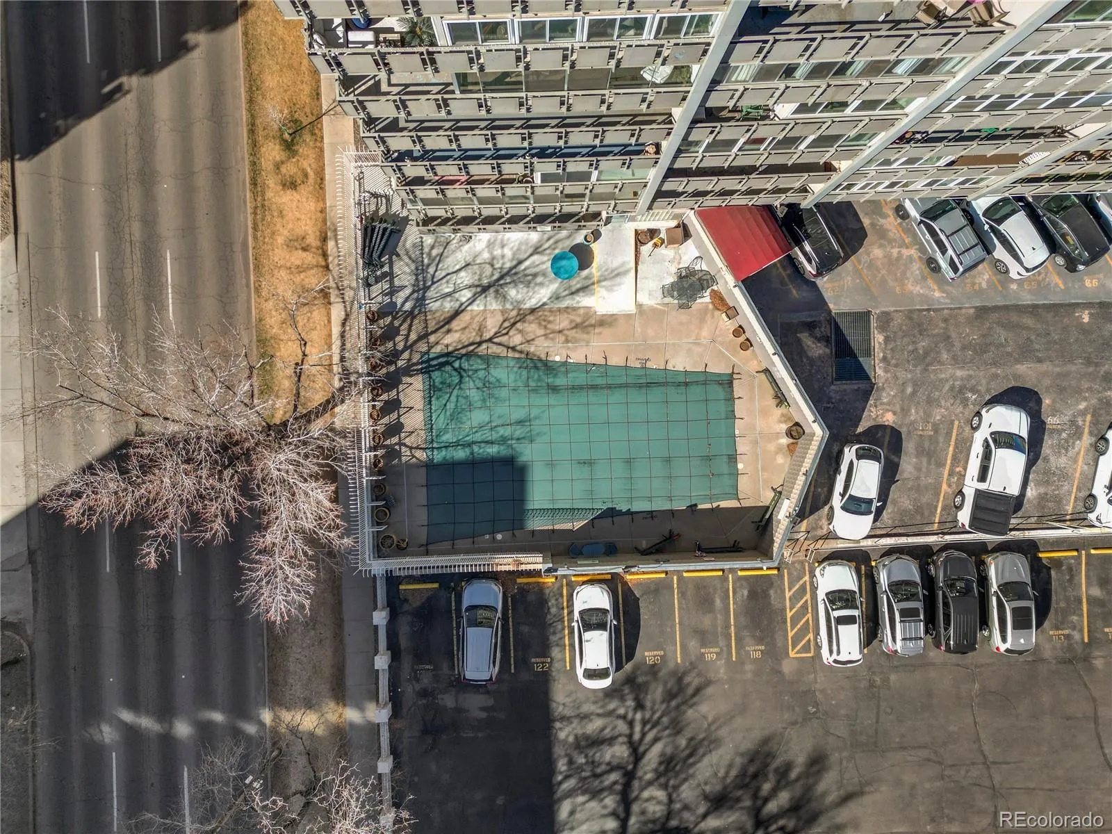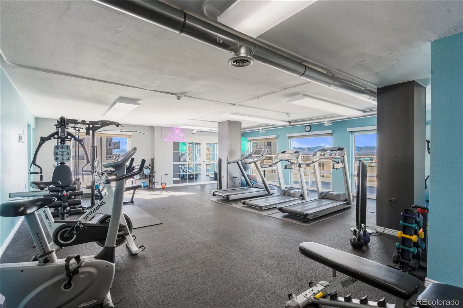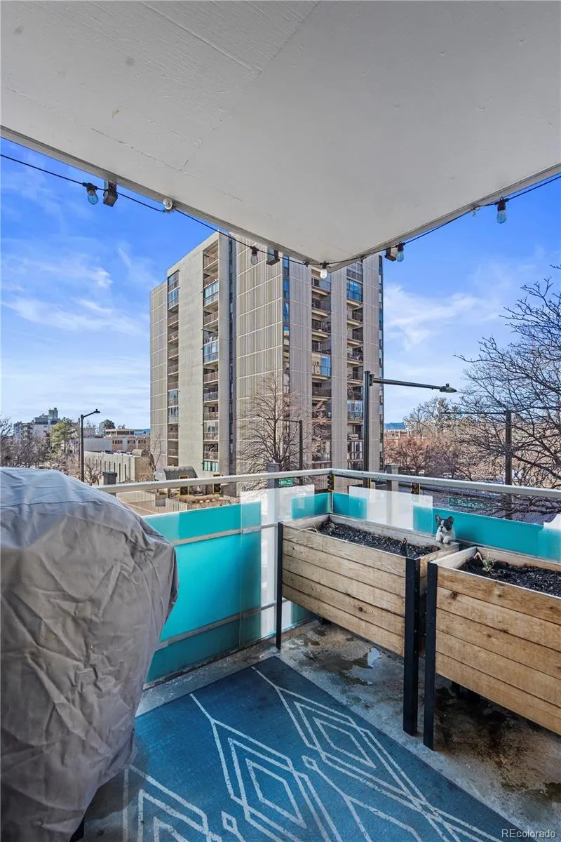 Community amenities include a seasonal outdoor pool, fitness center, fireplace lounge areas, and a rooftop level on the 12th floor with a community room and stunning 360-degree city and mountain views.