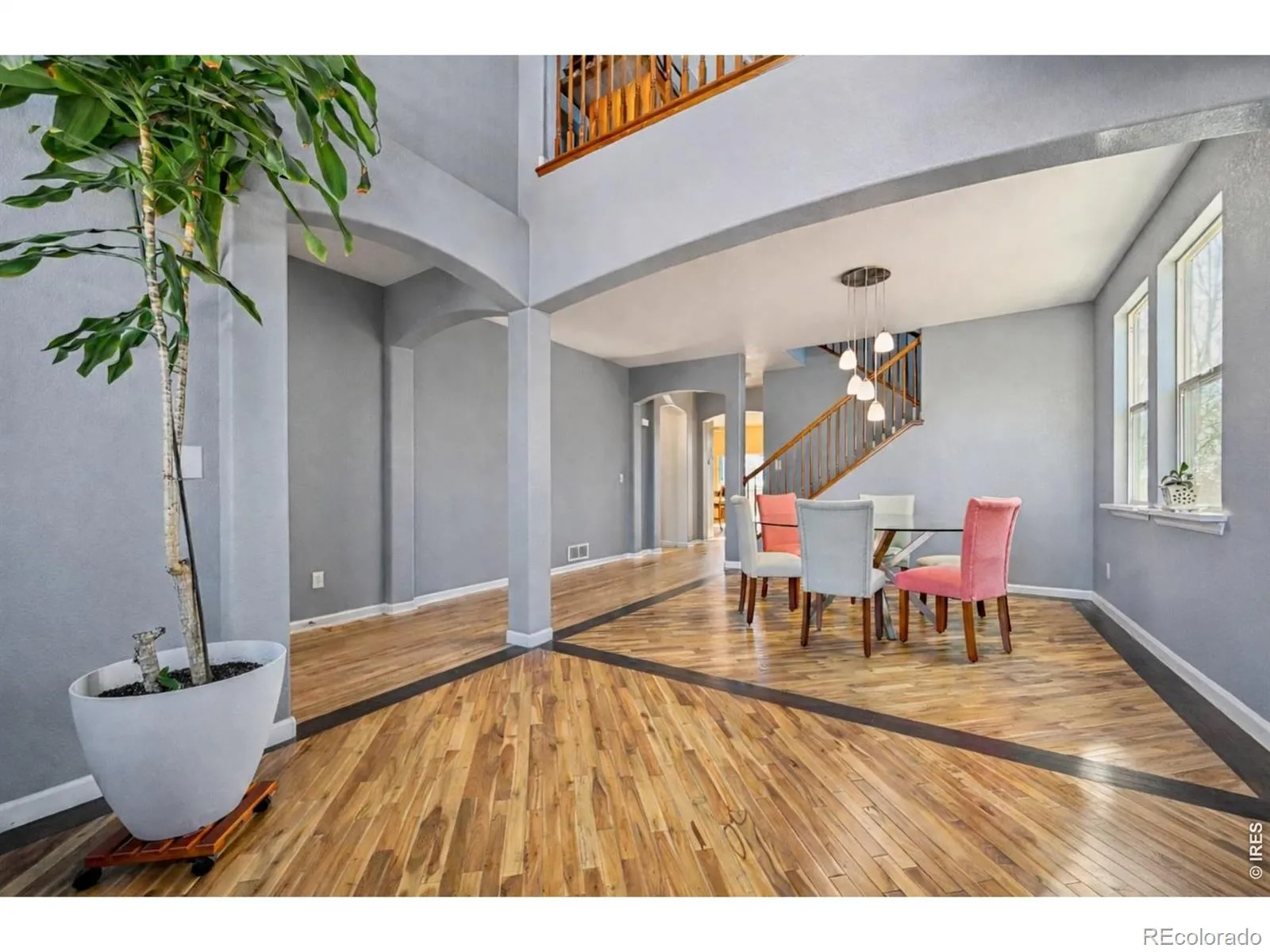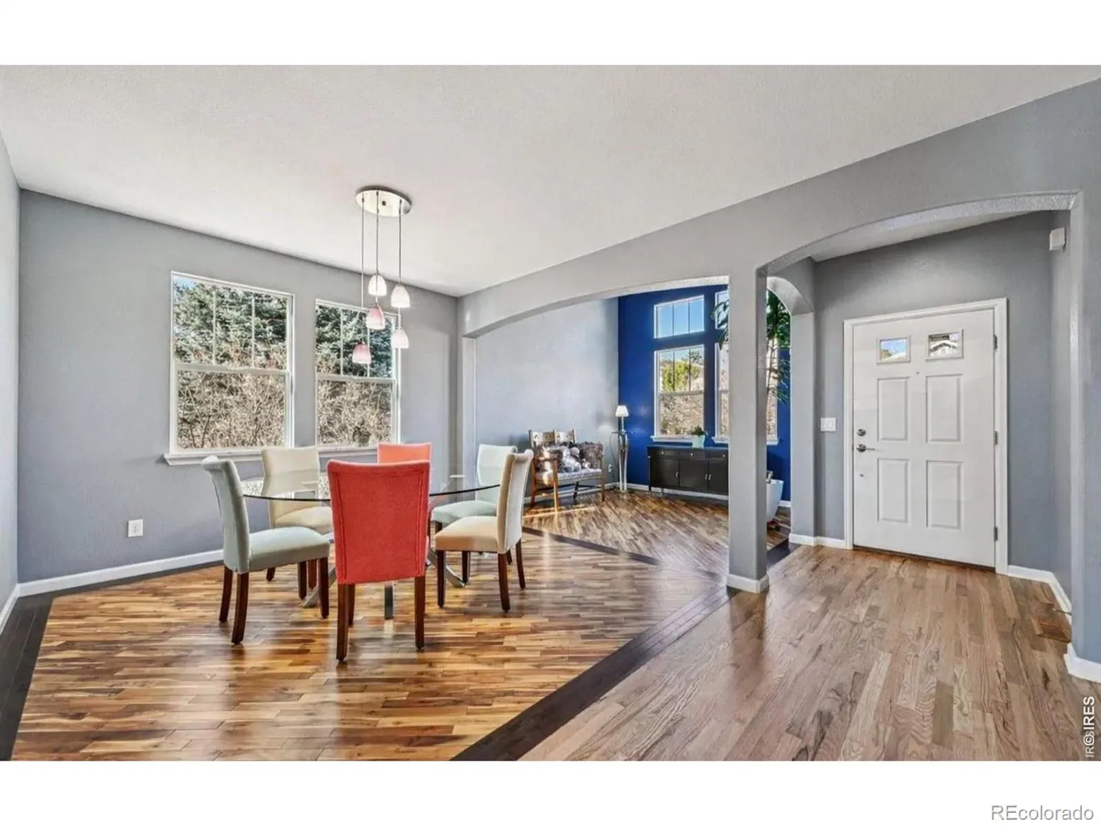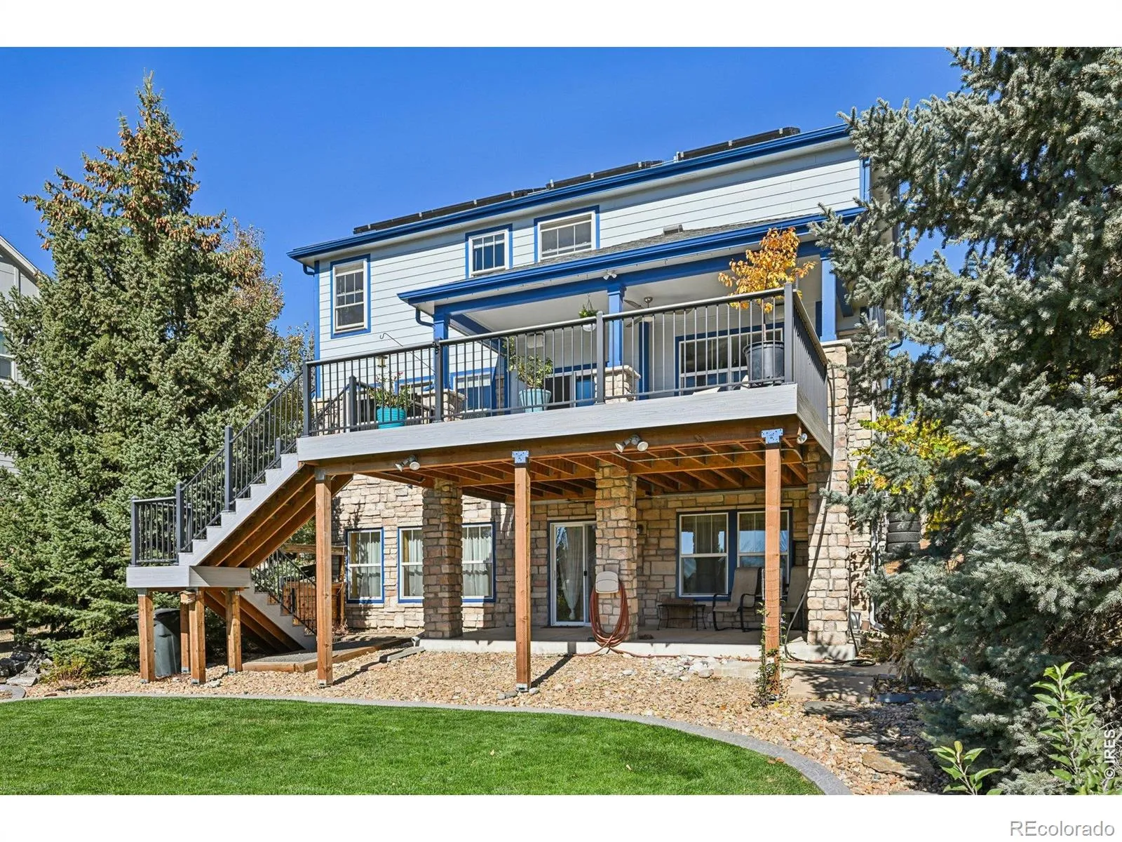 Welcome home to this beautiful 2-story residence in desirable Tallyn’s Reach North, ideally situated on a premium lot adjacent to greenbelt on two sides with mountain views. Thoughtfully designed for everyday living and entertaining, this home offers 5 bedrooms, 4 bathrooms, finished walk-out basement, and oversized 2.5-car garage. A covered entry opens to warm hardwood floors and soaring ceilings, creating an inviting first impression. The light-filled living room features dramatic two-story windows, while the formal dining room accommodates both intimate dinners and larger gatherings. The open-concept great room includes a cozy gas fireplace and overlooks lush landscaping. The spacious kitchen is equipped with quartz countertops, a large island, stainless steel appliances, abundant cabinetry with under and over cabinet lighting, a built-in desk, and a sunny breakfast nook with access to the deck. The finished walk-out basement expands the living space with a large rec room, second kitchen, wet bar, built-ins, second laundry hookup, bedroom, and 3/4 bath, offering excellent flexibility for guests or multi-generational living. Upstairs, a versatile loft leads to the primary suite featuring a heated floor bathroom and a cedar-lined walk-in closet with built-ins. Three additional bedrooms, a full bath, and an upper-level laundry room complete the floor. Outdoor living shines with a partially covered composite deck, prewired and plumbed for gas, electric, and speakers, plus a covered patio below. The fully fenced yard includes mature trees, sprinkler system, and professionally designed landscaping. Additional features include a finished, insulated oversized garage with built-in workbench, storage, and gas line for heater. Brand new A/C just installed! Enjoy access to community amenities including clubhouse, pool, tennis courts, parks, and trails, all within close proximity to Cherry Creek schools, shopping, dining, and recreation.
