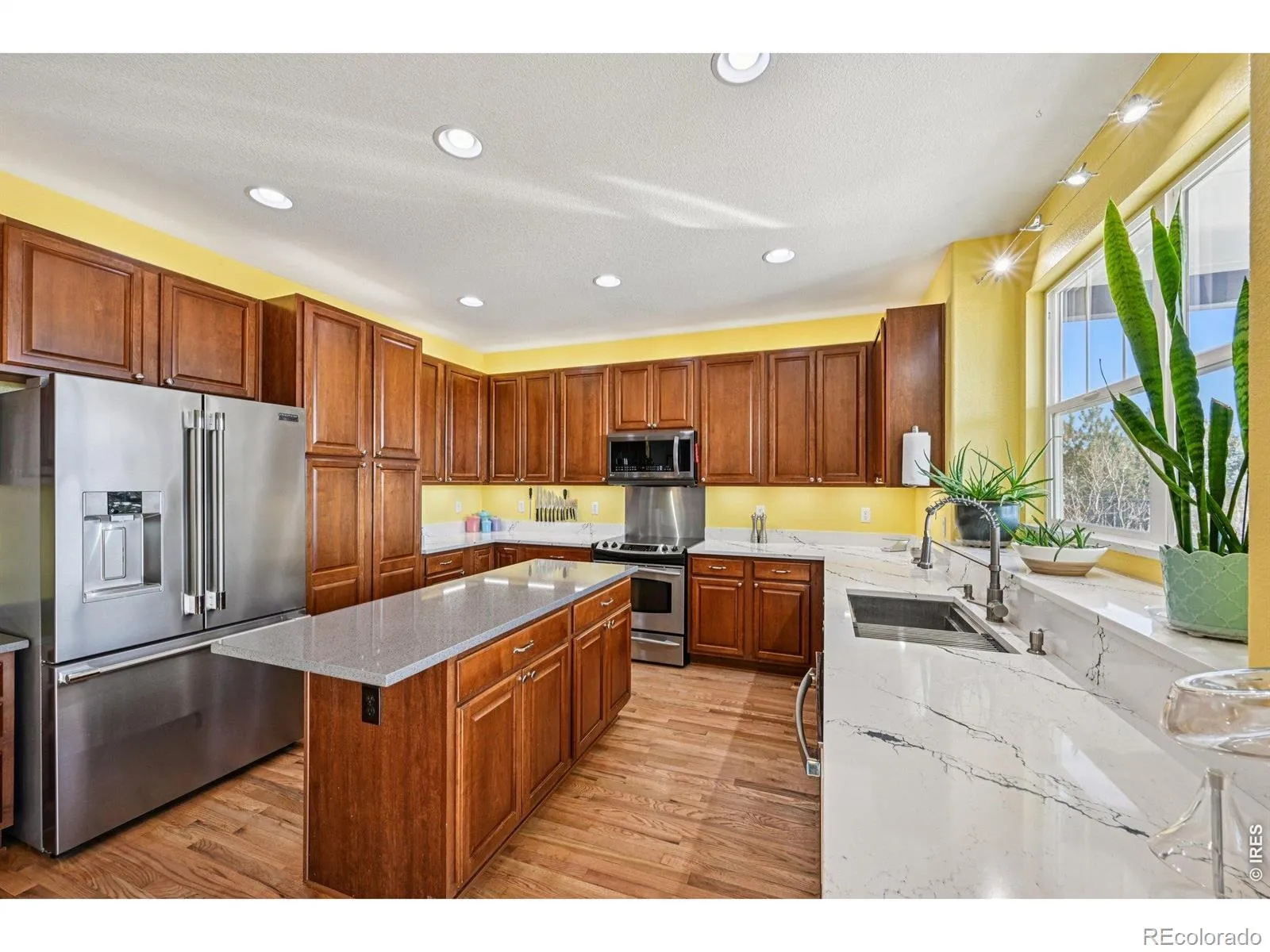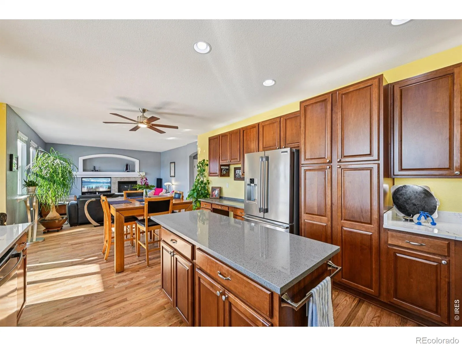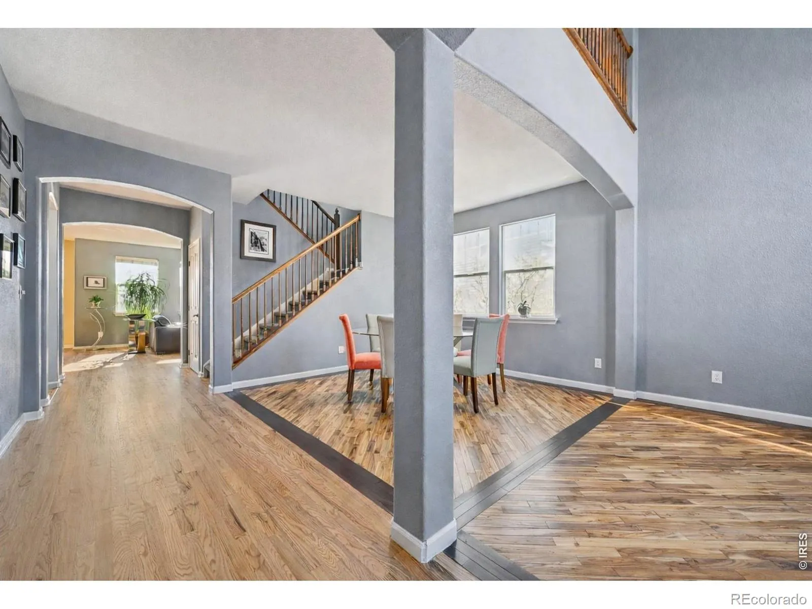 Welcome home to this beautiful 2-story residence in desirable Tallyn’s Reach North, ideally situated on a premium lot adjacent to greenbelt on two sides with mountain views. Thoughtfully designed for everyday living and entertaining, this home offers 5 bedrooms, 4 bathrooms, finished walk-out basement, and oversized 2.5-car garage. A covered entry opens to warm hardwood floors and soaring ceilings, creating an inviting first impression. The light-filled living room features dramatic two-story windows, while the formal dining room accommodates both intimate dinners and larger gatherings. The open-concept great room includes a cozy gas fireplace and overlooks lush landscaping. The spacious kitchen is equipped with quartz countertops, a large island, stainless steel appliances, abundant cabinetry with under and over cabinet lighting, a built-in desk, and a sunny breakfast nook with access to the deck. The finished walk-out basement expands the living space with a large rec room, second kitchen, wet bar, built-ins, second laundry hookup, bedroom, and 3/4 bath, offering excellent flexibility for guests or multi-generational living. Upstairs, a versatile loft leads to the primary suite featuring a heated floor bathroom and a cedar-lined walk-in closet with built-ins. Three additional bedrooms, a full bath, and an upper-level laundry room complete the floor. Outdoor living shines with a partially covered composite deck, prewired and plumbed for gas, electric, and speakers, plus a covered patio below. The fully fenced yard includes mature trees, sprinkler system, and professionally designed landscaping. Additional features include a finished, insulated oversized garage with built-in workbench, storage, and gas line for heater. Brand new A/C just installed! Enjoy access to community amenities including clubhouse, pool, tennis courts, parks, and trails, all within close proximity to Cherry Creek schools, shopping, dining, and recreation.