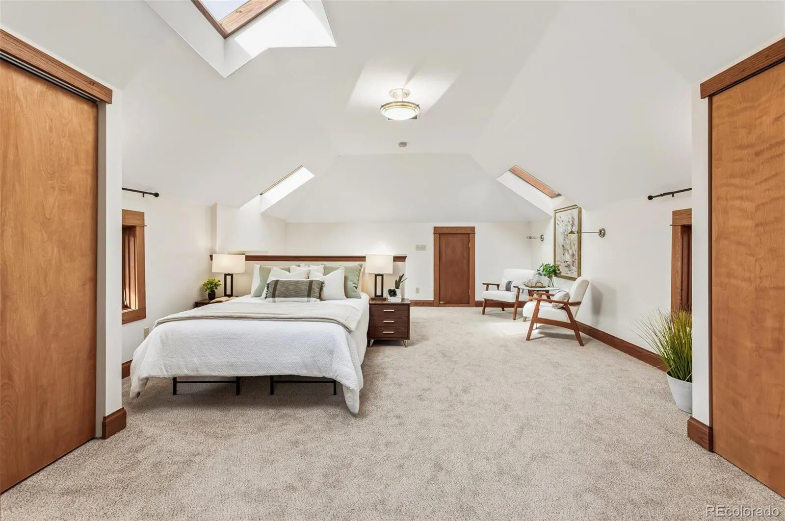 South Park Hill Bungalow with Artful Soul & Style! This 4-bedroom, 3-bath home offers 2,714 SF of finish and pairs classic 1911 bungalow charm with a thoughtfully designed 2-story rear addition. From the street, enjoy timeless curb appeal with a wide covered front porch, while expanded living spaces in the back create room to gather, entertain, and live comfortably. Original architectural details add warmth and character, including gleaming Craftsman-style wood trim, crown molding, built-ins, arched doorways, stained glass, and transom windows. The welcoming living room features a cozy fireplace and an oversized stained-glass window, flowing easily into the spacious dining room with a sunny south-facing bay window. A built-in sound system connects the kitchen and dining areas and extends to the back patio, perfect for entertaining indoors and out. The eat-in kitchen is generous and functional with expansive cabinetry, stone countertops, pantry storage, and stainless steel appliances, including a gas range. A clever built-in dog door in the pantry allows easy backyard access. Two comfortable bedrooms are located on the main level, one with a built-in wardrobe and another with a walk-in closet, served by a convenient 3/4 bath. A graceful wraparound staircase with custom wrought iron balustrades leads upstairs to a charming window seat on the landing. The private upper-level primary suite offers vaulted ceilings, skylights, dual closets, and pocket doors opening to an ensuite bath with a custom sink and oversized window. The finished basement adds flexible living space with a family room, office area, exercise space, additional bedroom, fridge, and a combined 3/4 bath/laundry room. Outside, enjoy the large east-facing patio, fully fenced low-maintenance yard, and an oversized detached 1-car garage with alley access for added convenience. Historic charm and thoughtful updates meet in a beloved South Park Hill location close to parks, dining, and neighborhood favorites.